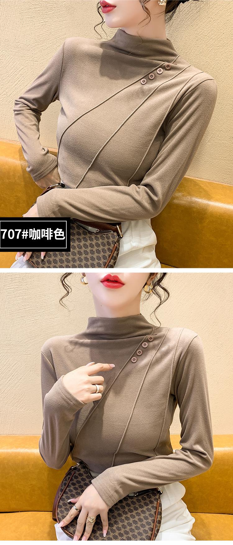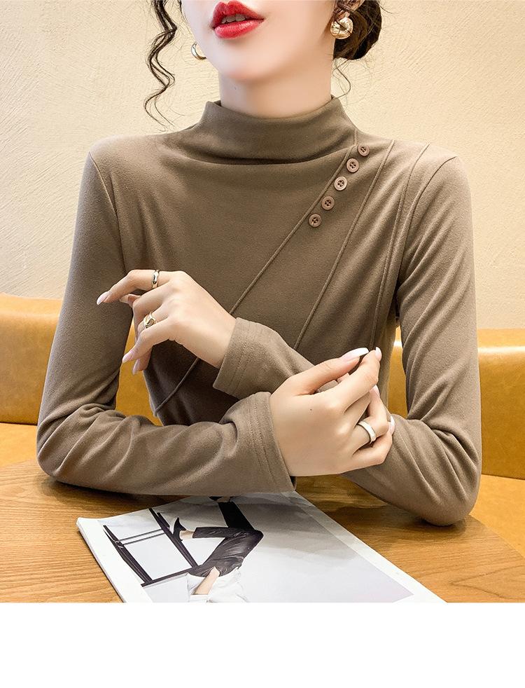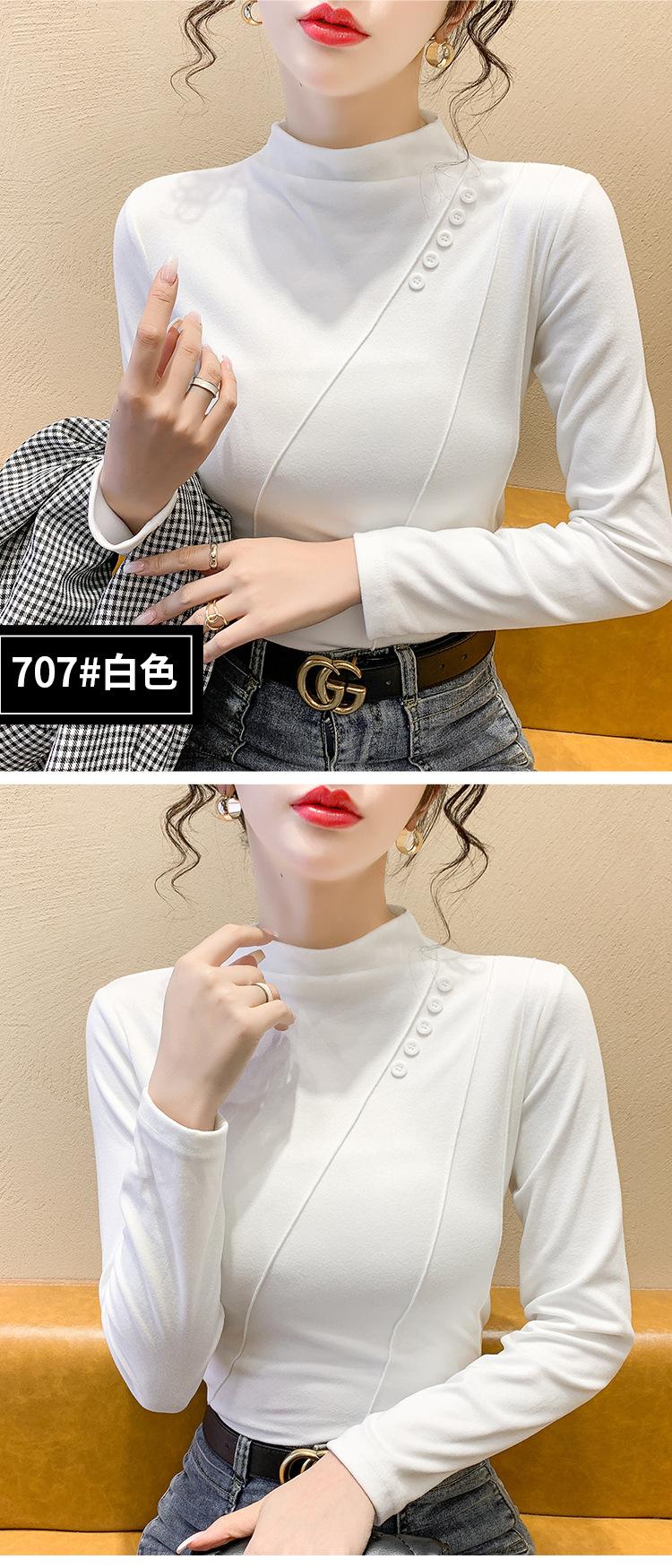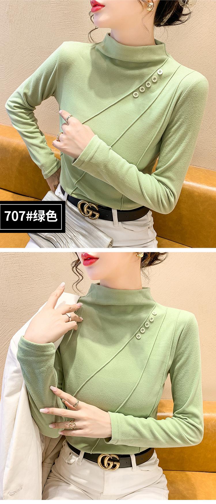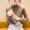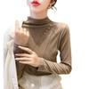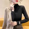 Camisa de terciopelo con cuello medio alto para mujer, otoño e invierno, estilo coreano, nueva camiseta de manga larga con lijado grueso y forro polar para mujer
