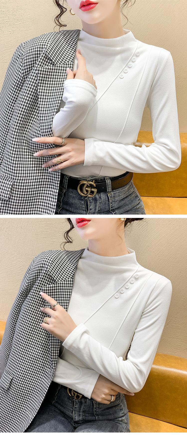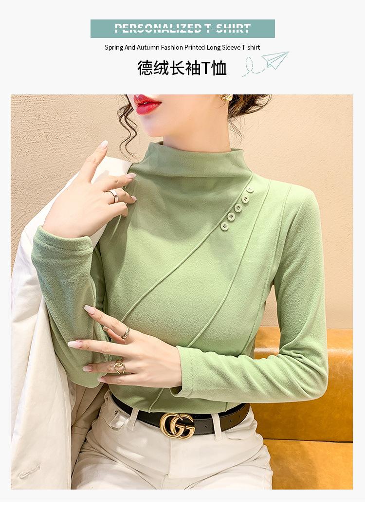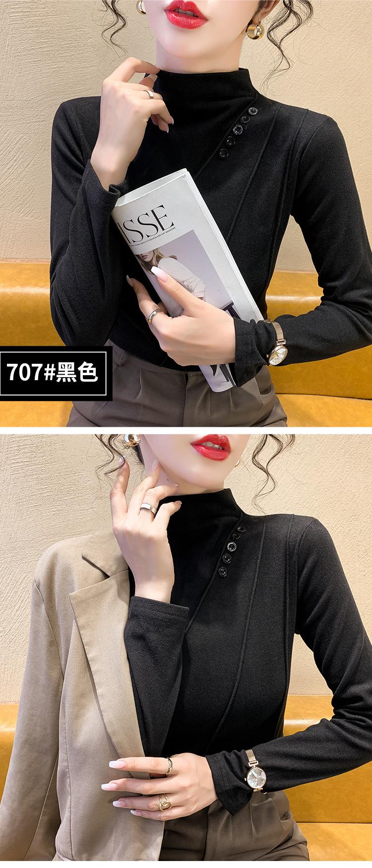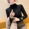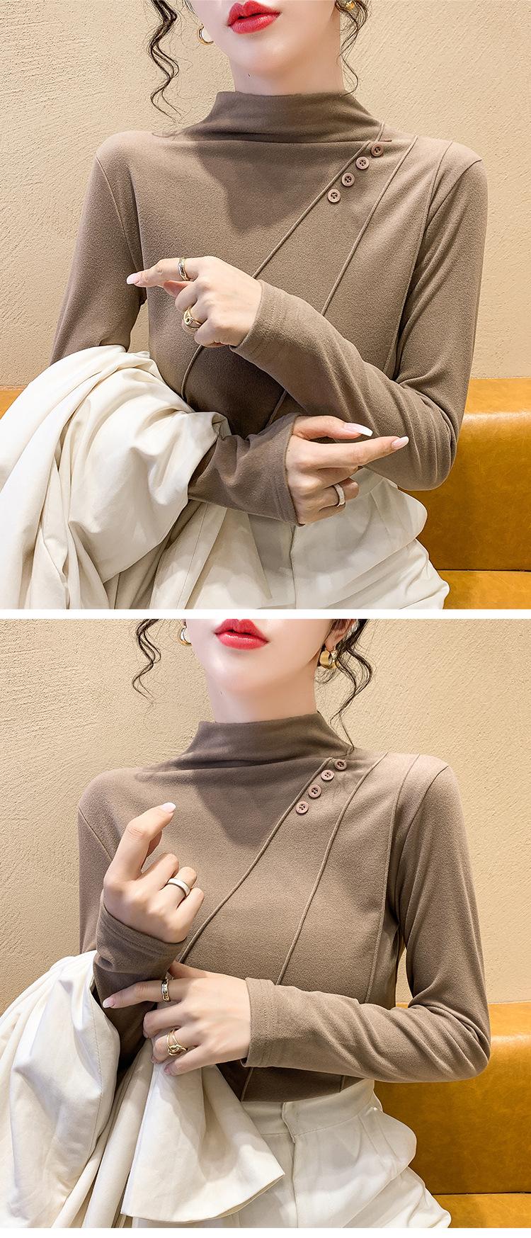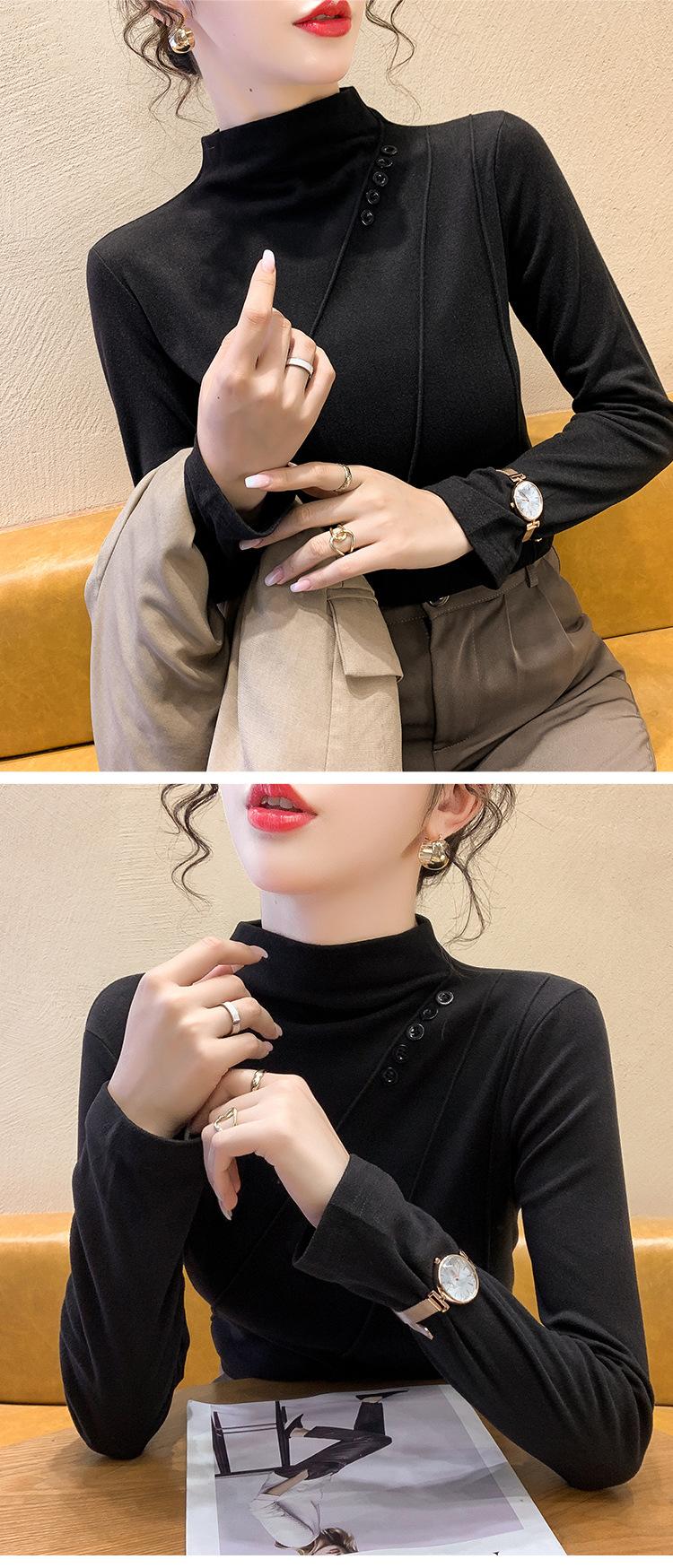 Camisa de terciopelo con cuello medio alto para mujer, otoño e invierno, estilo coreano, nueva camiseta de manga larga con lijado grueso y forro polar para mujer