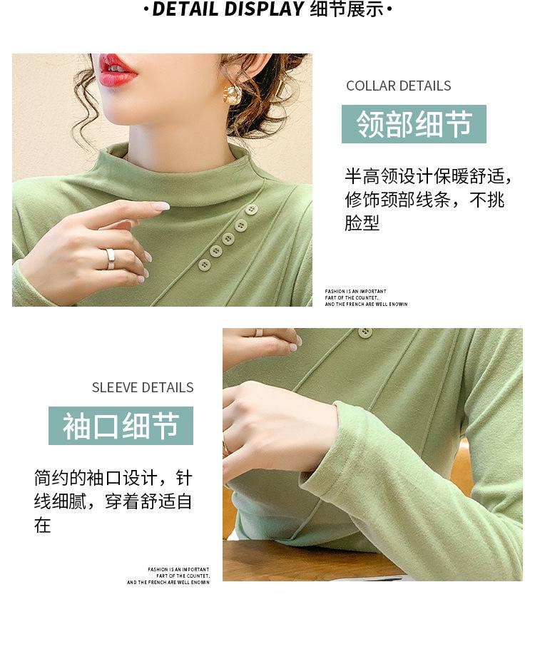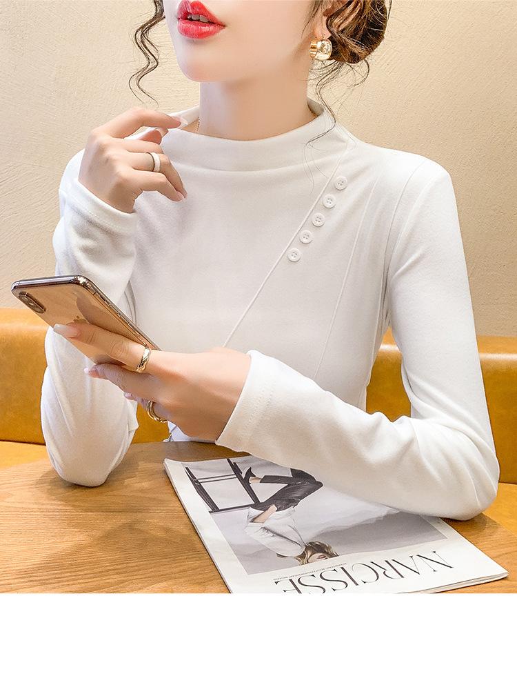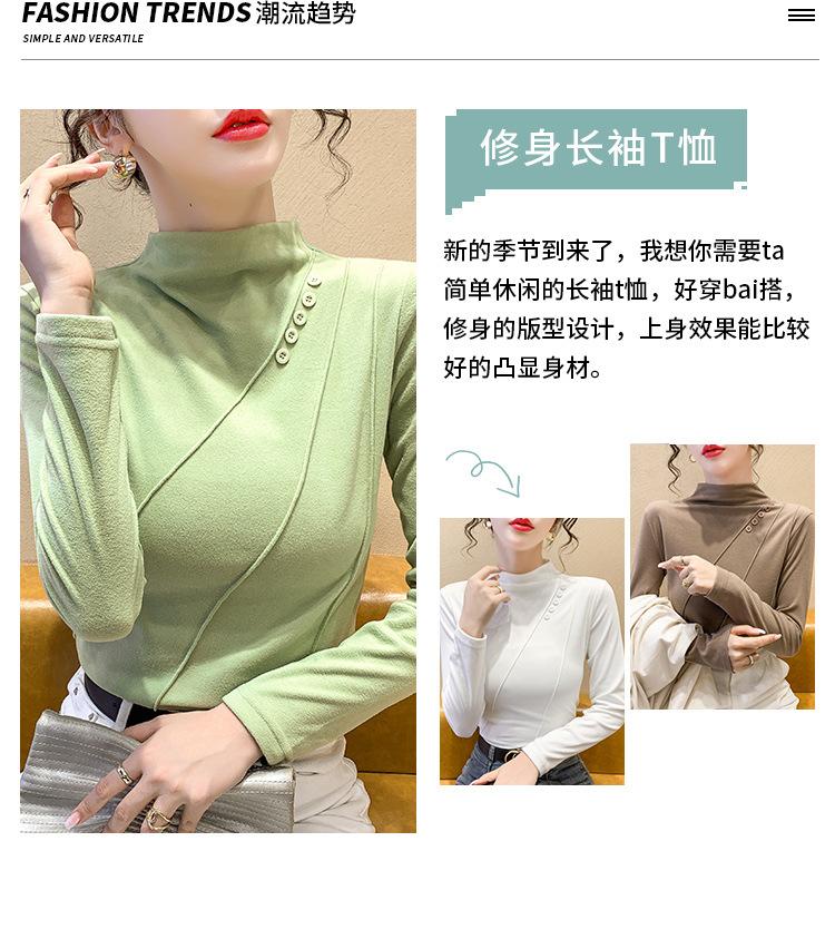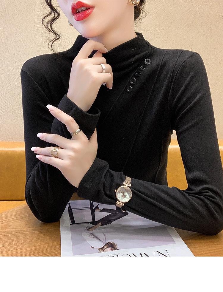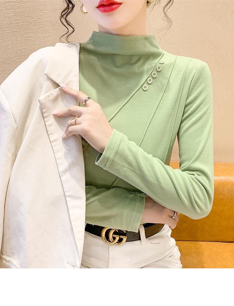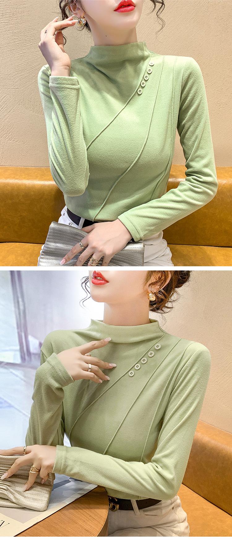 Camisa de terciopelo con cuello medio alto para mujer, otoño e invierno, estilo coreano, nueva camiseta de manga larga con lijado grueso y forro polar para mujer