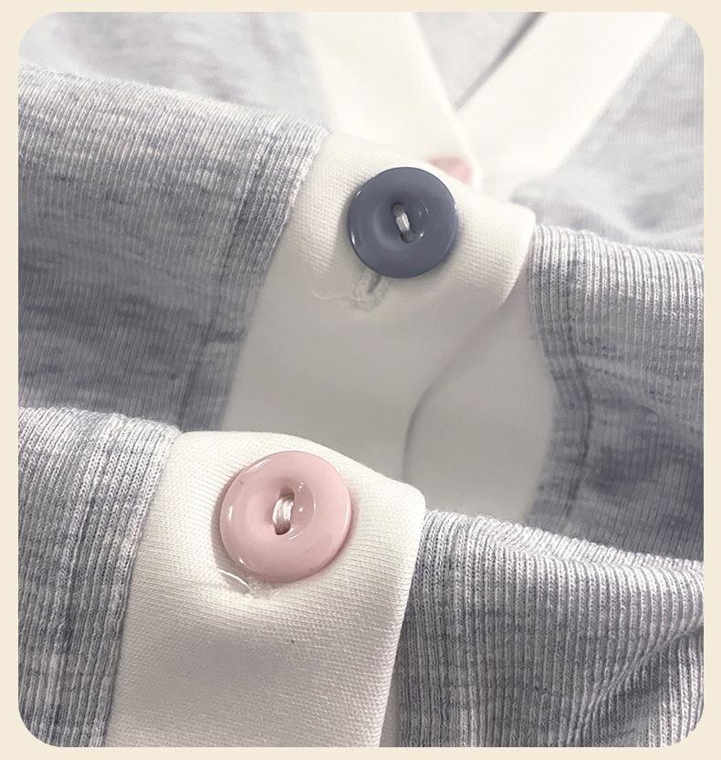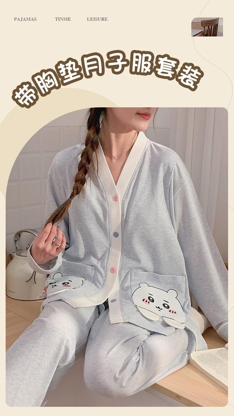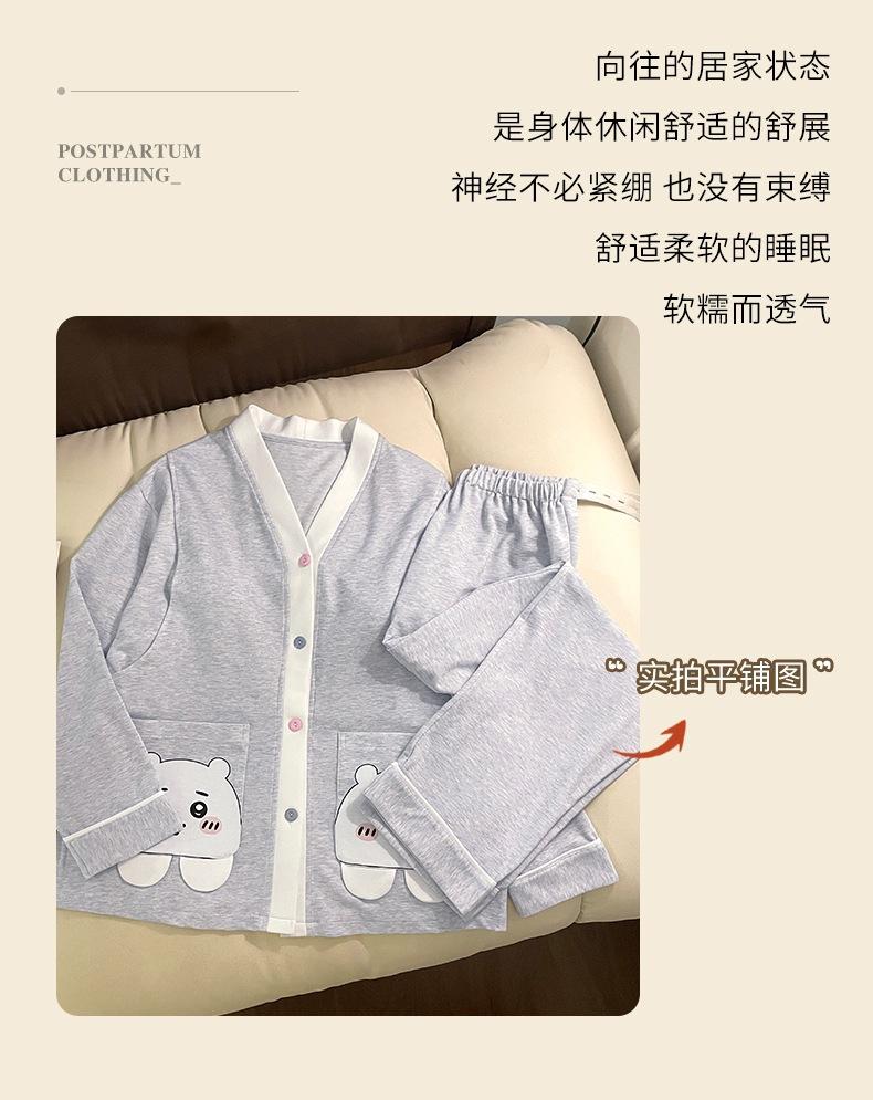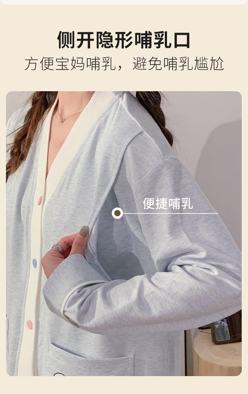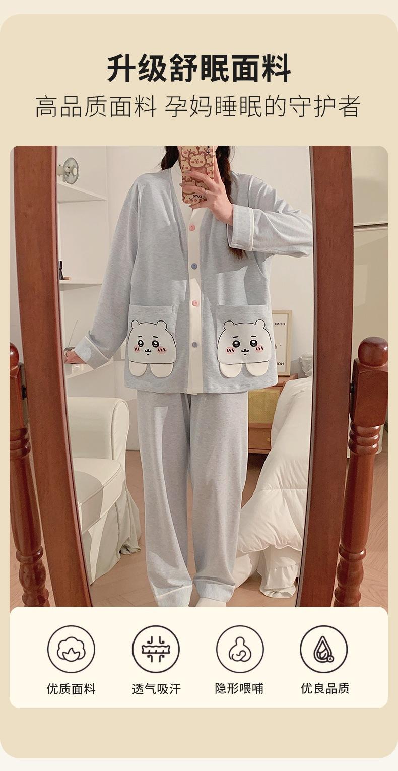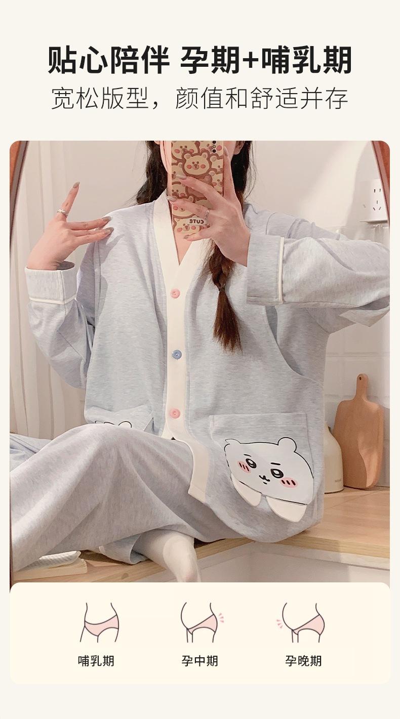 Traje de maternidad de manga larga de algodón de colores, tejido posparto, con protectores de pecho, listo para enviar.