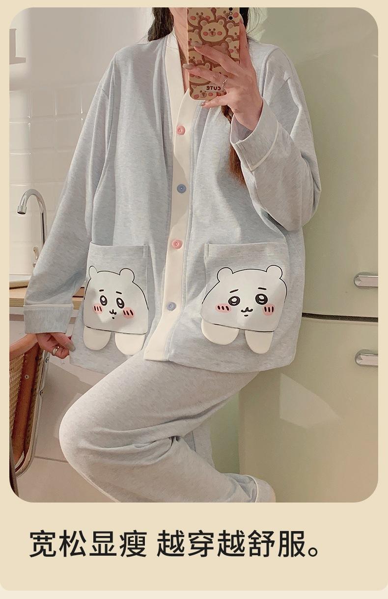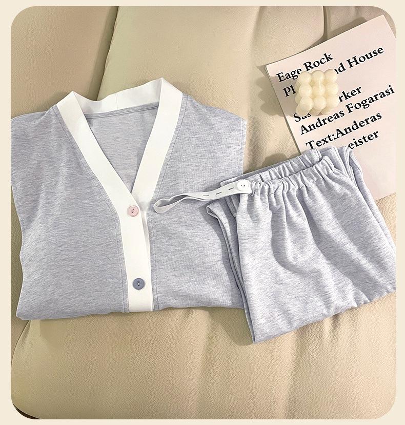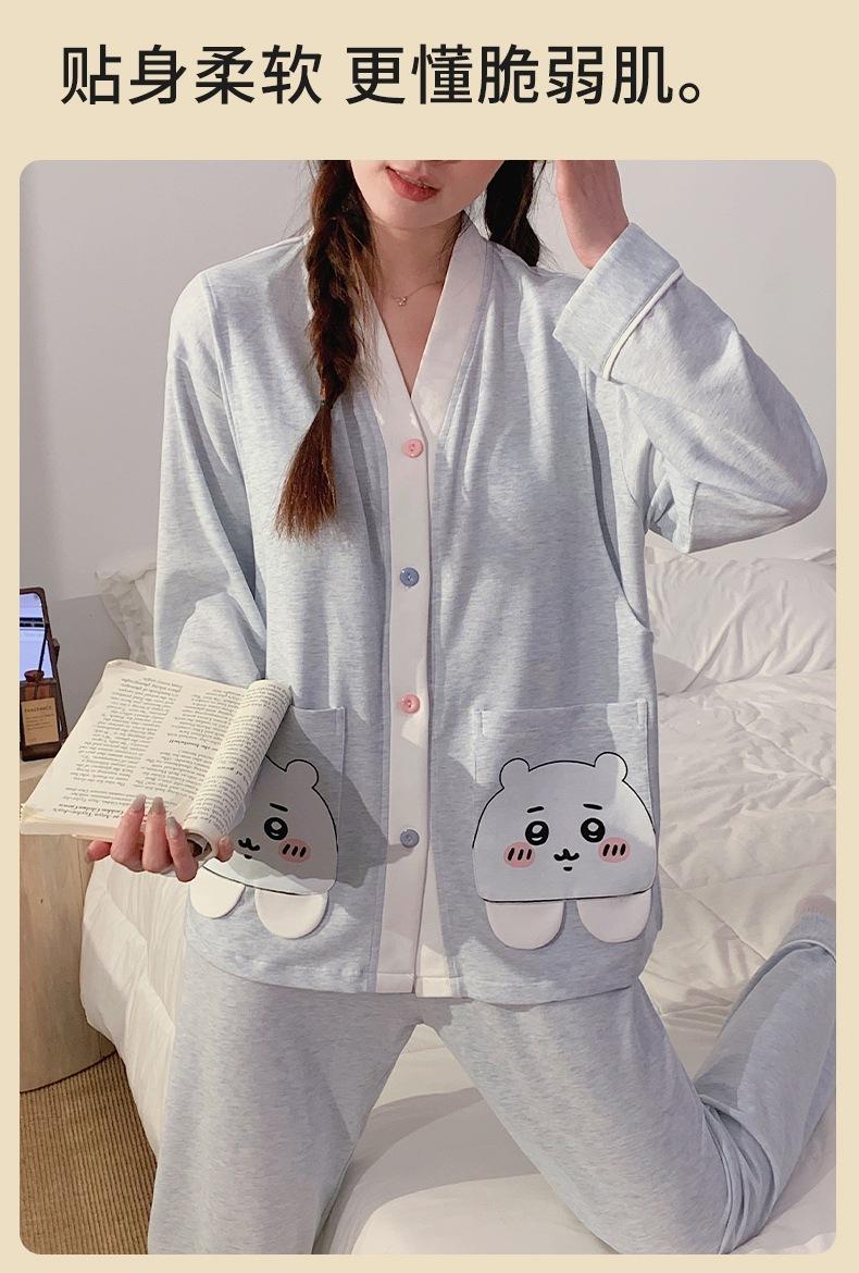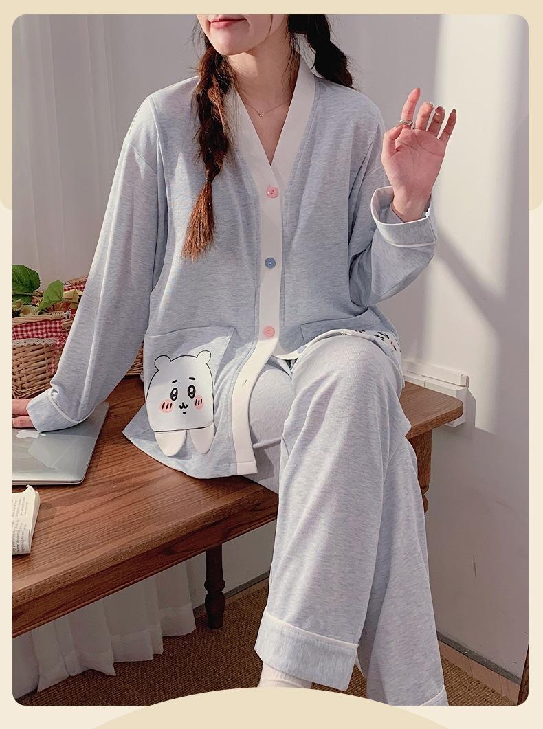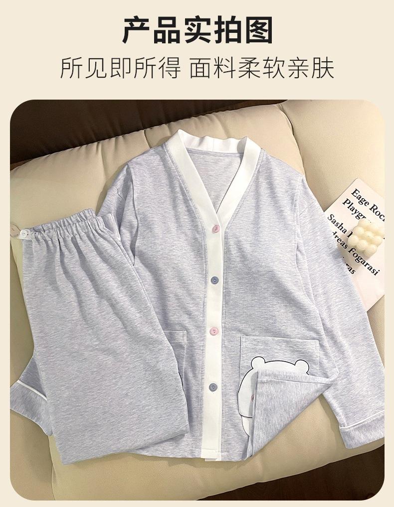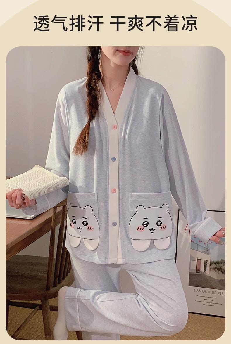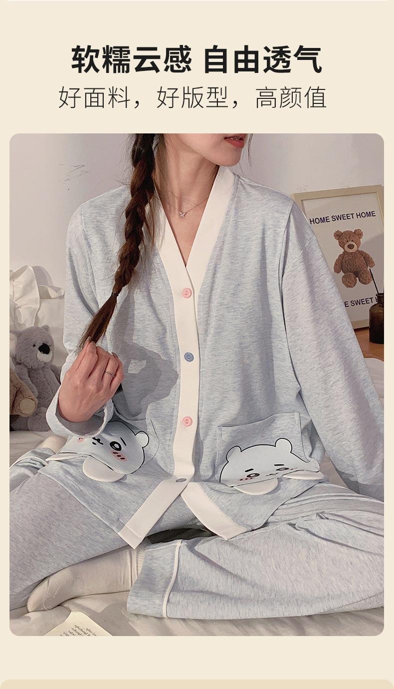 Traje de maternidad de manga larga de algodón de colores, tejido posparto, con protectores de pecho, listo para enviar.