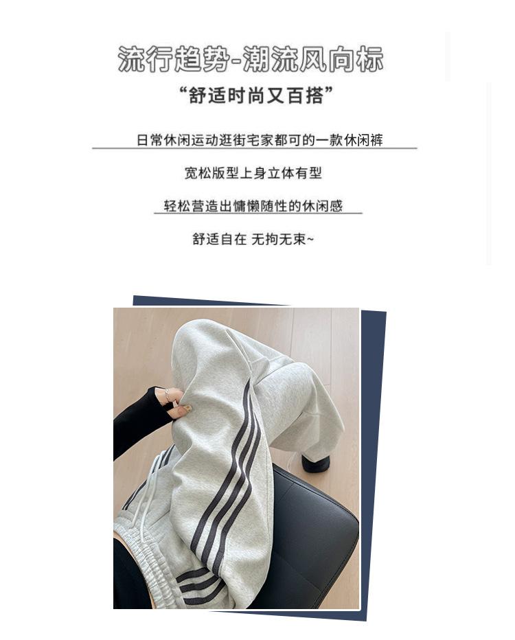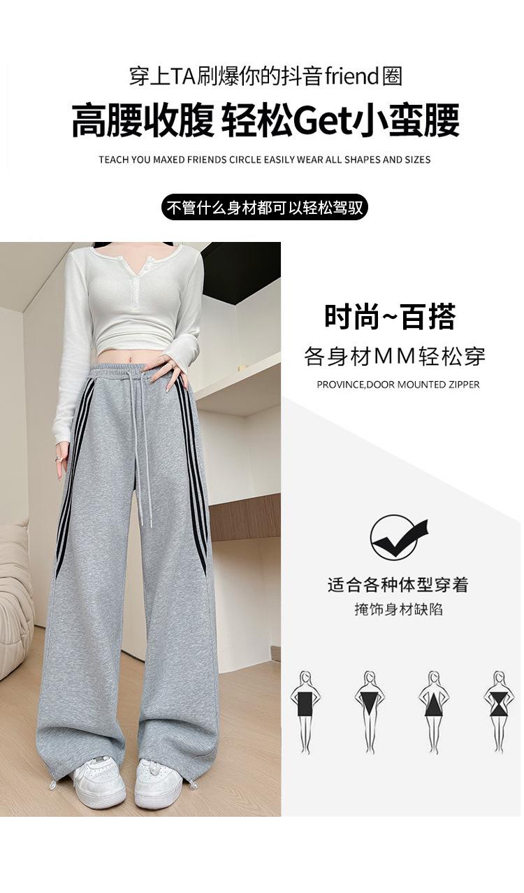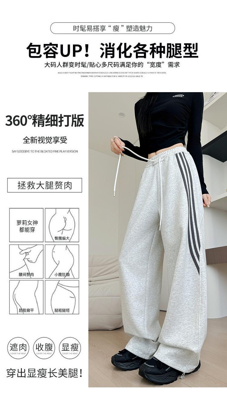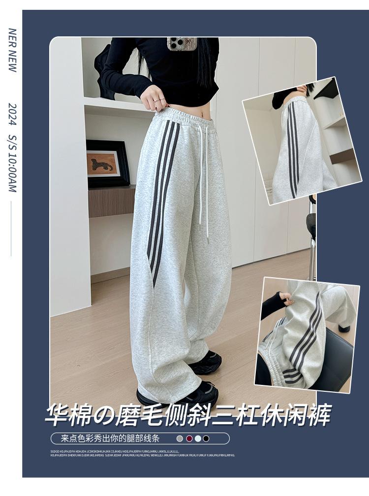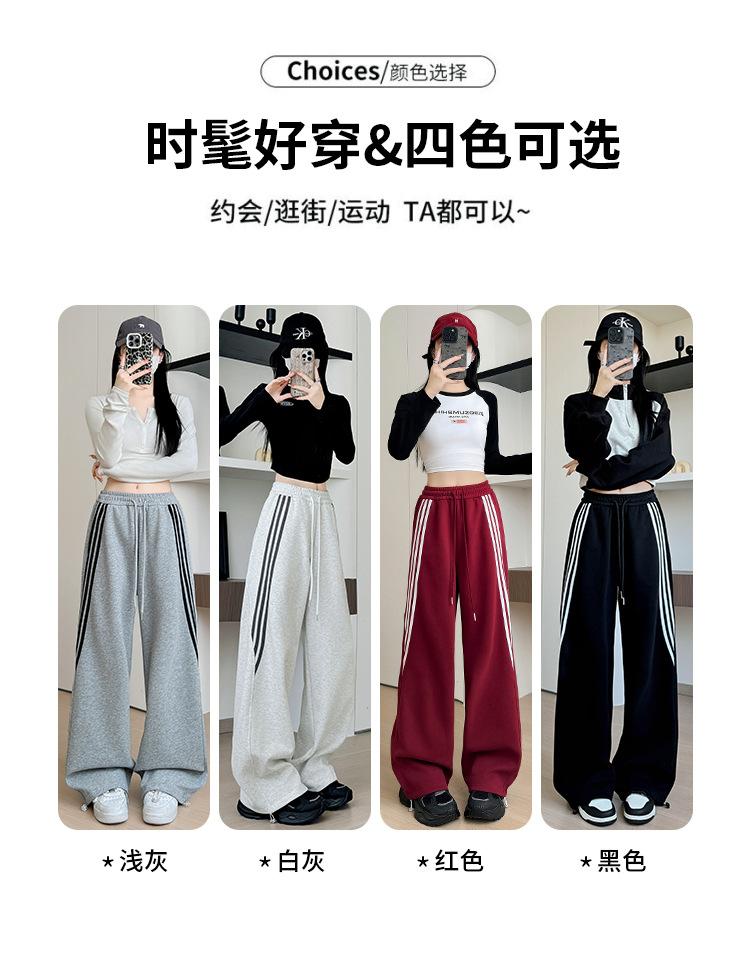 Pantalones deportivos a rayas para mujer, primavera y otoño, nuevos, de cintura alta, holgados, estilo americano, de pierna ancha, informales, sueltos, adelgazantes, rectos.