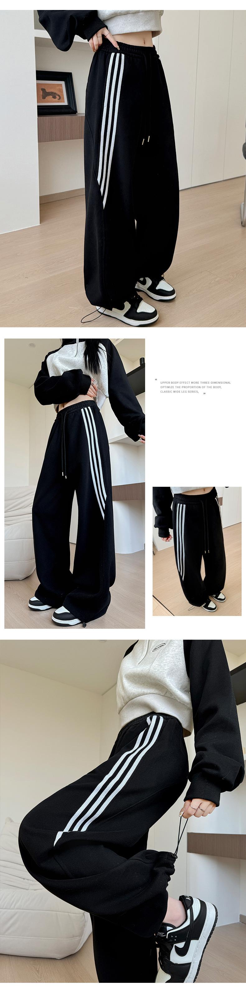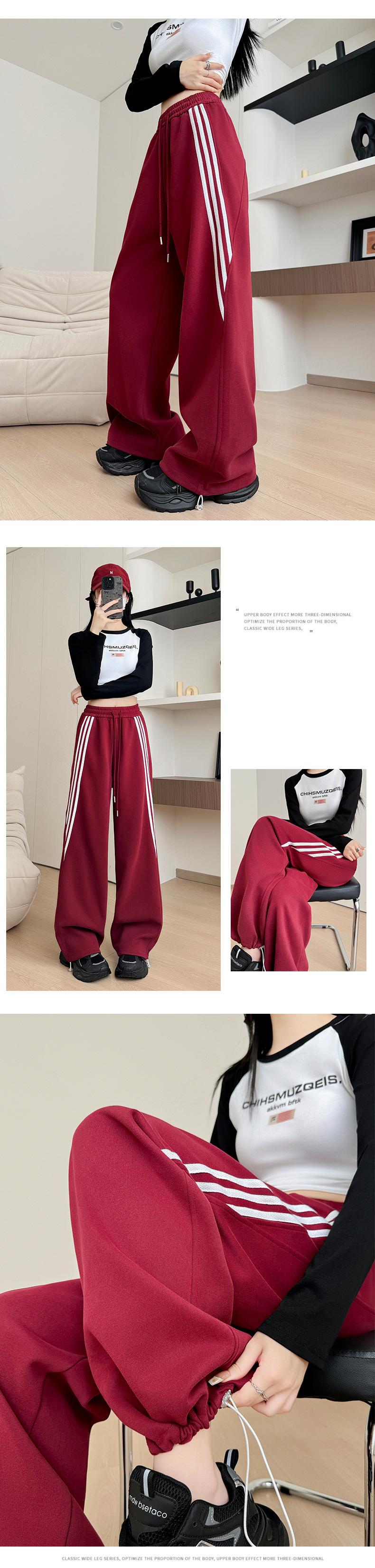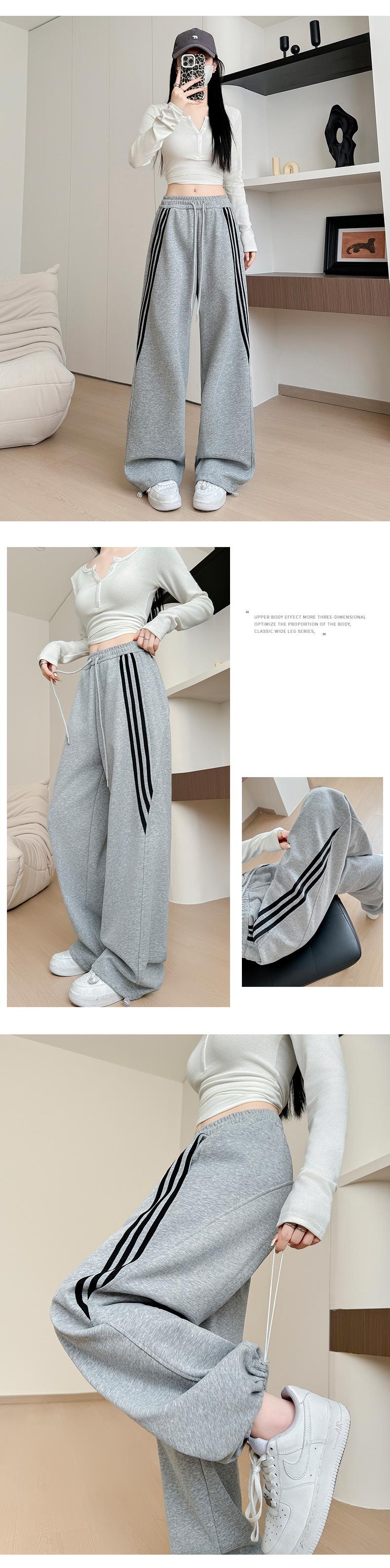 Pantalones deportivos a rayas para mujer, primavera y otoño, nuevos, de cintura alta, holgados, estilo americano, de pierna ancha, informales, sueltos, adelgazantes, rectos.