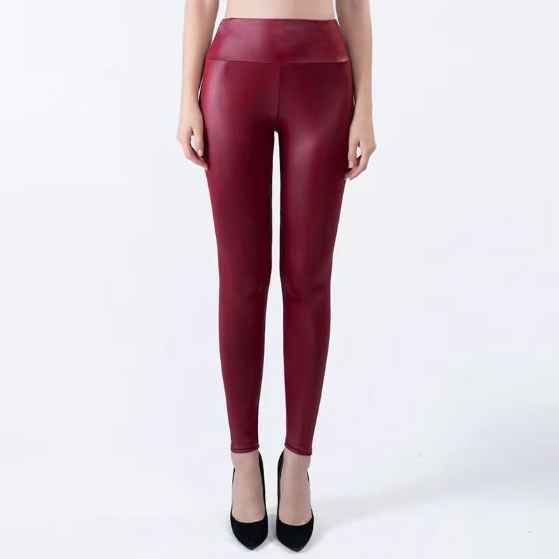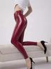 Pantalones de Cuero Ajustados Sexy Calientes Combinables Pantalones de Mujer de Alta Elasticidad Leggings de Cintura Alta Rojo Cuero Sintético Pantalones Casuales Venta al por Mayor de Fábrica