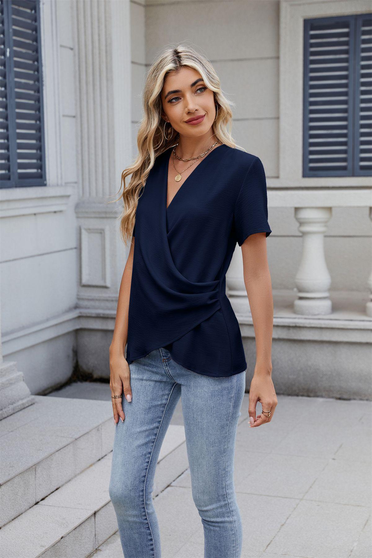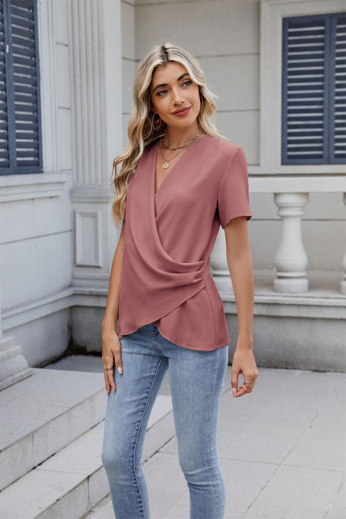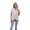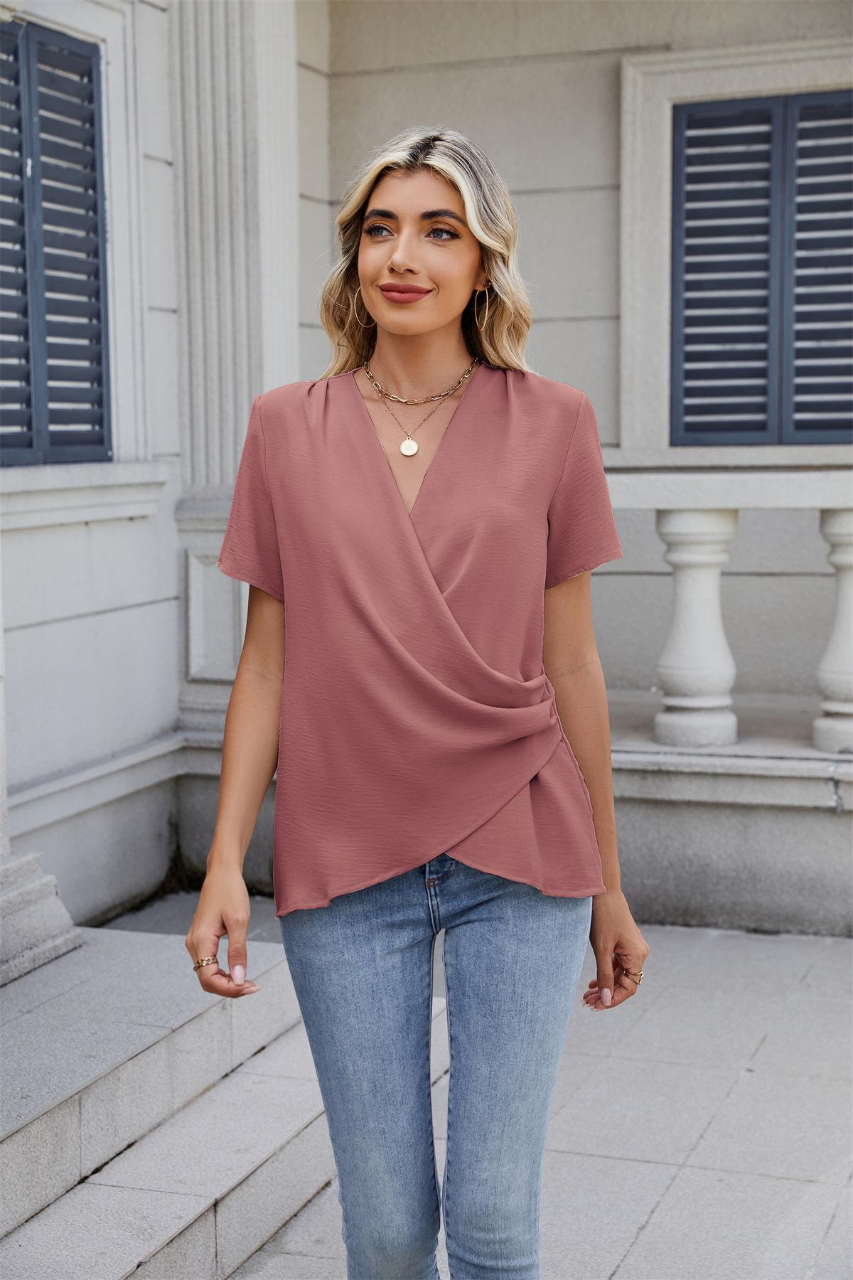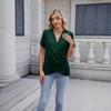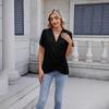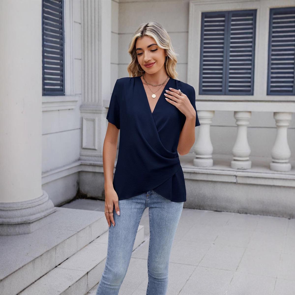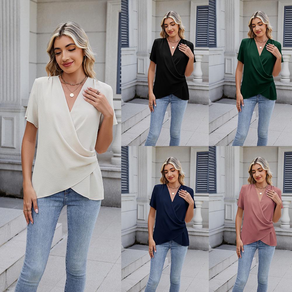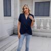 Camiseta informal de color sólido con cuello en V para mujer, primavera y verano 2025, comercio exterior europeo y americano transfronterizo de Amazon