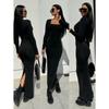 2023 Estación Independiente Amazon Nuevo Vestido Slim Dividido de Manga Larga