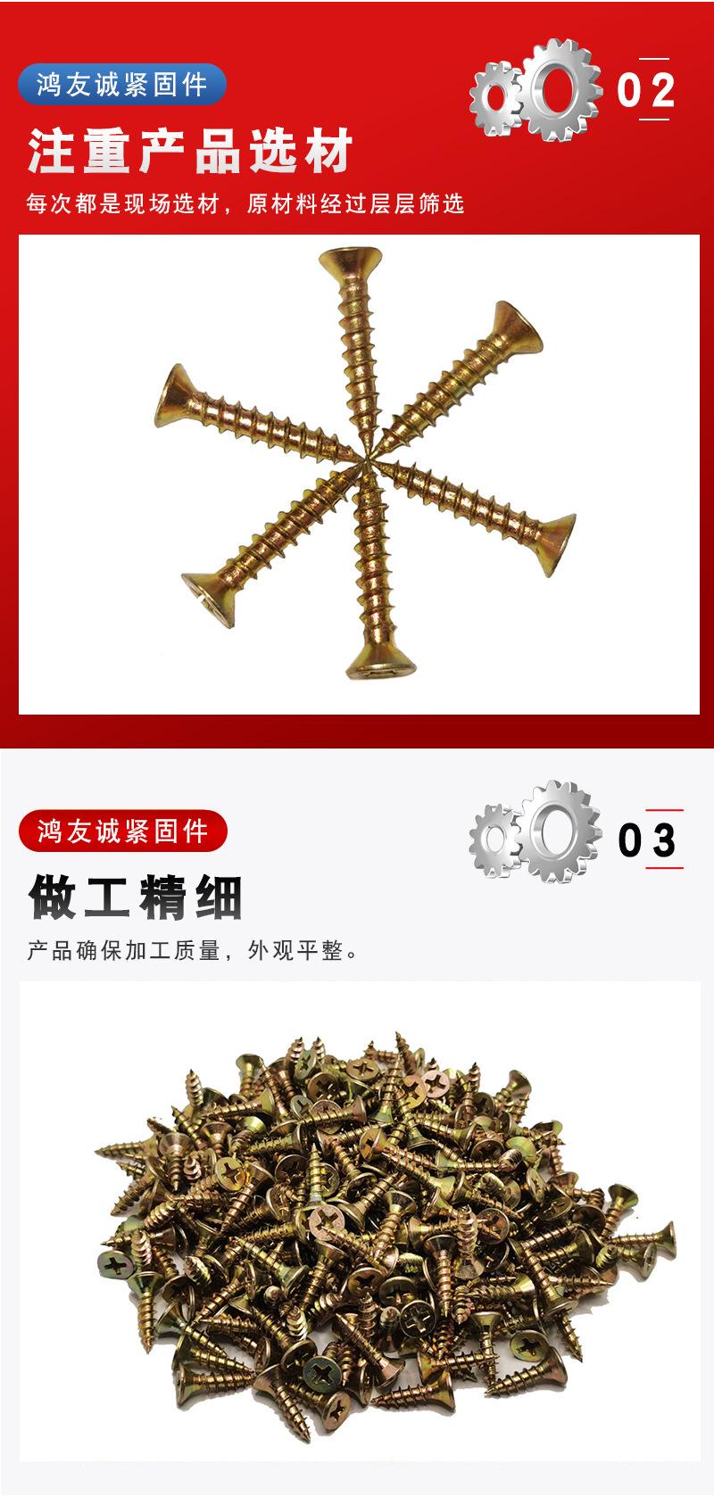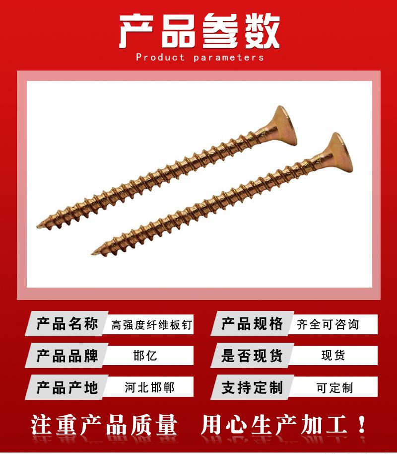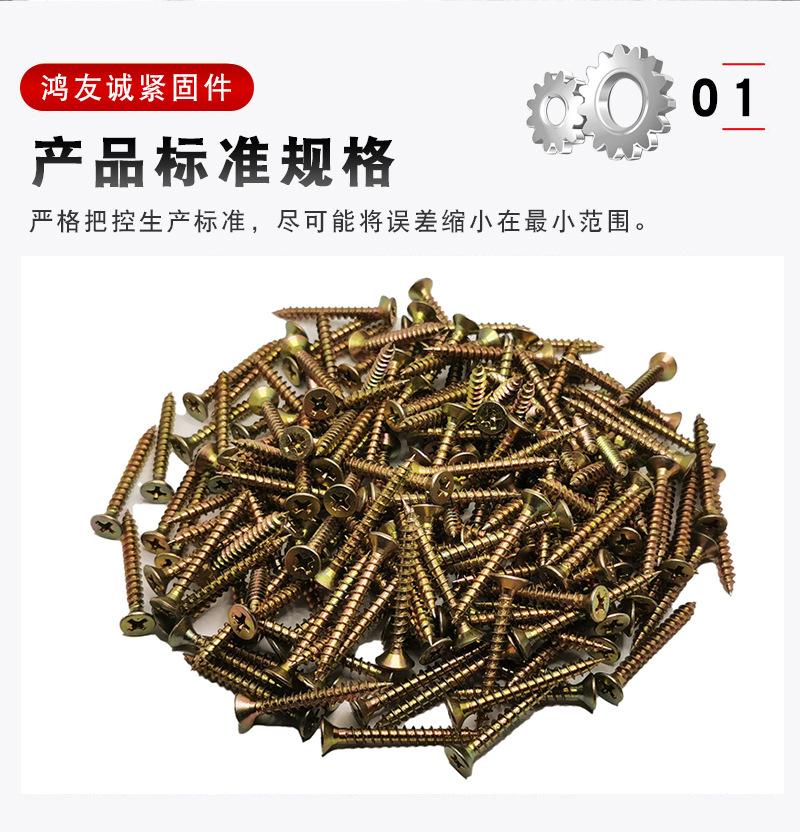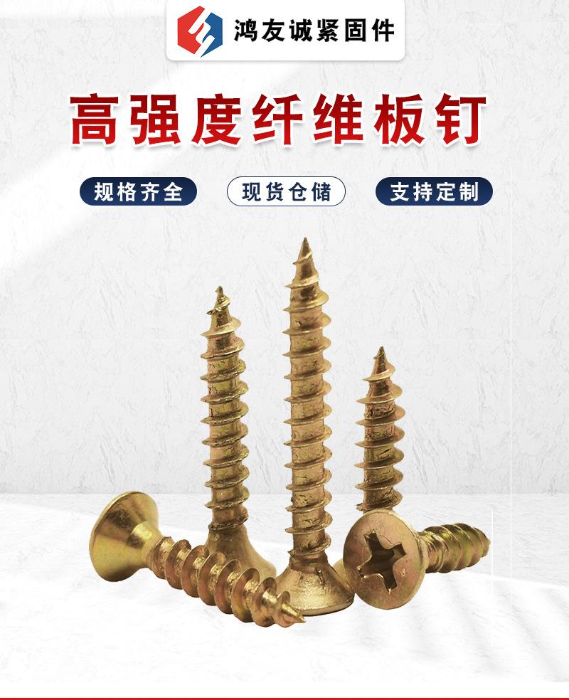 Clavo de fibra de alta resistencia, color amarillo, zinc, cruz, cabeza avellanada plana, tornillo autorroscante de fibra, clavo para pared seca de madera maciza