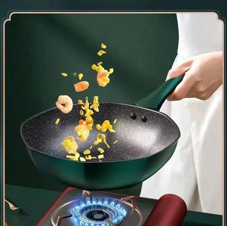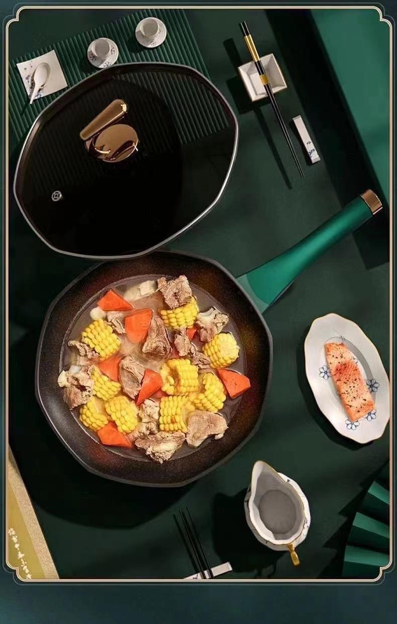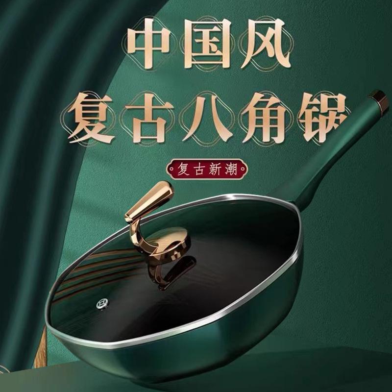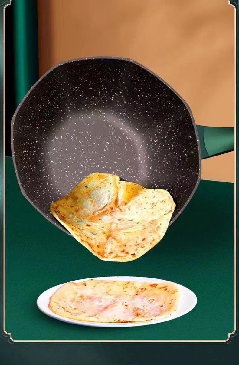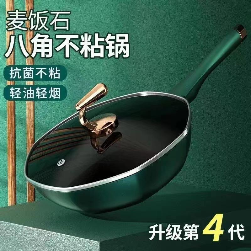 Olla octogonal ligera de lujo Douyin, estilo similar, de piedra medicinal, antiadherente, para cocina de gas doméstica, cocina de inducción, wok universal de fondo plano.