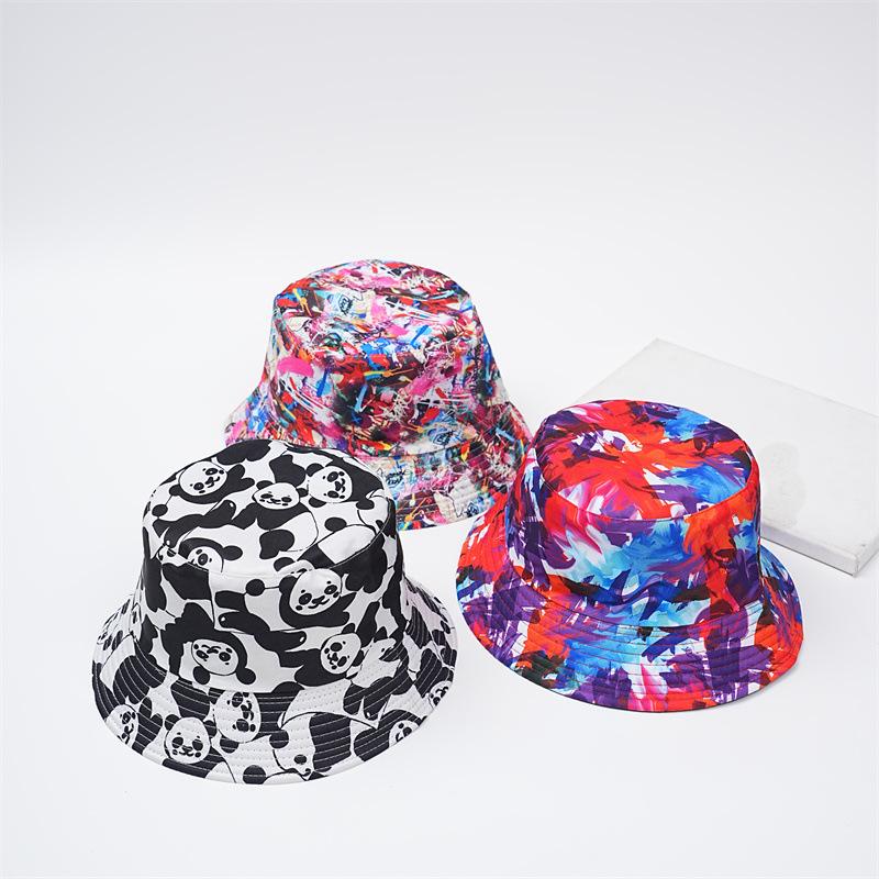 Red (graffiti basin cap), Purple (graffiti basin hat), Black and white (panda basin cap), Black and white (English basin hat)
