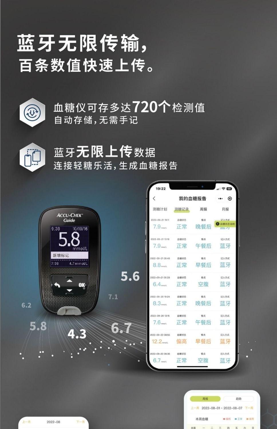 Papel de prueba de glucosa en sangre Roche Zhihang, medidor de glucosa en sangre universal para el hogar, Bluetooth, original, importado, prueba médica para personas mayores