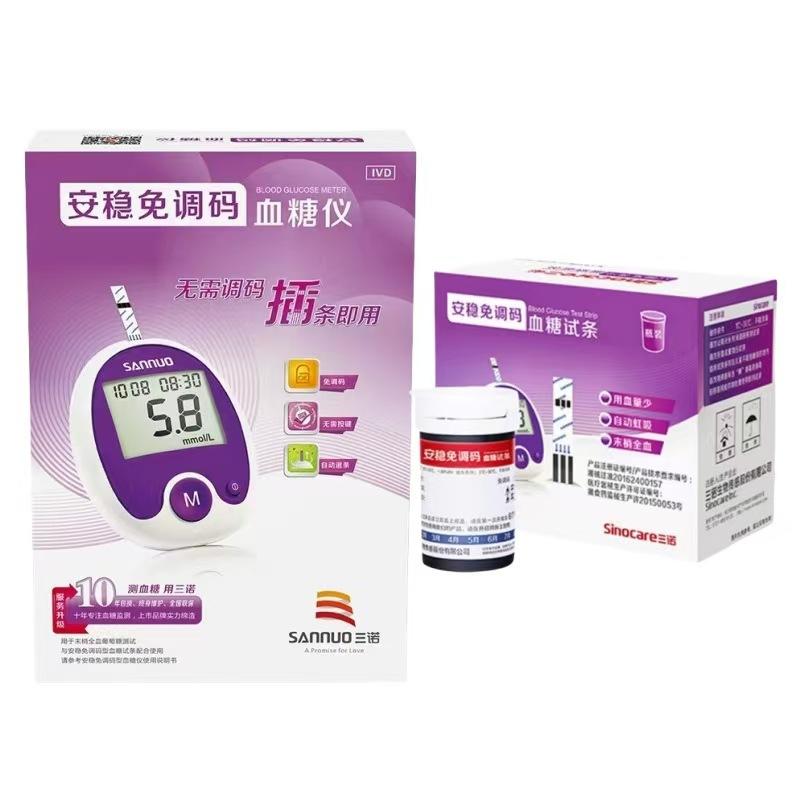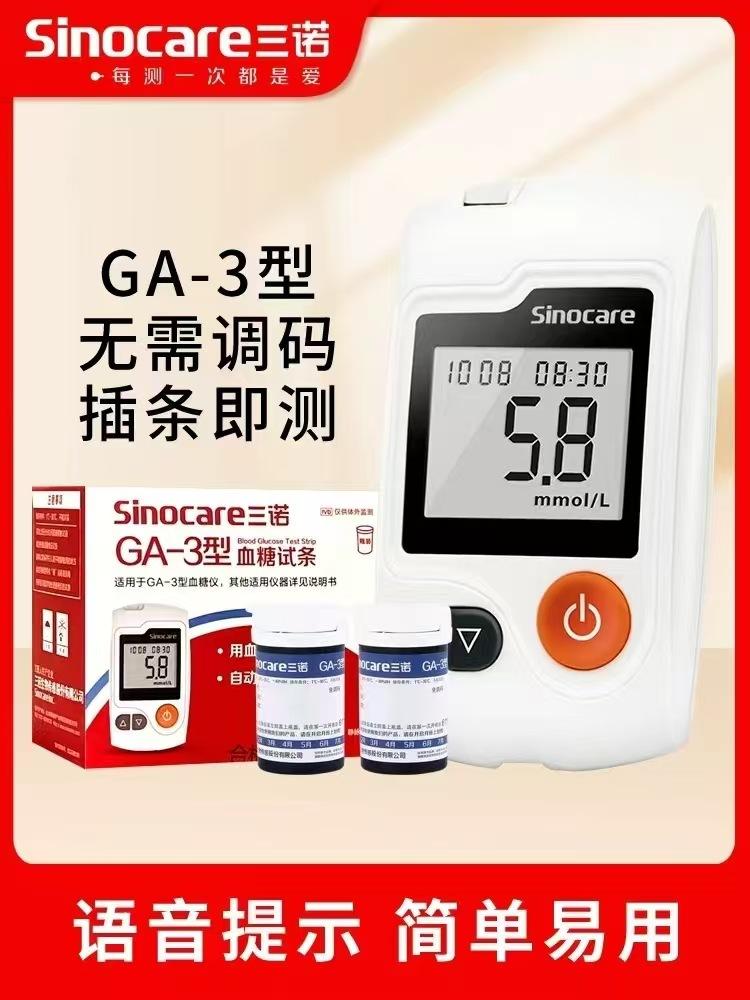 Medidor de glucosa en sangre Sannuo, automático, inteligente, estable, sin código grueso, papel de prueba de glucosa en sangre GA-3, tira de prueba de glucosa en sangre para el hogar
