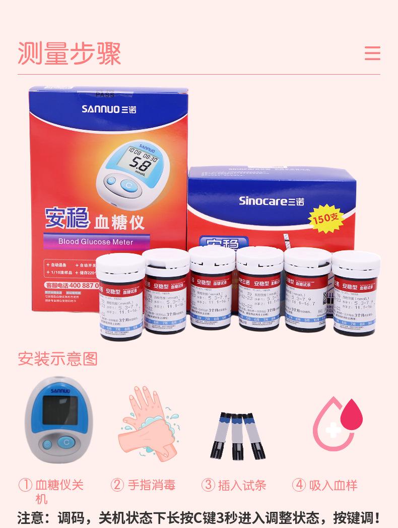 Tiras reactivas para prueba de glucosa en sangre Sannuo Anwen Ga-3 + Lanceta Medidor de glucosa en sangre Manejo de glucosa en sangre en casa Tiras reactivas
