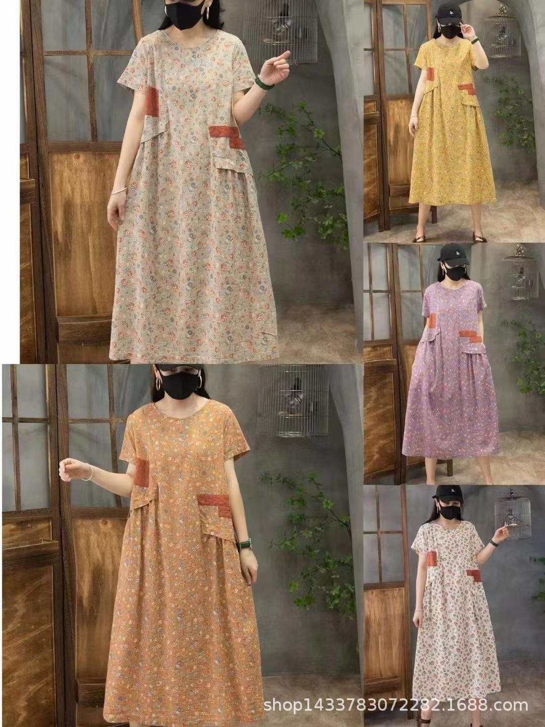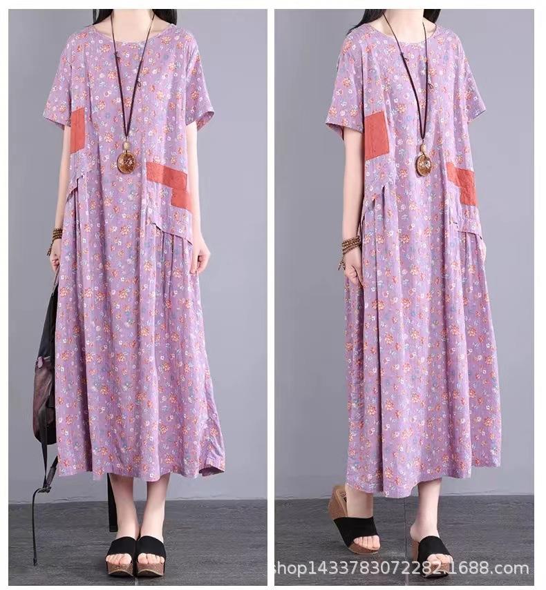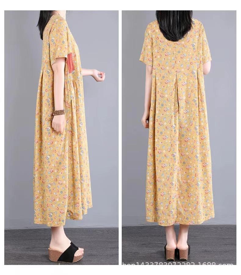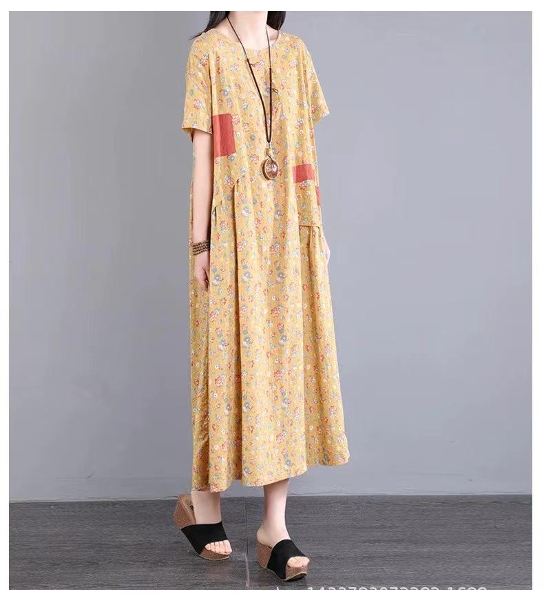 Compra Vestido elegante y artístico de color para mujer, verano 2024, nuevo, suelto, de manga corta, diseño irregular, falda midi al por mayor en Joom.pro