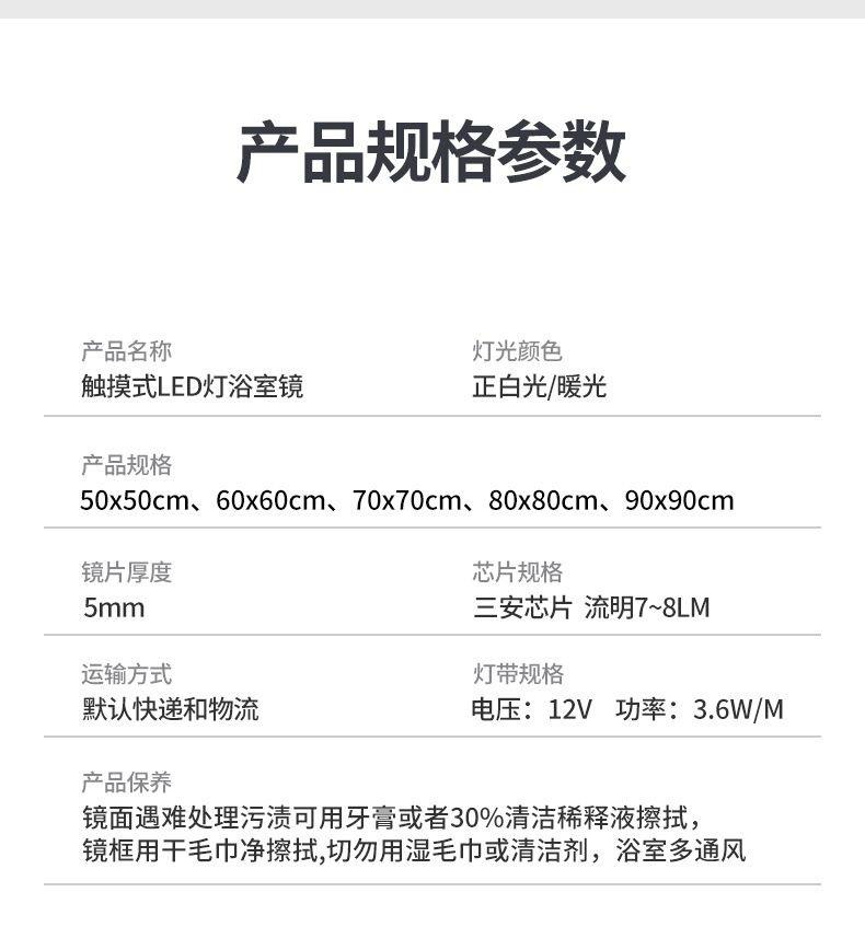 White light single touch, Warm Light + defogging + time, Three-color light electrodeless dimming, White light ...