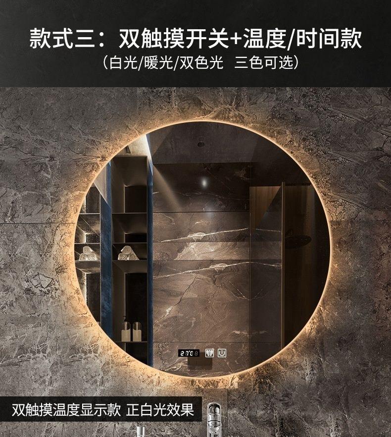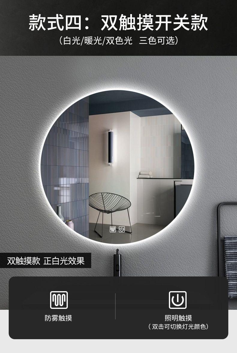 Espejo Redondo Espejo LED Espejo de Tocador de Baño Montado en la Pared Inodoro Antivaho Espejo de Baño con Atenuación de Tres Colores