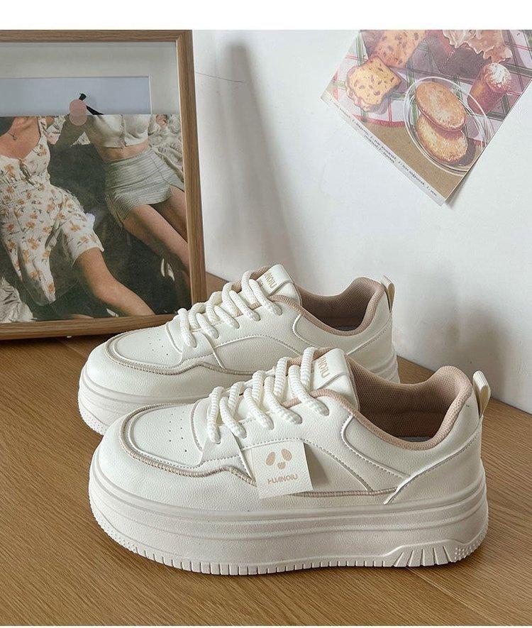 Compra Tenis Blancos de Otoño 2024 para Mujer, Color Sólido, Zapatos de Moda Ins, Suela Gruesa, Cómodos, Versátiles, Estilo Universitario, Artículo Caliente de Comercio Exterior al por mayor en Joom.pro