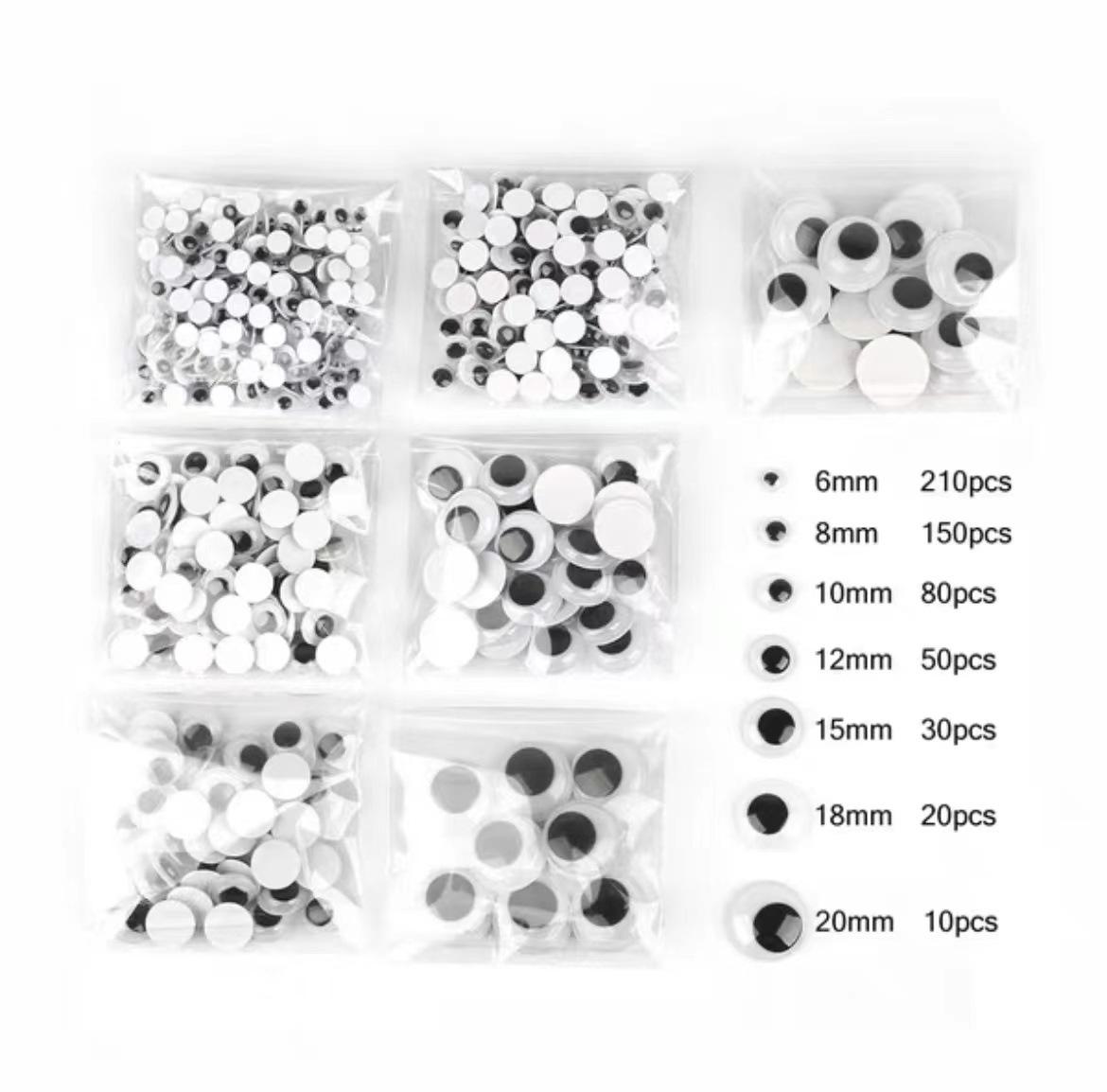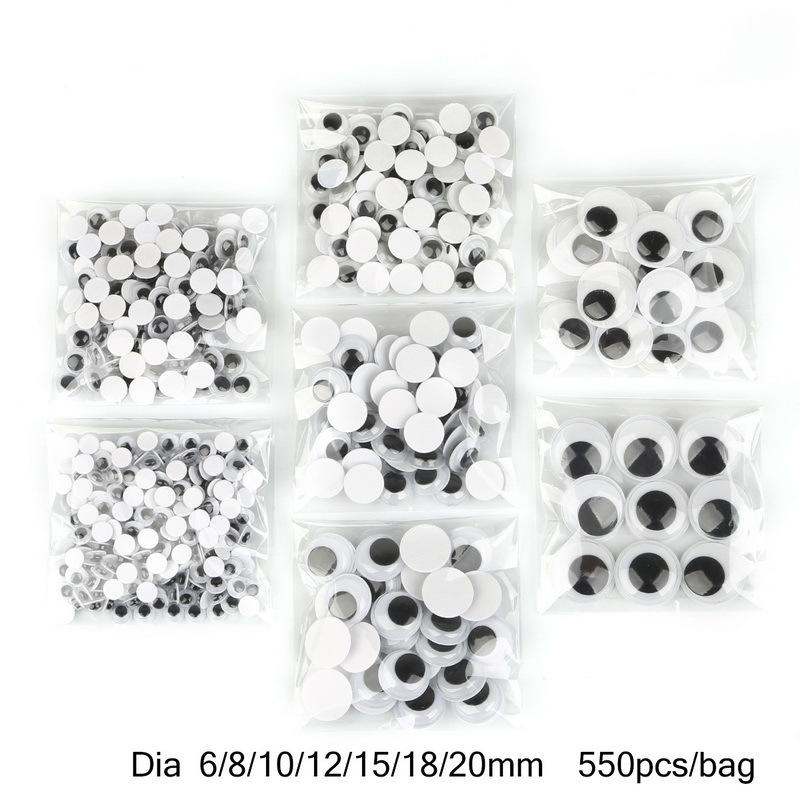 6/8/10/12/15/18/20mm mixed 550 pieces with adhesive eyes