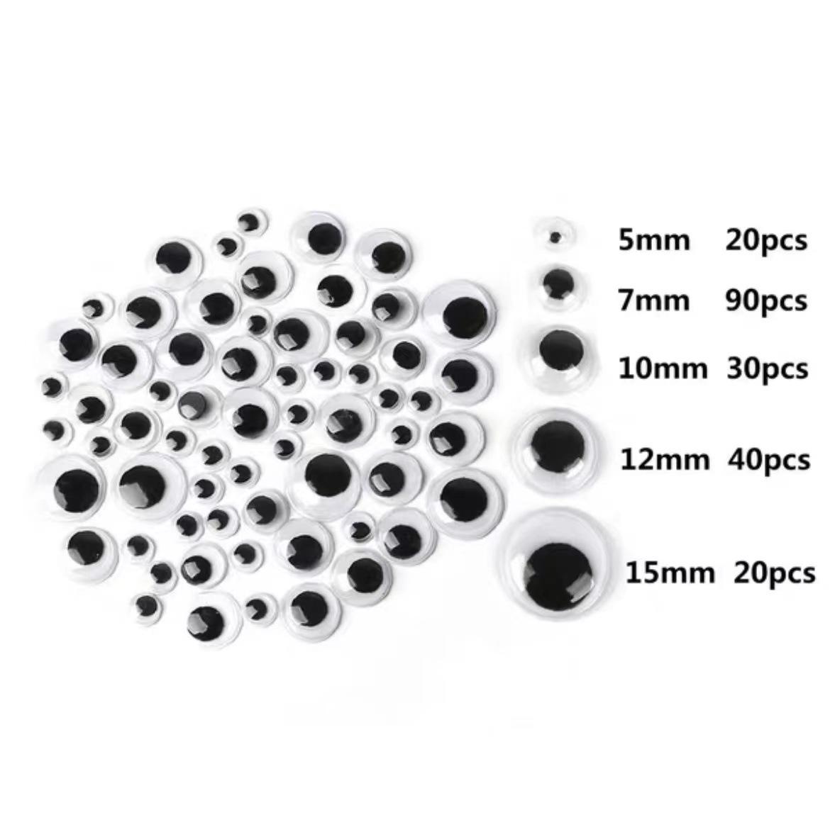 5/7/10/12/15mm mixed pack 200 pieces with adhesive eyes