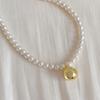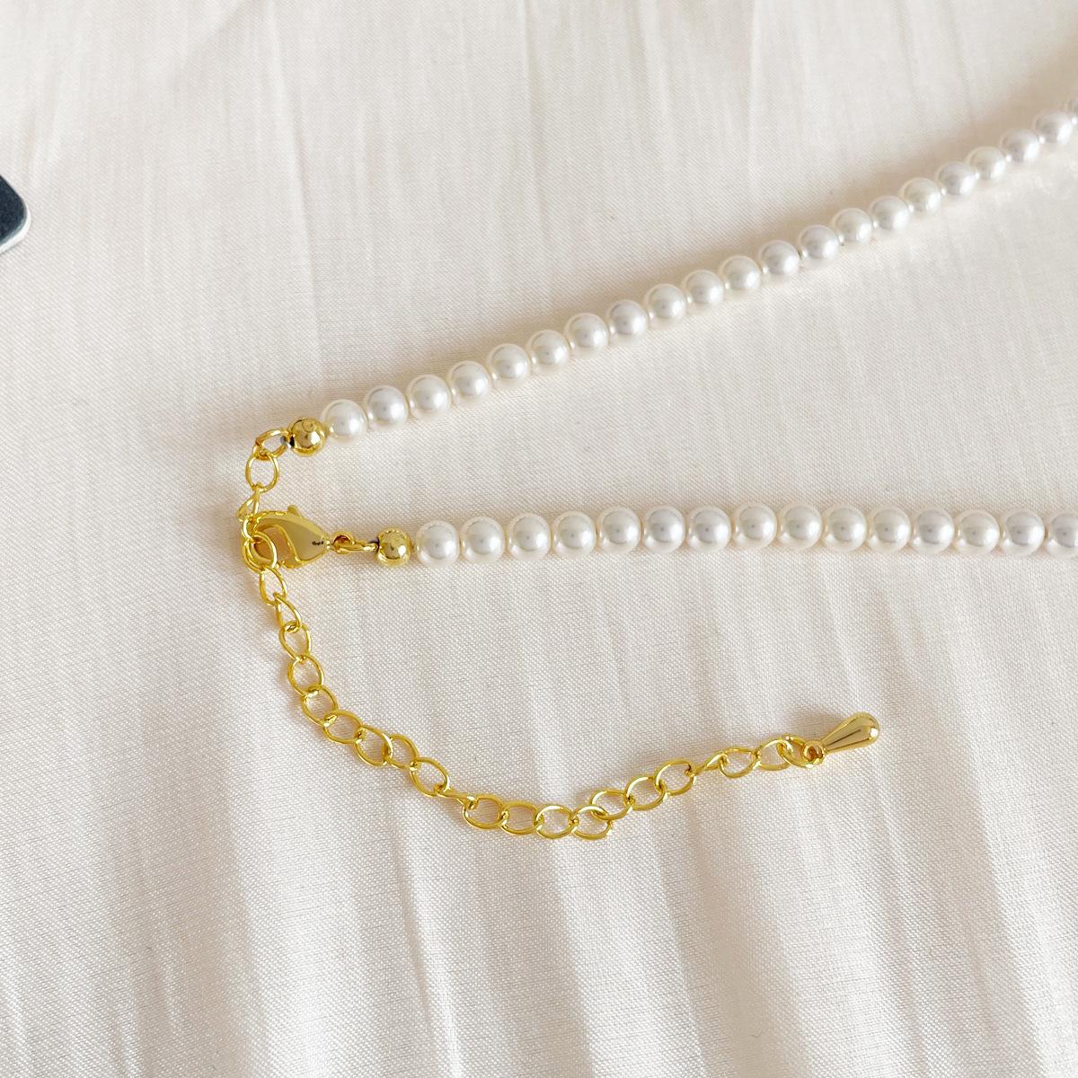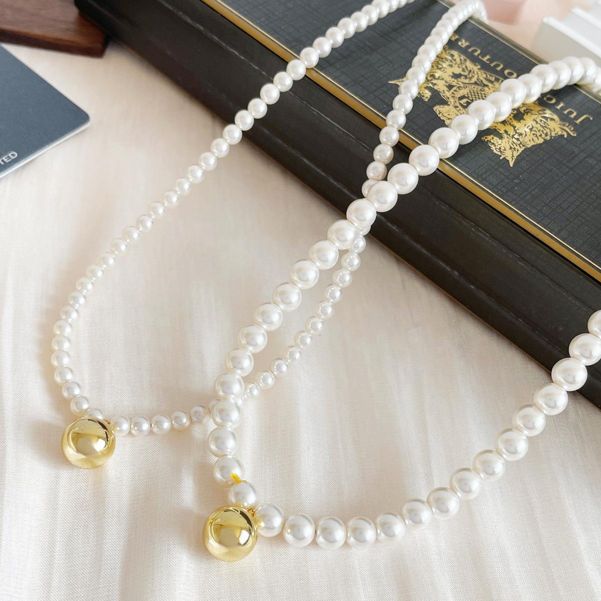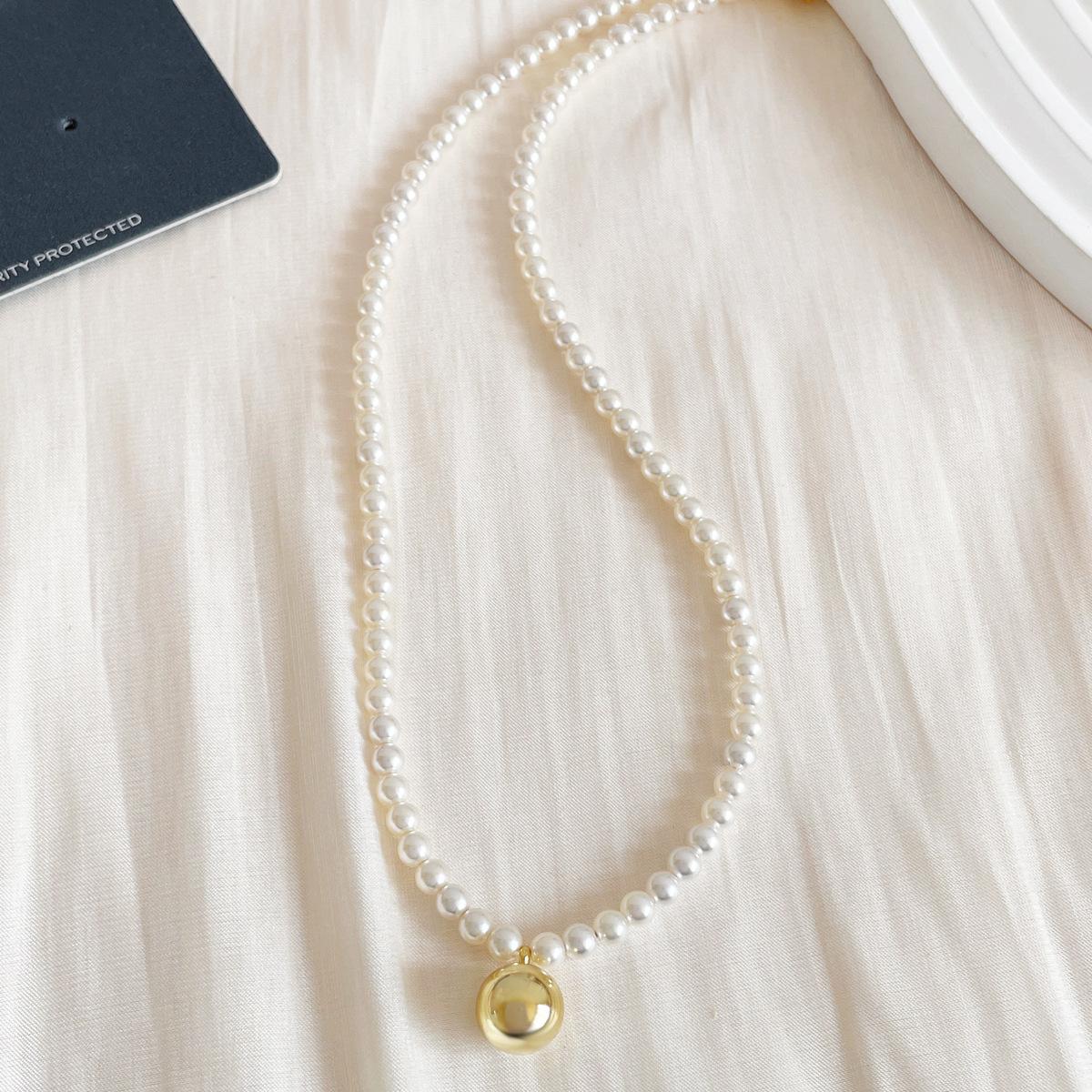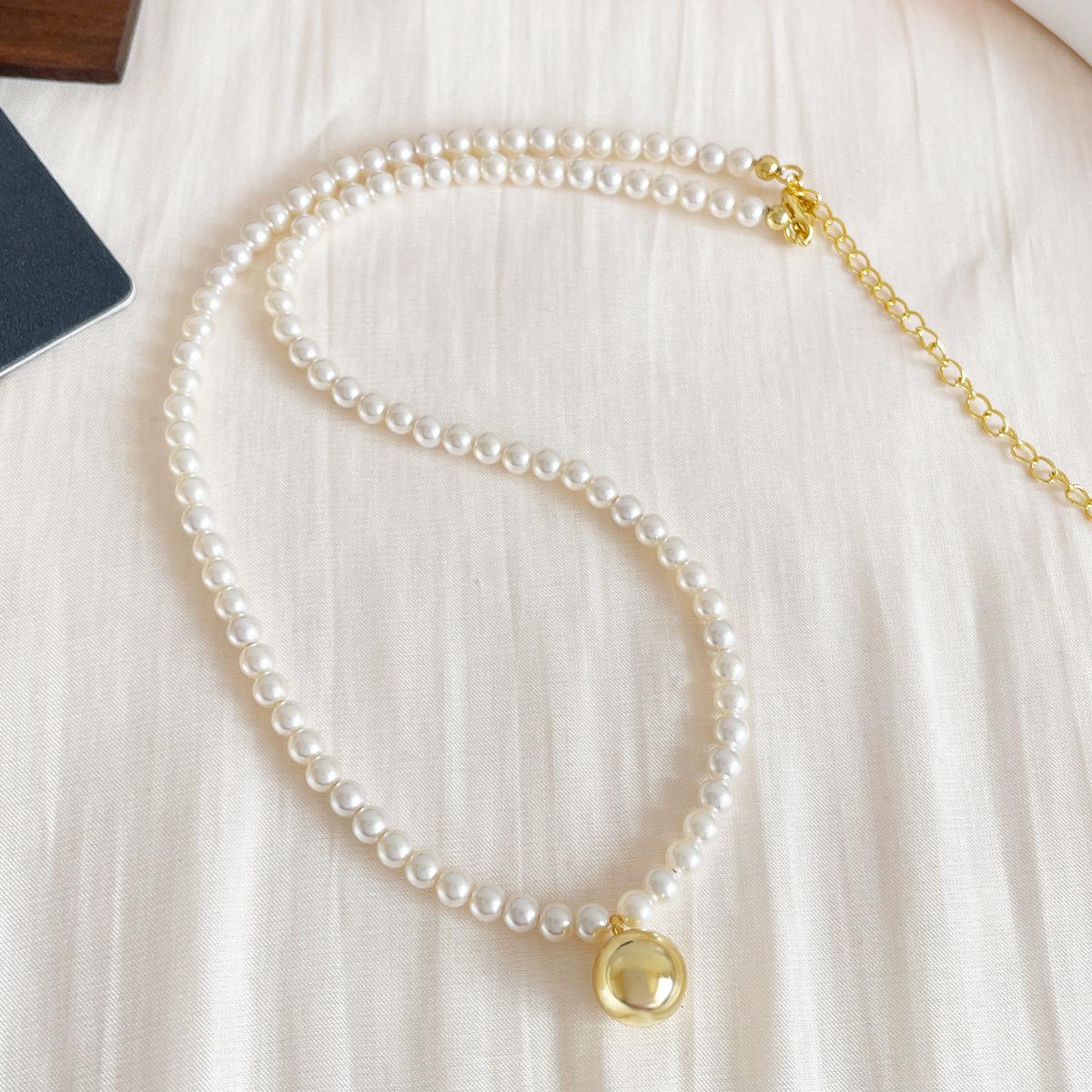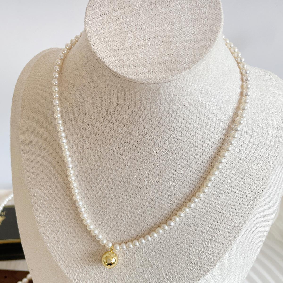 Collar de perlas Shijia con colgante de bola pequeña de oro de 18 quilates, cadena de clavícula con cuentas de mijo redondas de alta calidad que combina con todo.