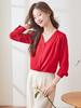 Camiseta Blanca de Cuello Redondo y Manga Larga para Mujer Otoño 2025 Nueva Parte Superior Suave Elegante Camisa Pequeña Camisa a la Moda
