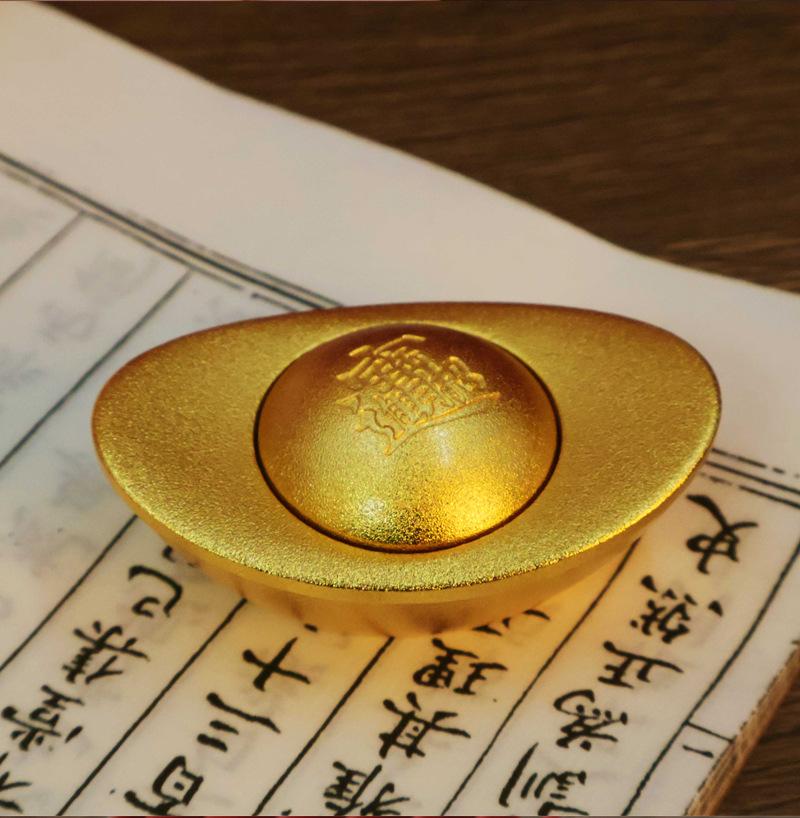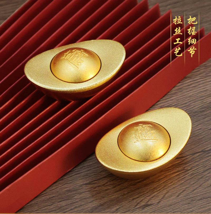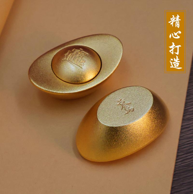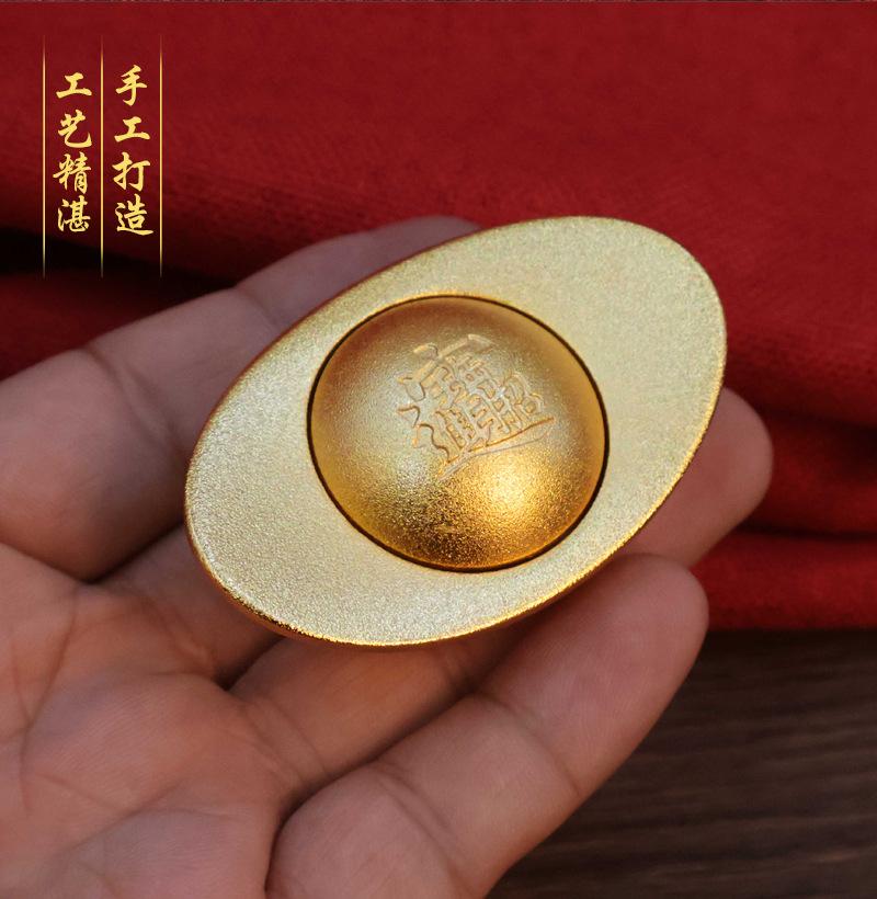 Lingote de Oro Latón para Atraer Arroz en Arroz, Adornos de Cobre Simulado, Decoración de Cornucopia para Hogar Oficina, Artesanías de Chorro de Arena