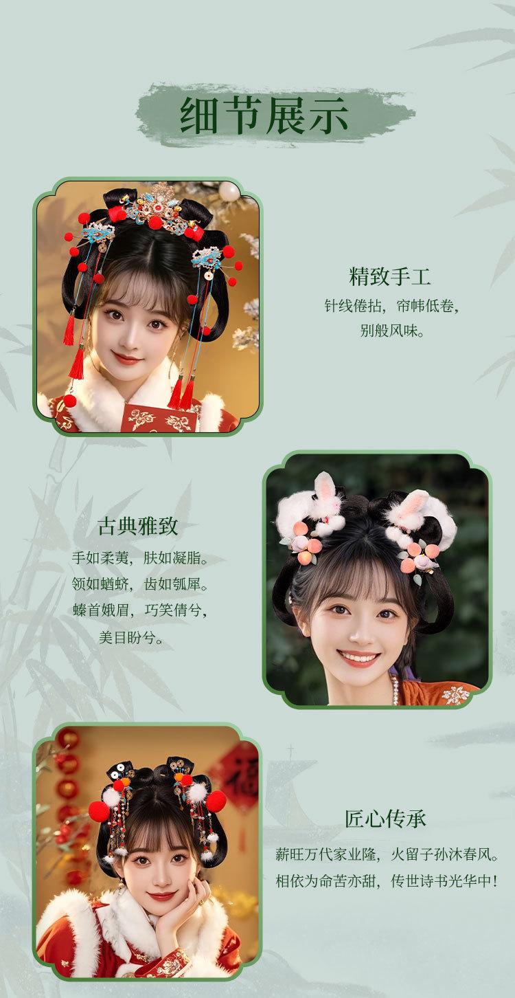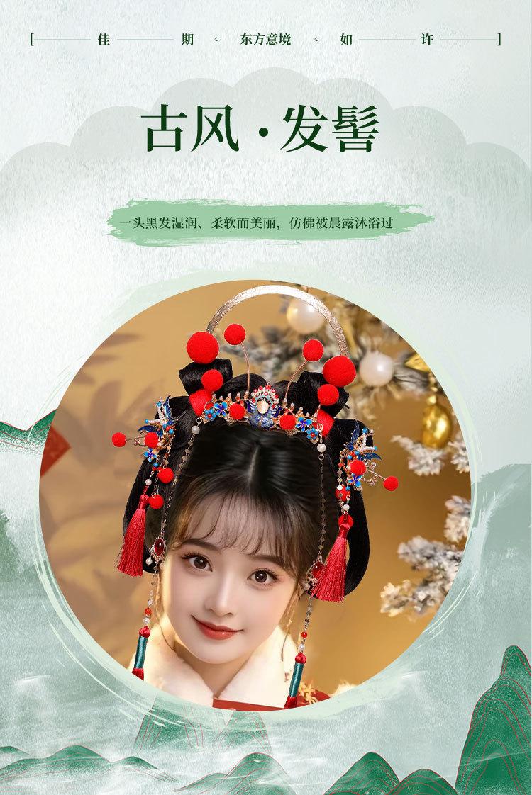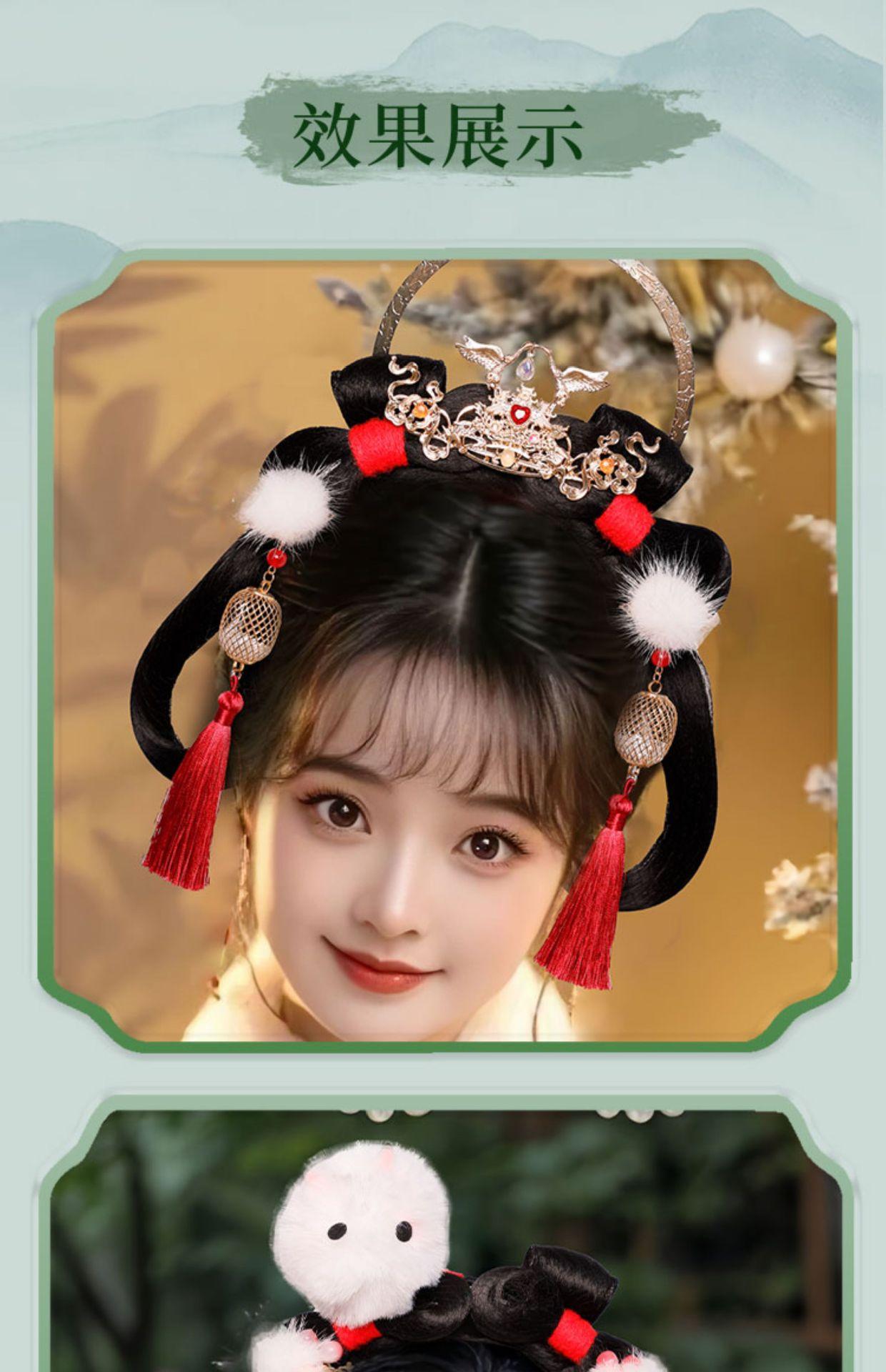 Peluca integrada con lazo, estilo antiguo Hanfu Tang, accesorios para el cabello que combinan con todo.