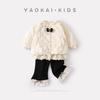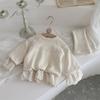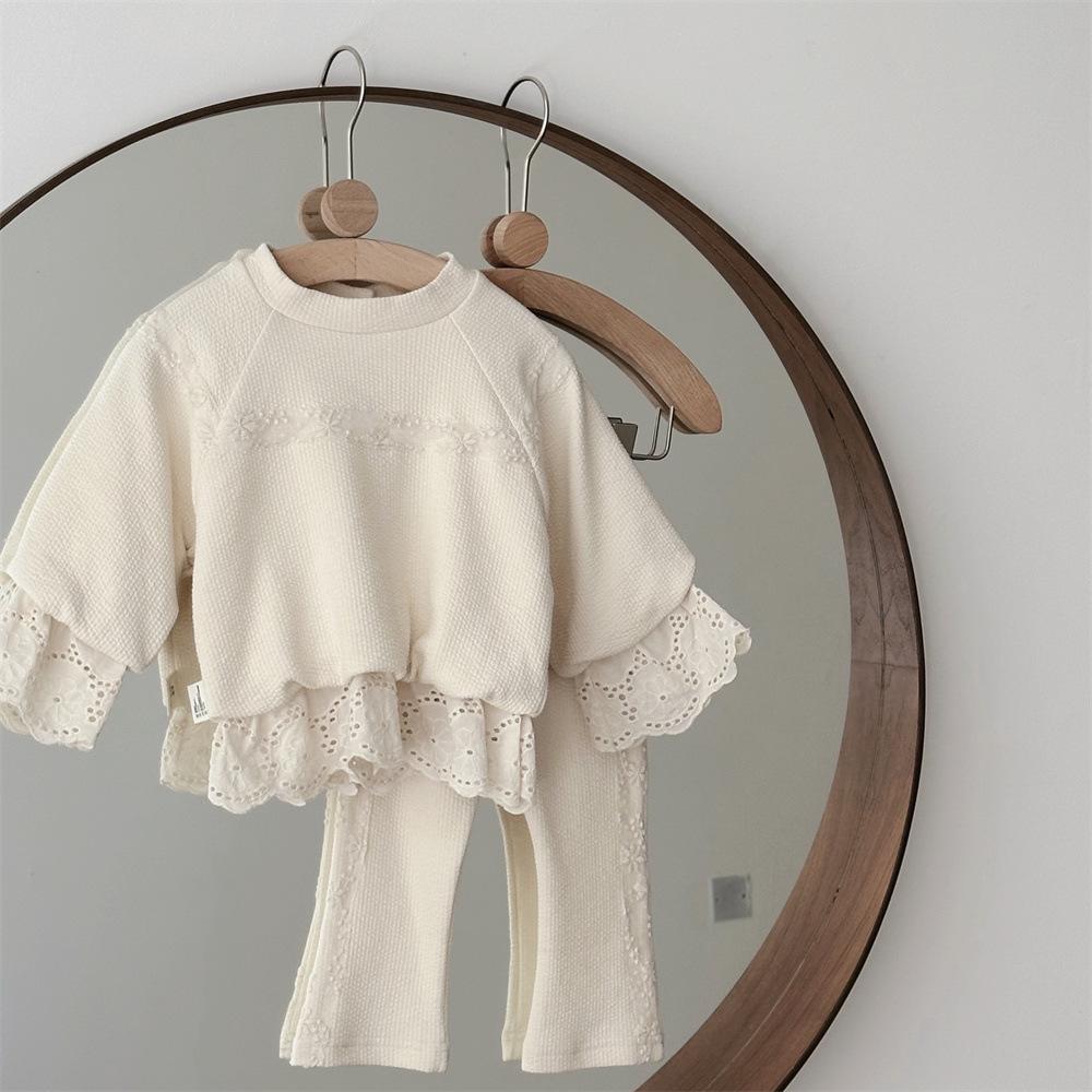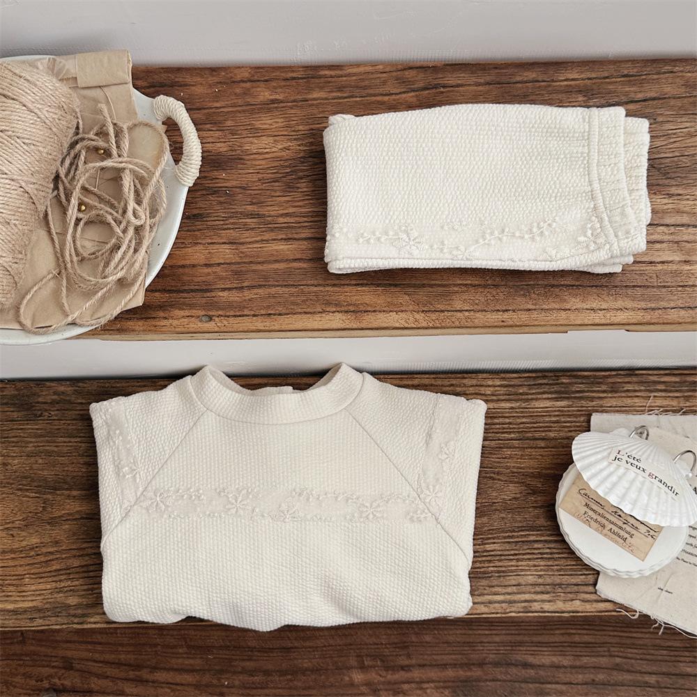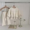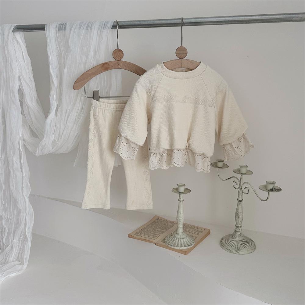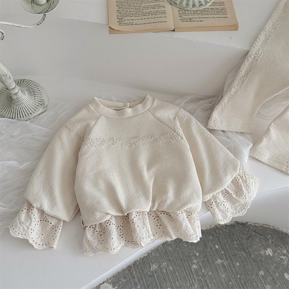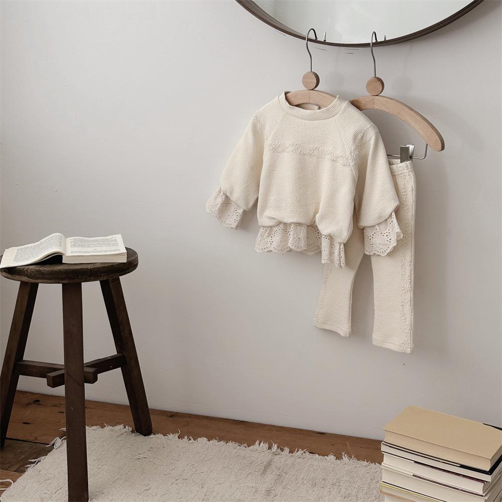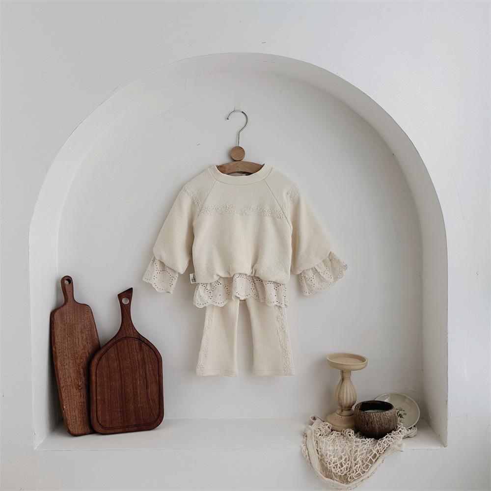 INS Otoño e Invierno Bebé Cuello Medio Alto Puño de Encaje Bajo Manga Larga Top de Doble Capa Pantalón Traje de Dos Piezas