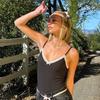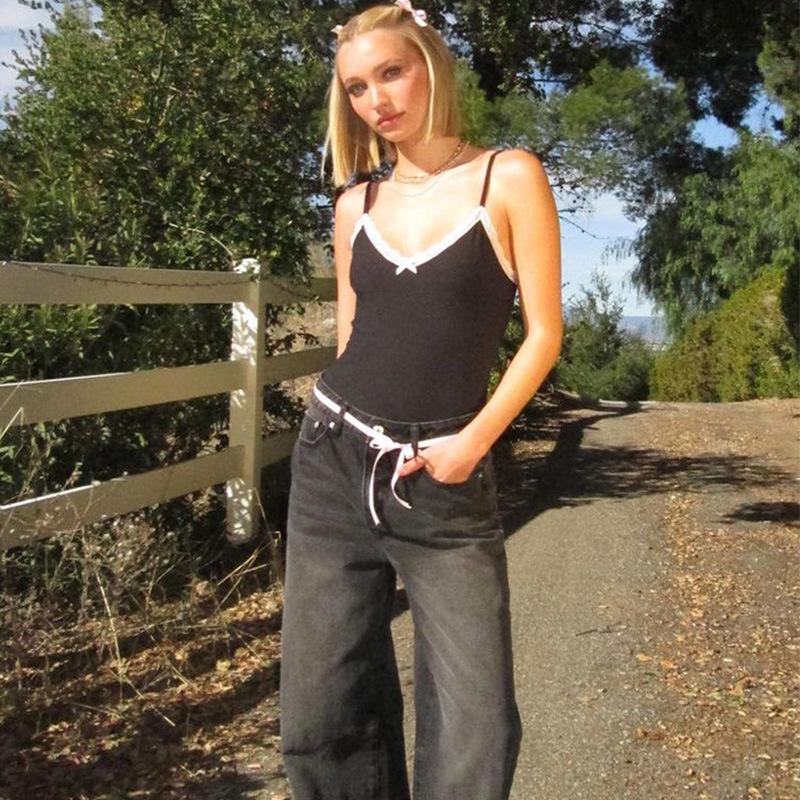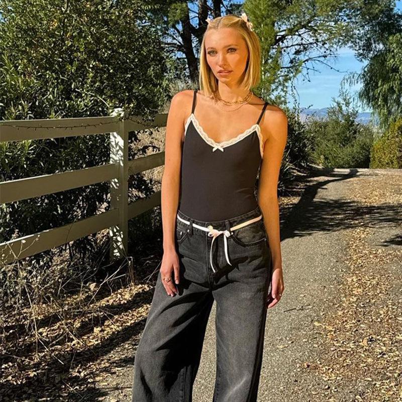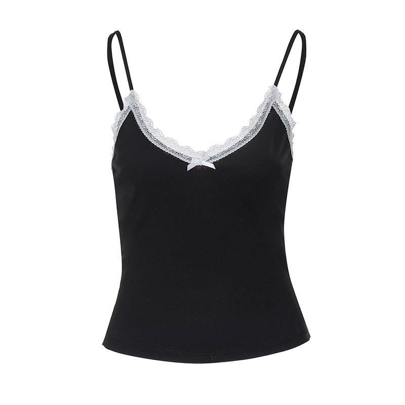 Chaleco de verano 2024 con escote en V bajo y costuras de encaje estilo europeo y americano para mujer