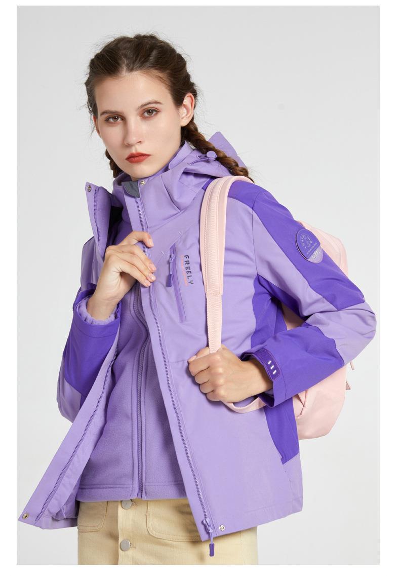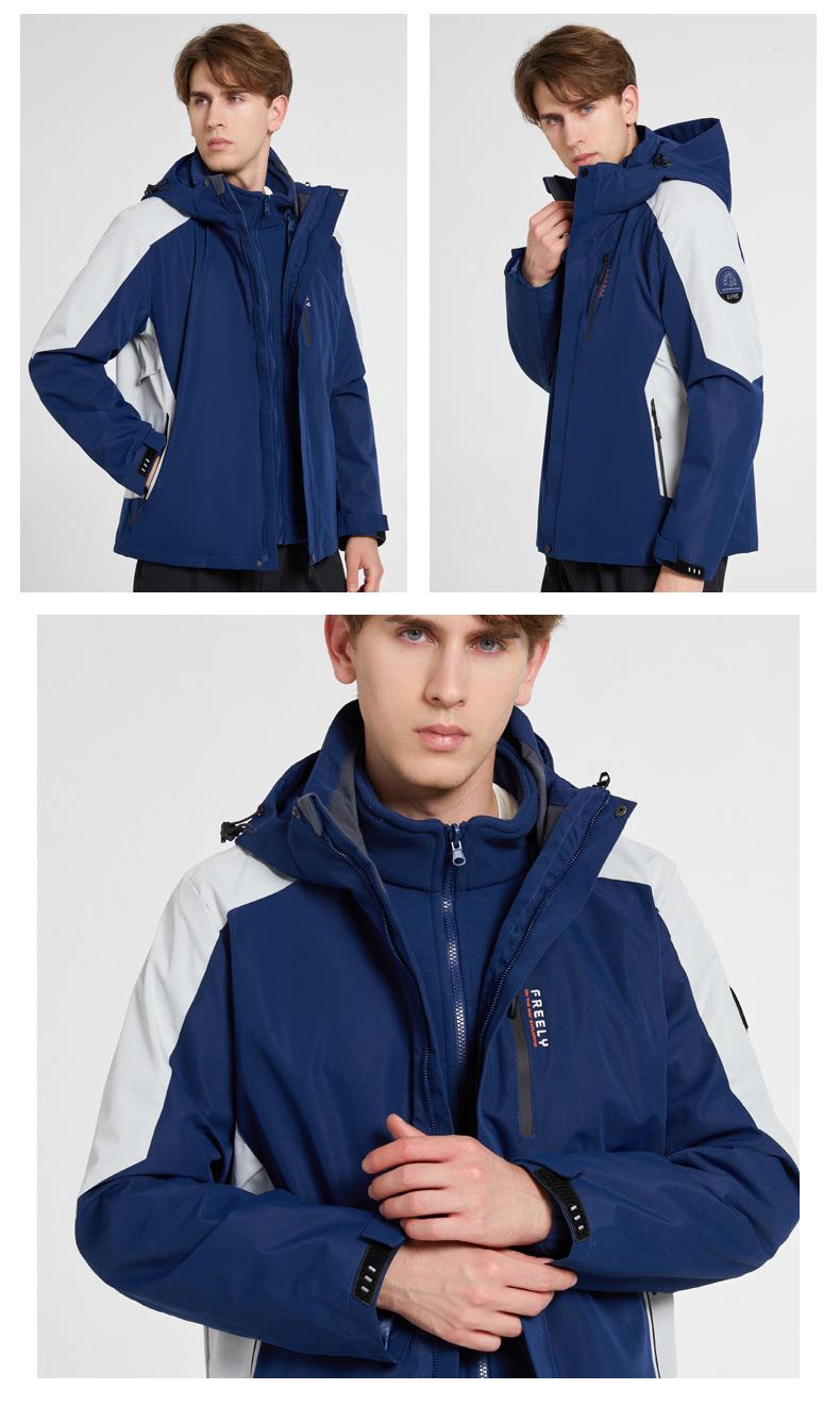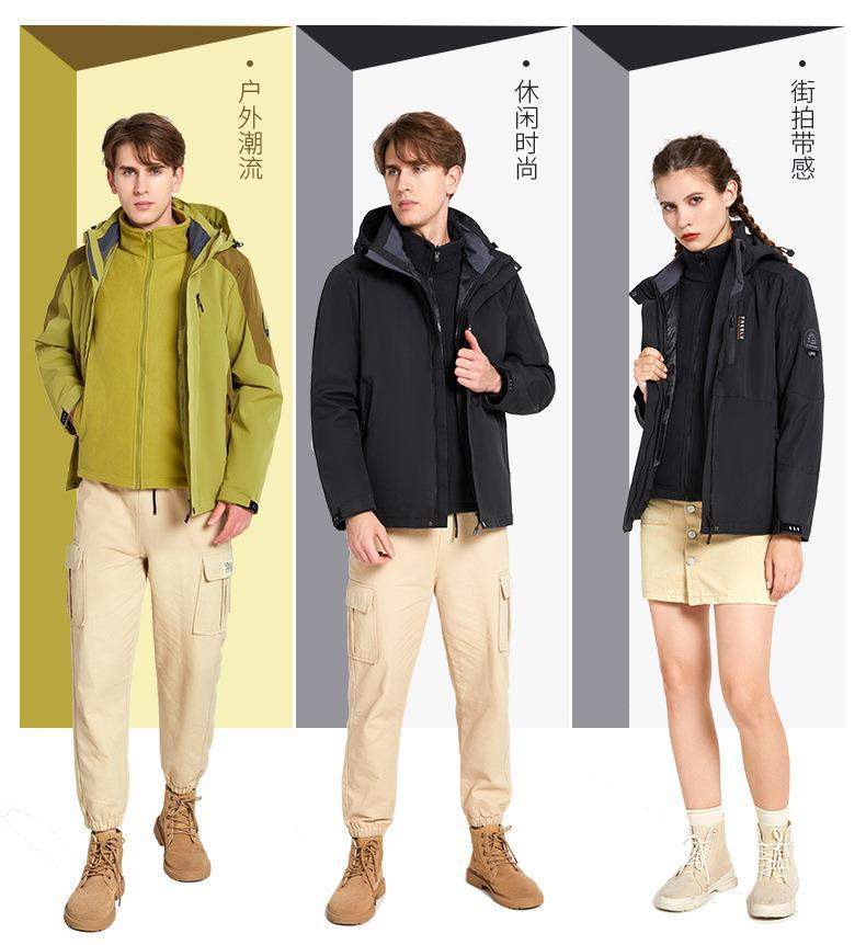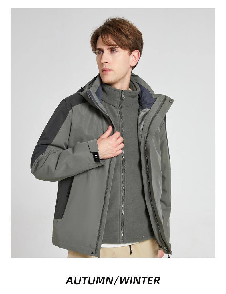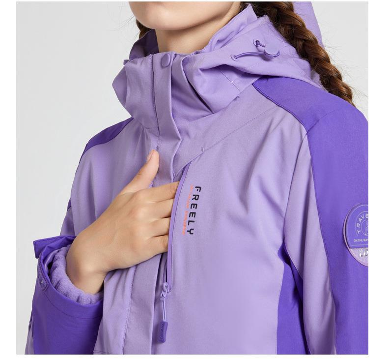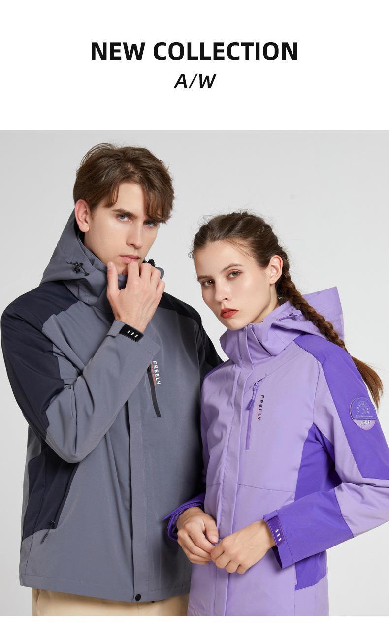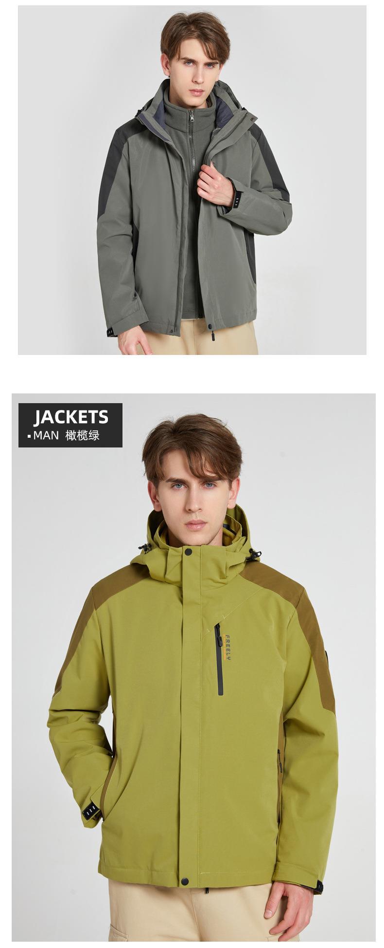 Traje de esquí de dos piezas para montañismo al aire libre, resistente al viento, con forro de terciopelo de visón dorado desmontable, tres en uno, para hombres y mujeres