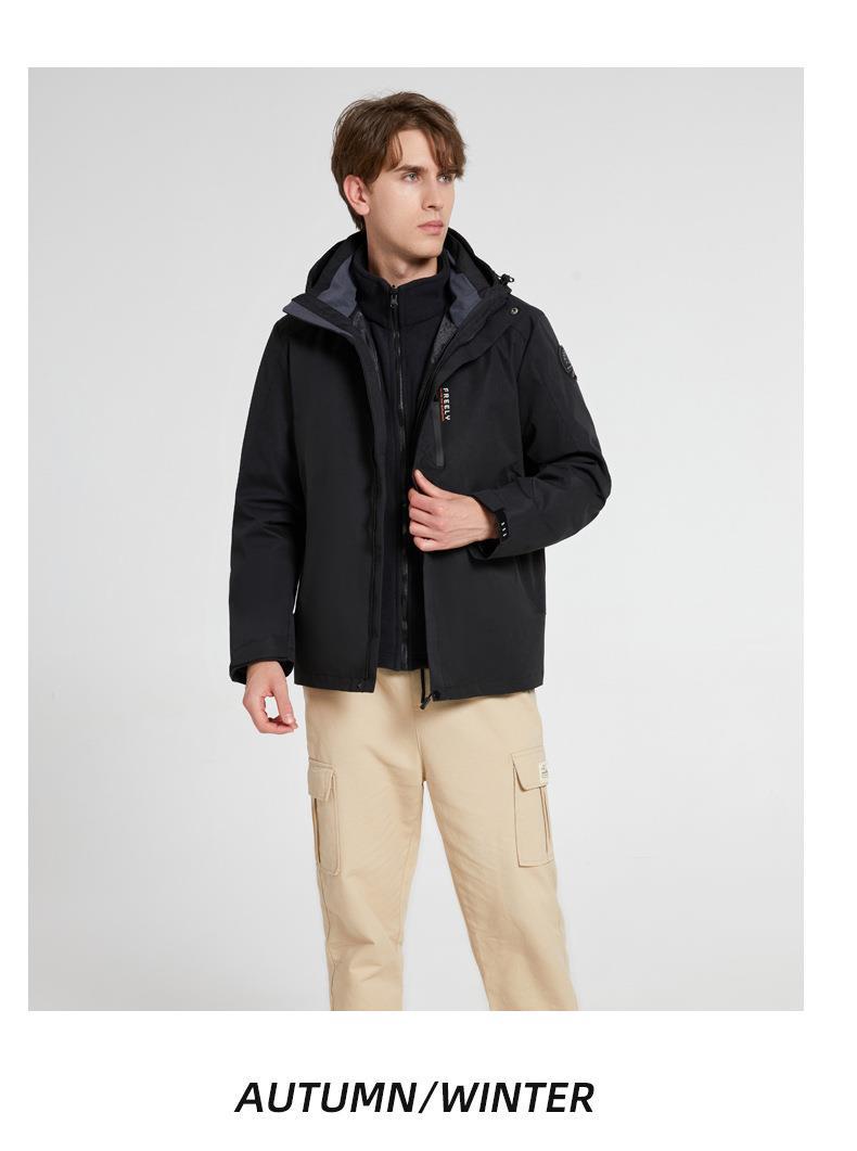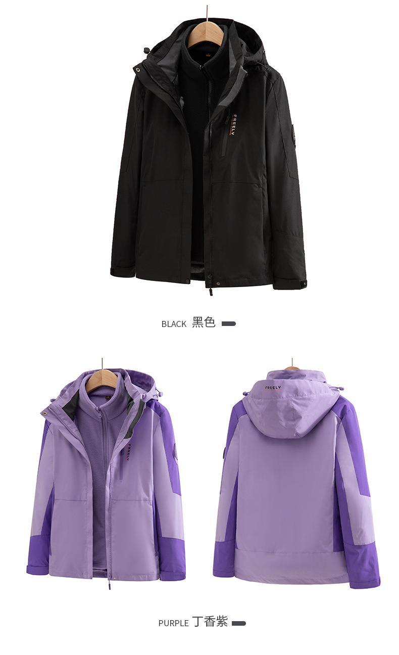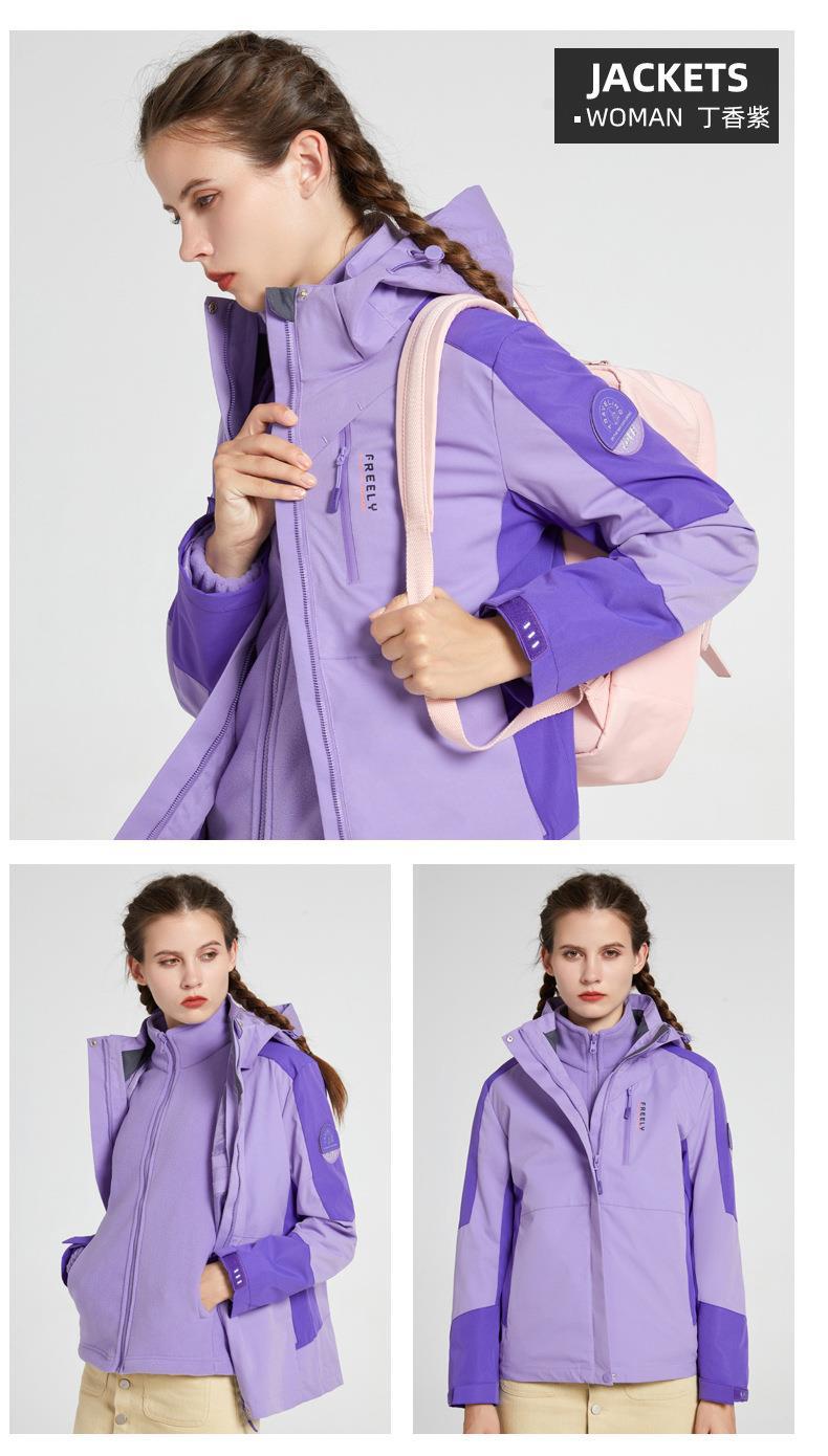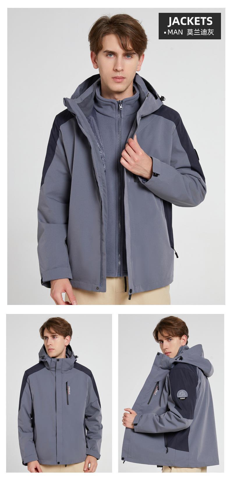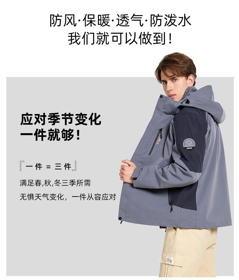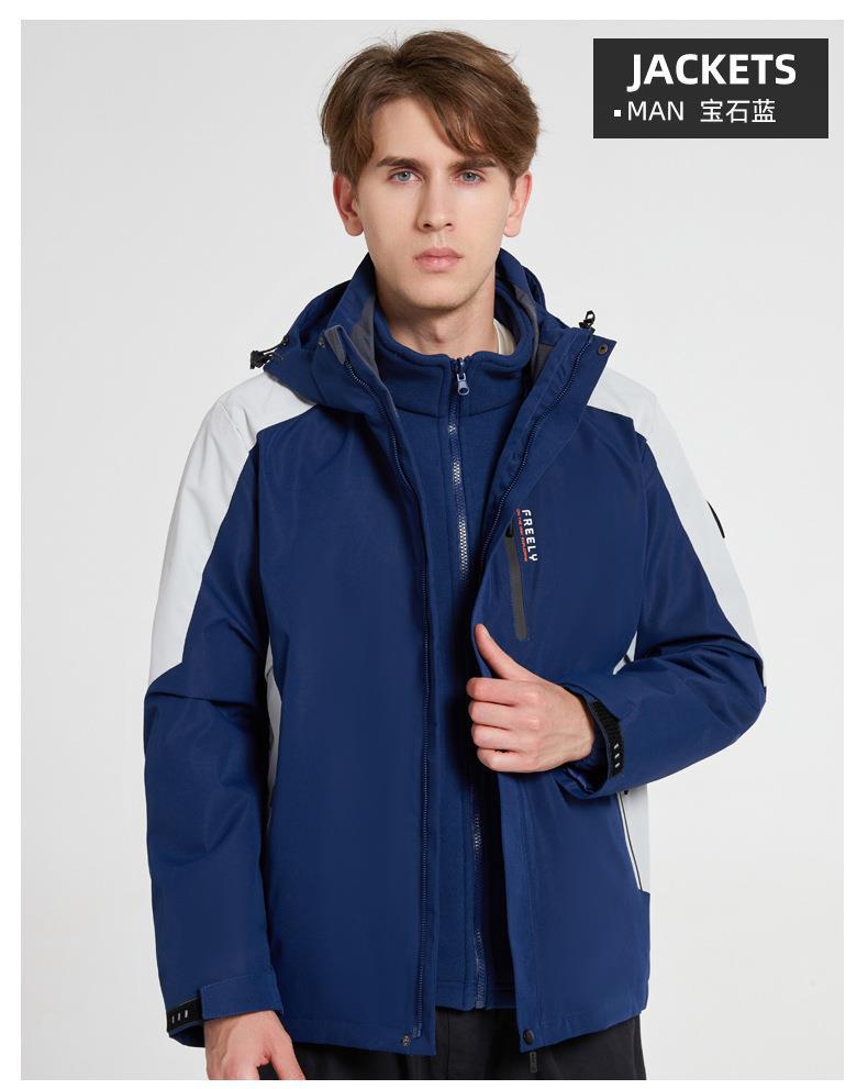 Traje de esquí de dos piezas para montañismo al aire libre, resistente al viento, con forro de terciopelo de visón dorado desmontable, tres en uno, para hombres y mujeres