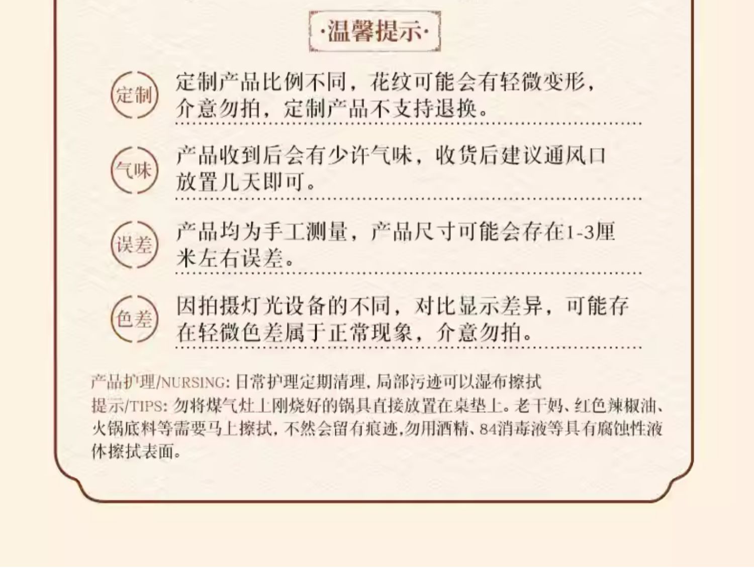 Contact customer service for customization