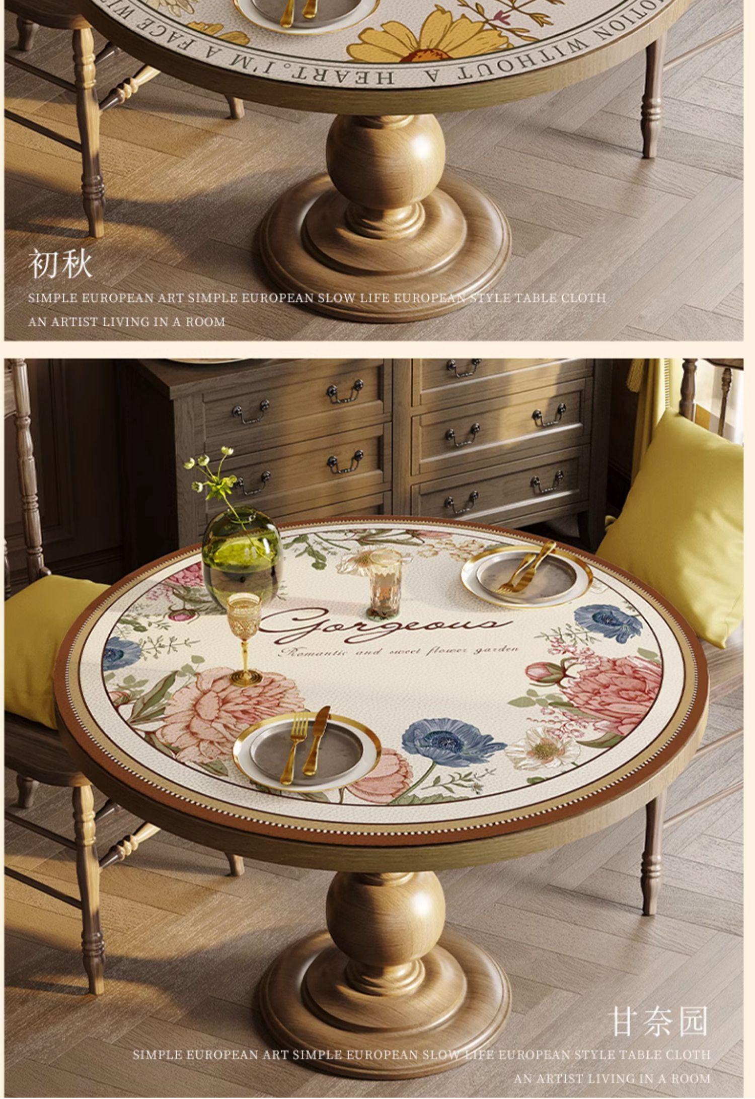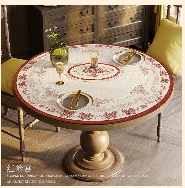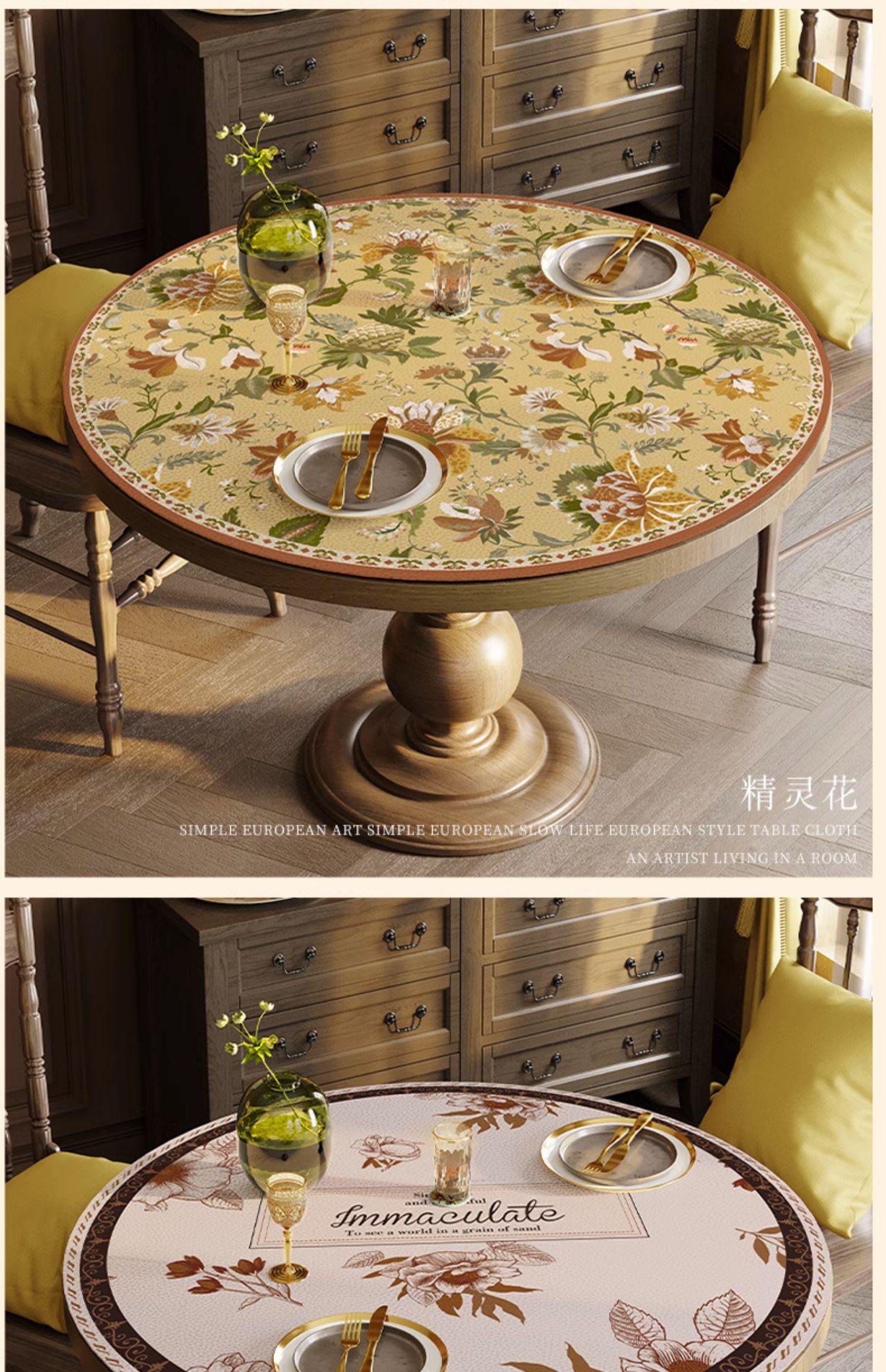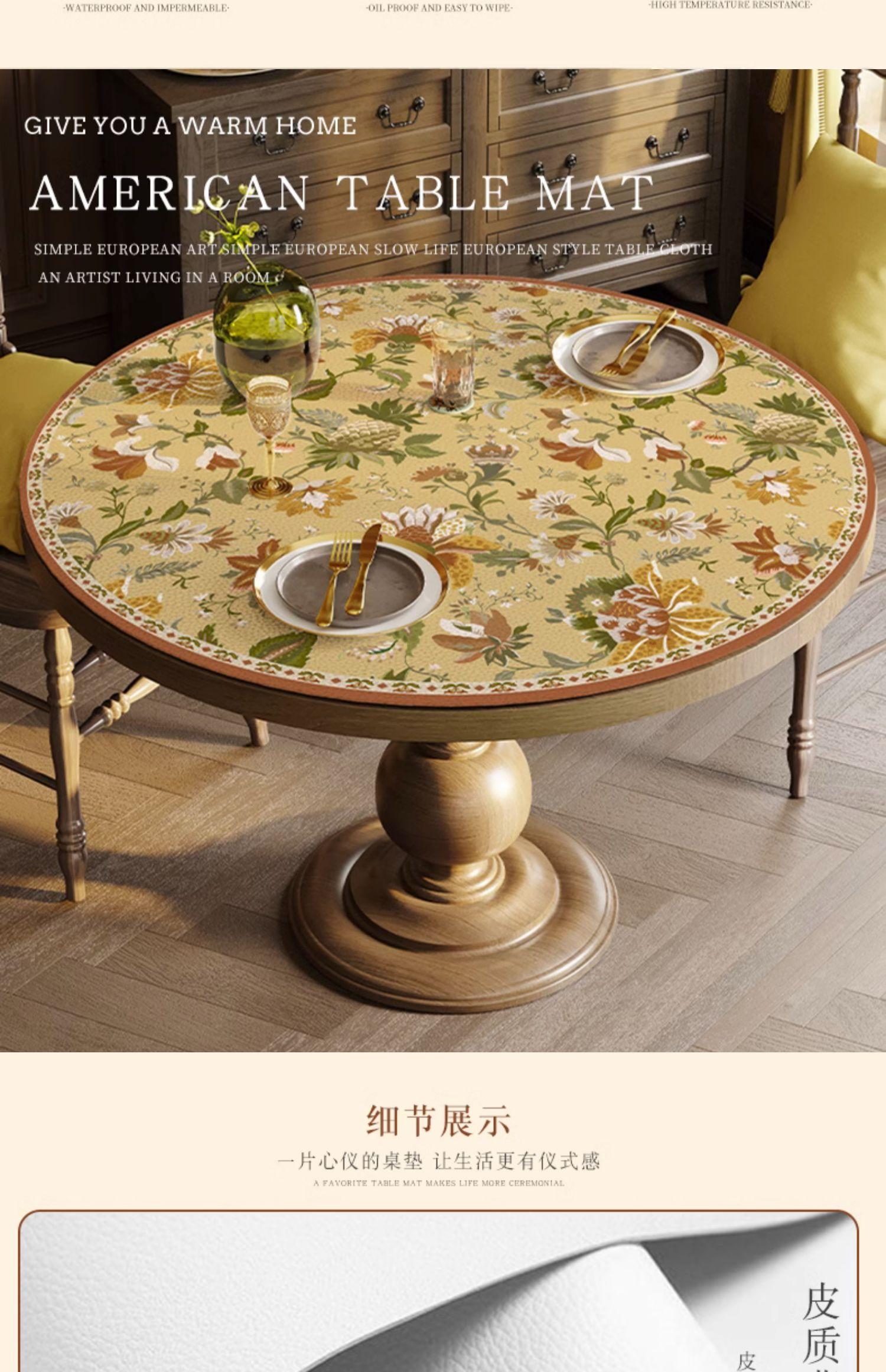 Estilo Americano Mantel Redondo Grande Impermeable a Prueba de Aceite Antiescaldante Mantel de Mesa Sentido Avanzado Mesa de Comedor Mesa de Centro Mantel Redondo de Cuero