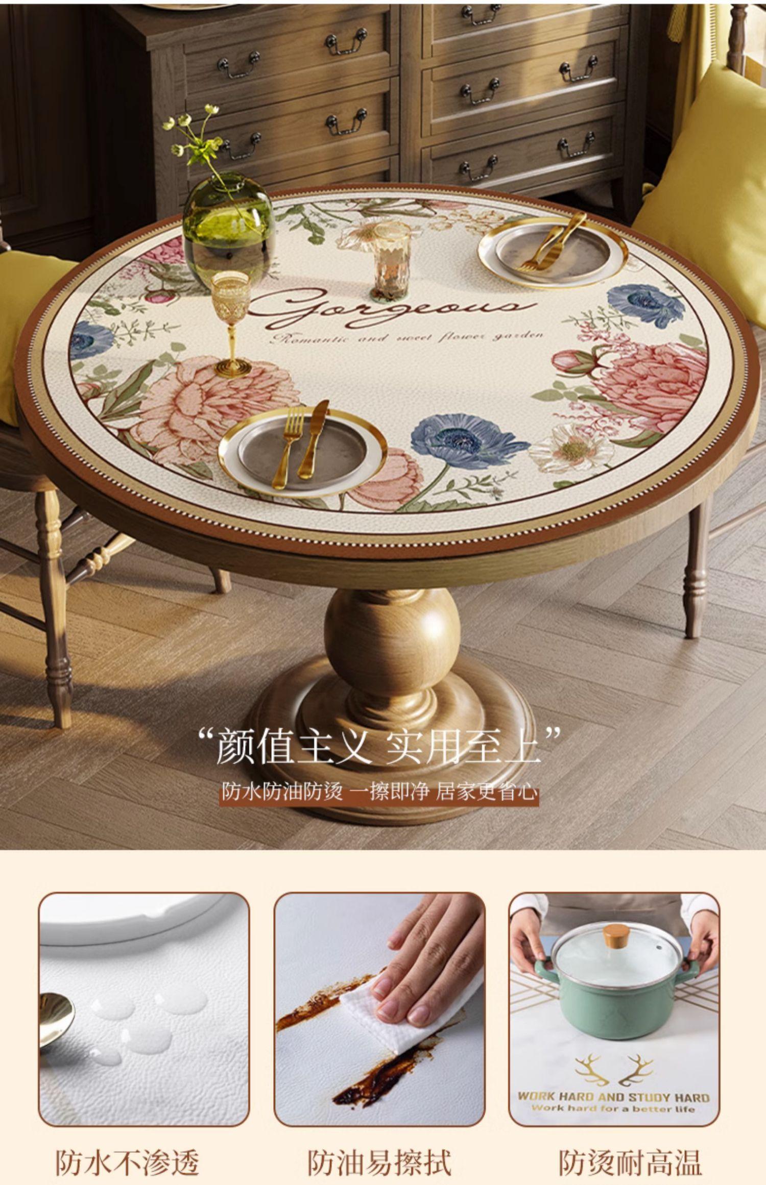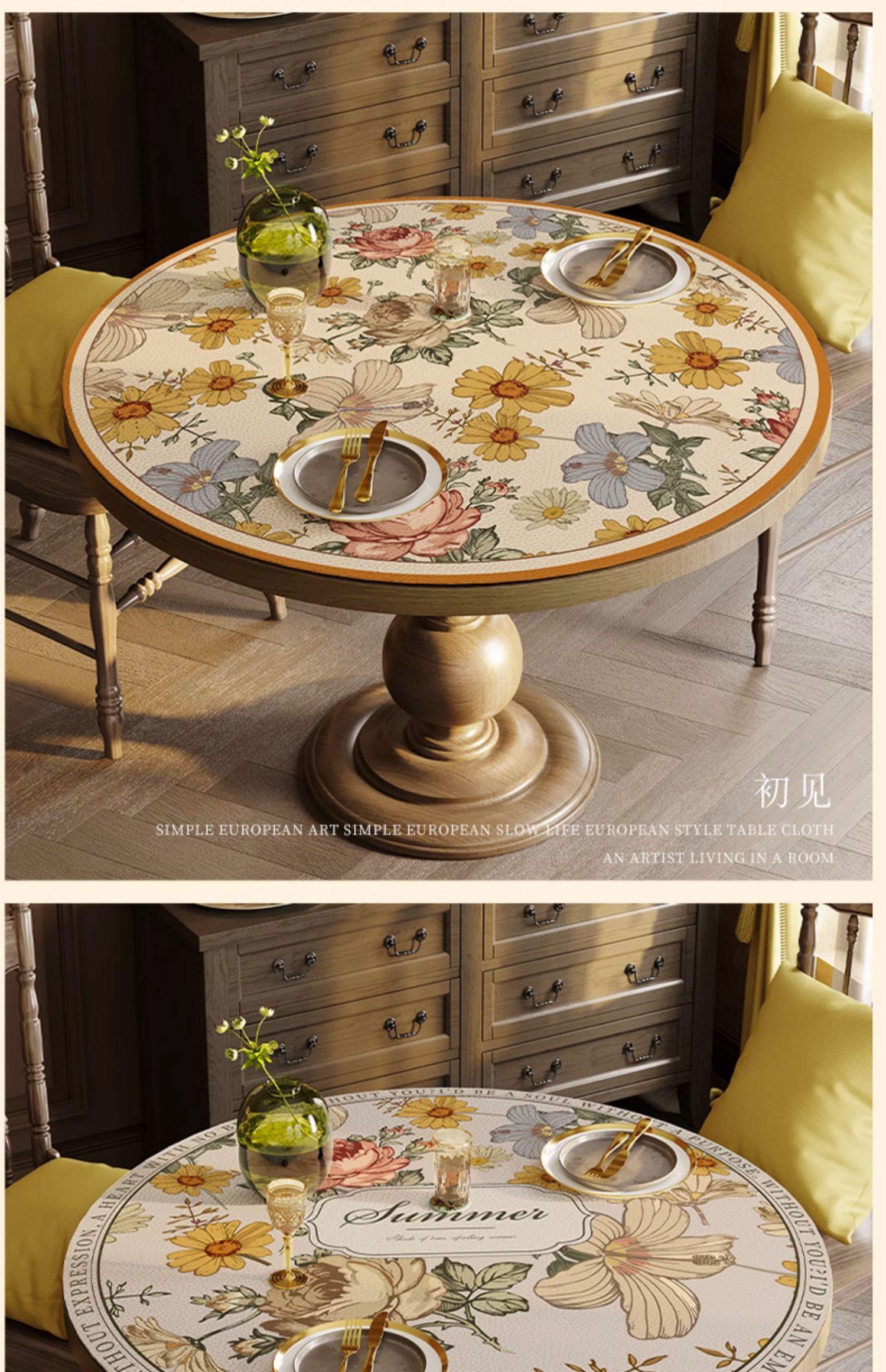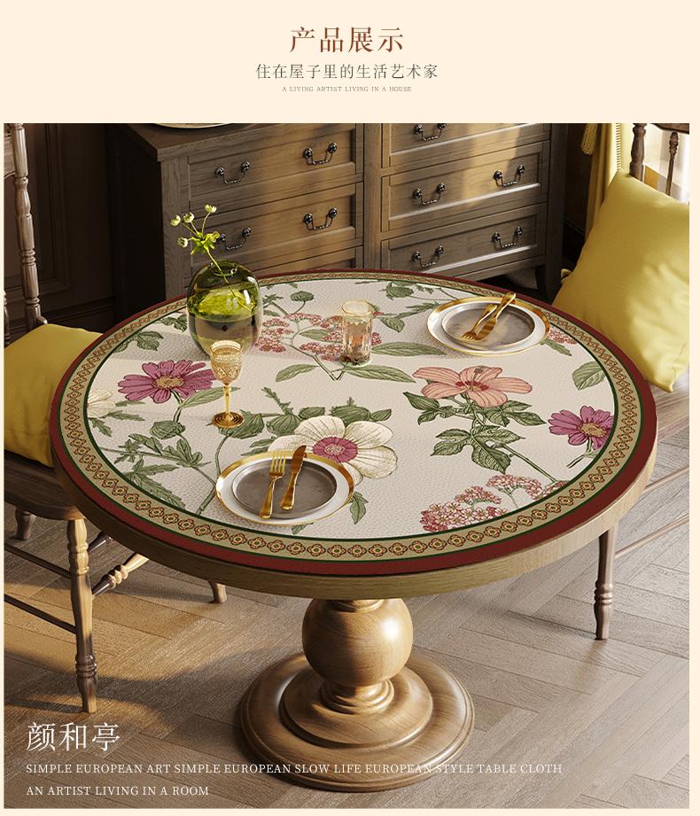 Estilo Americano Mantel Redondo Grande Impermeable a Prueba de Aceite Antiescaldante Mantel de Mesa Sentido Avanzado Mesa de Comedor Mesa de Centro Mantel Redondo de Cuero