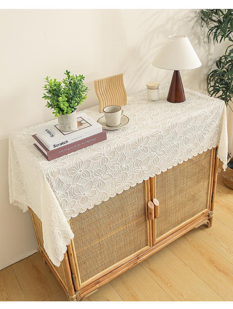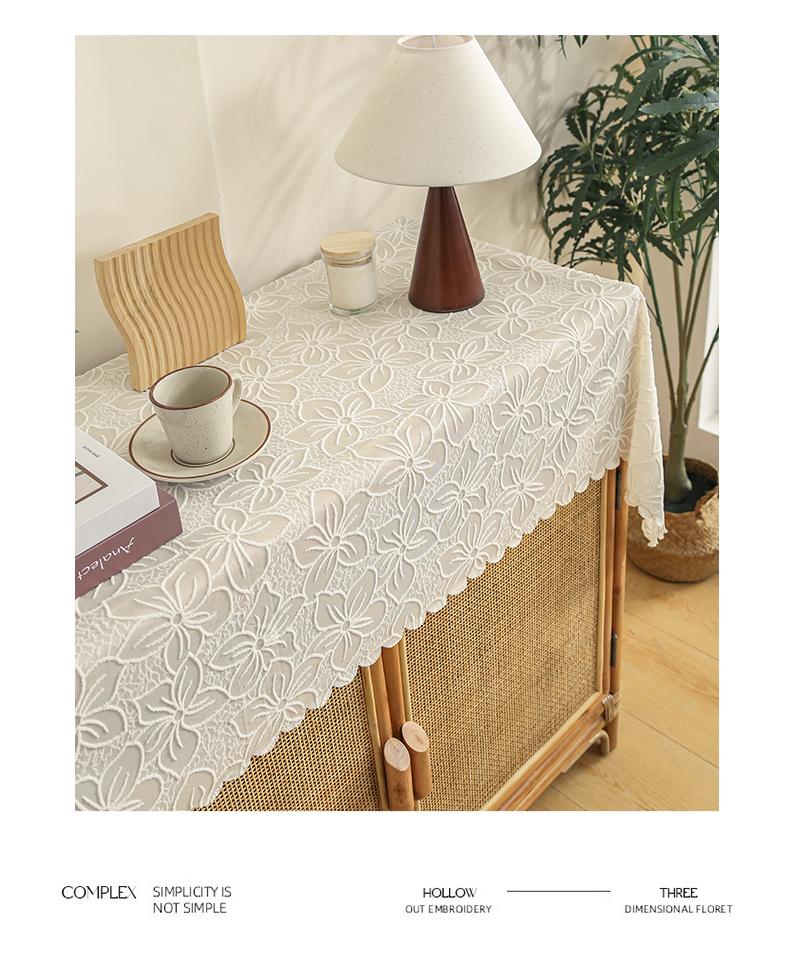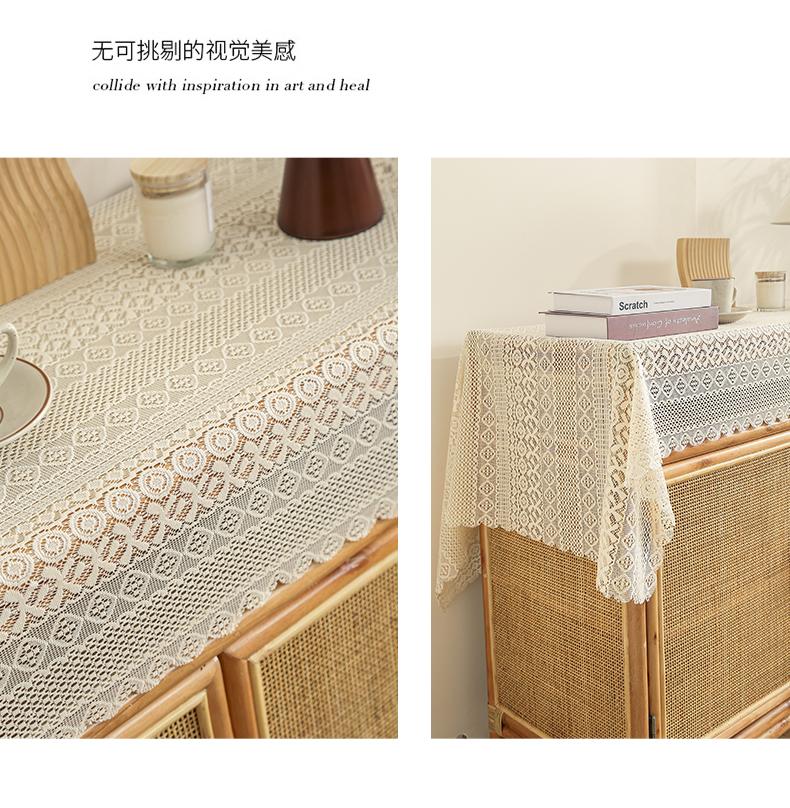 Mantel estilo americano a prueba de polvo con encaje, camino de mesa de hilo cuadrado para mesa de comedor, mueble de TV, mesa de centro, mantel de lujo ligero estilo francés, cubierta romántica, toalla