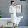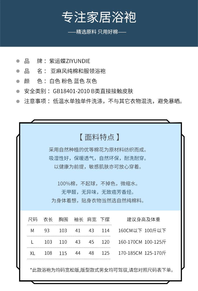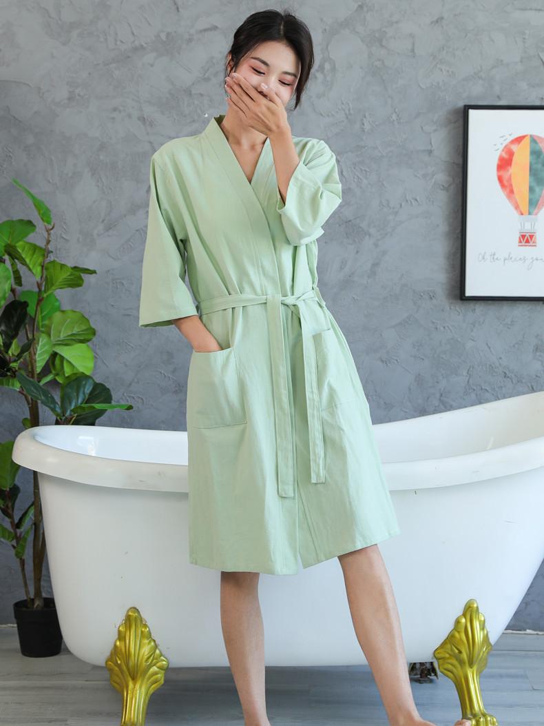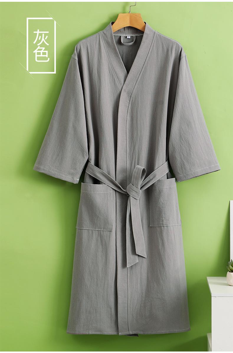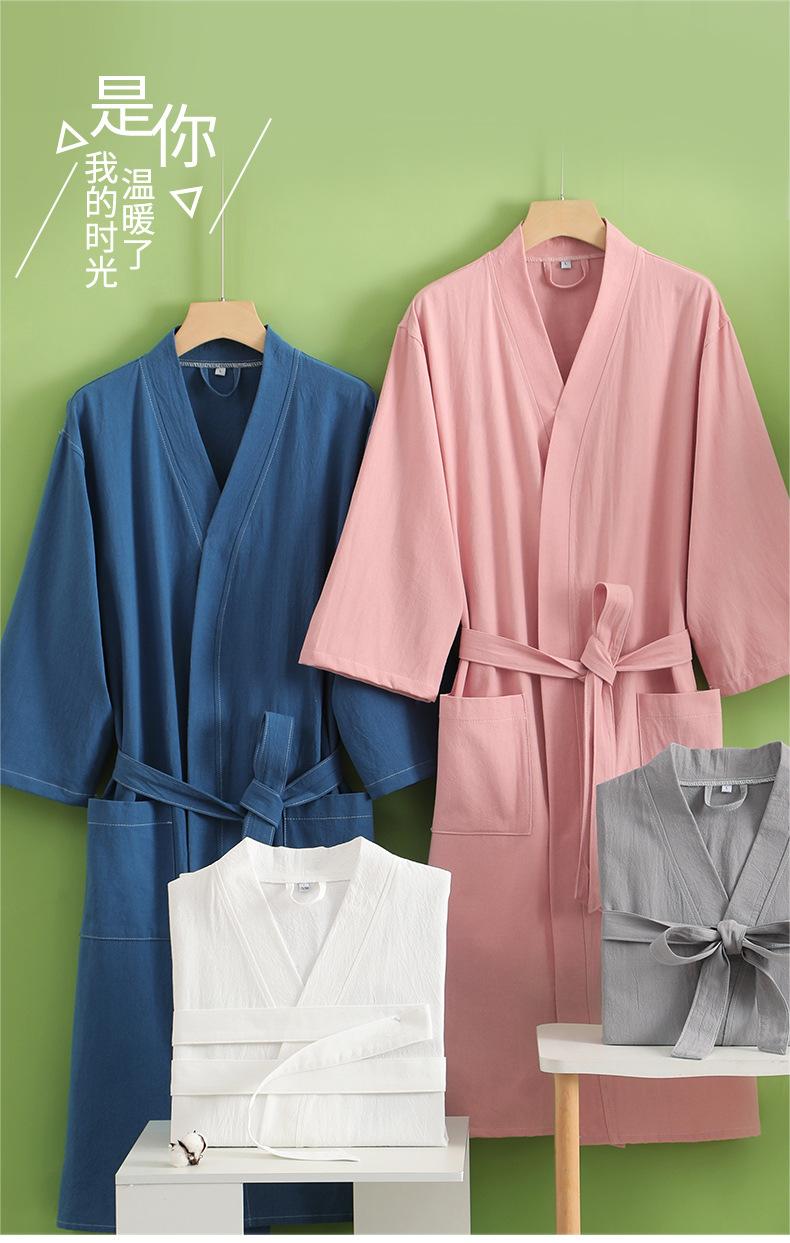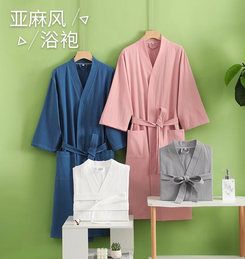 Albornoz de algodón puro para primavera y verano, fino, de hotel, de algodón y lino, camisón de belleza para hombre y mujer, con logotipo bordado, absorbente.