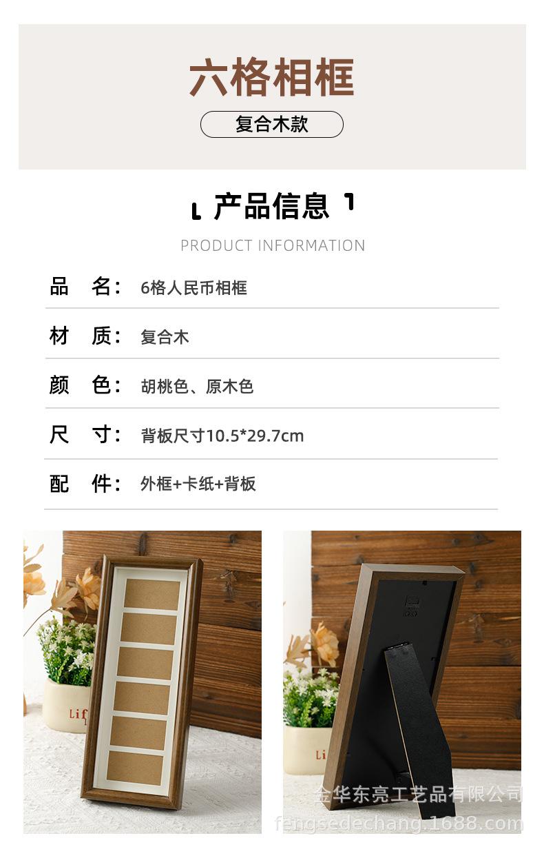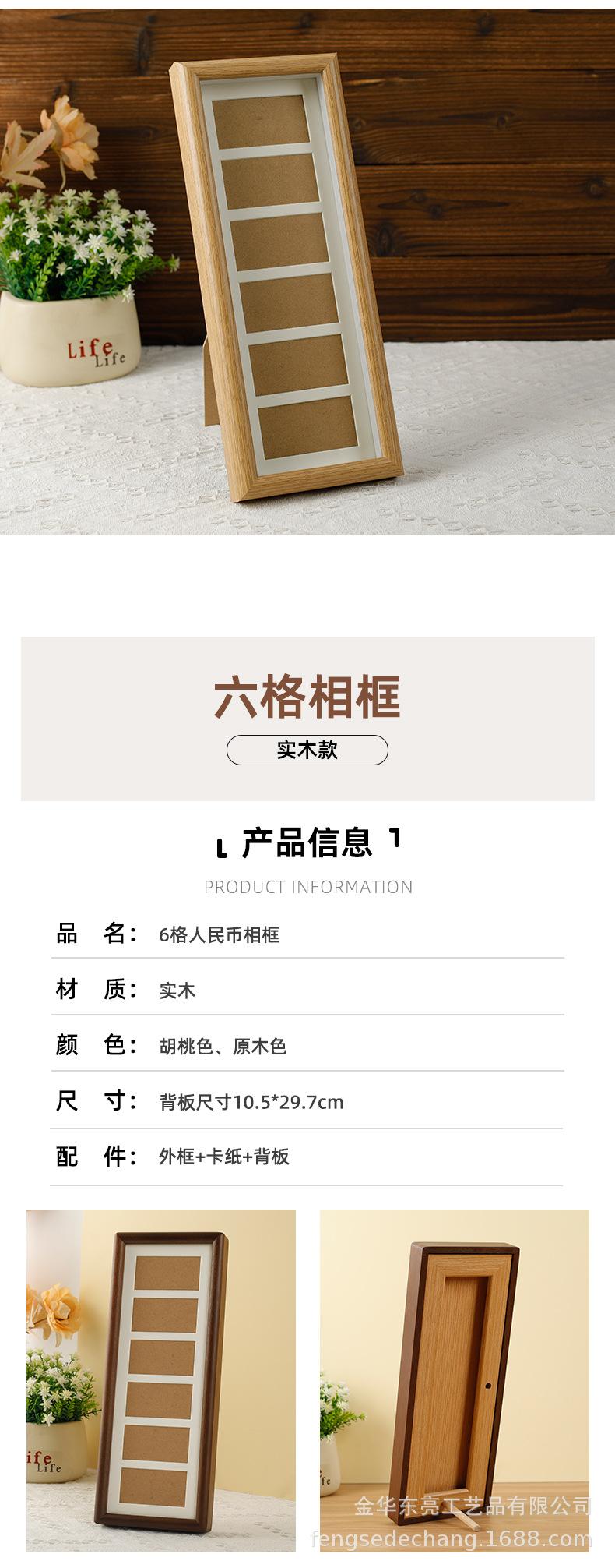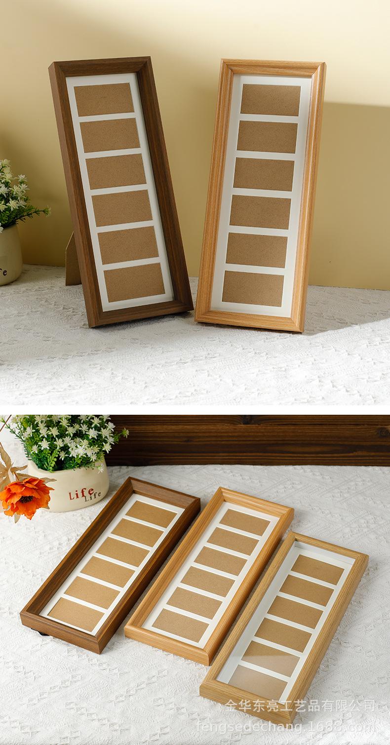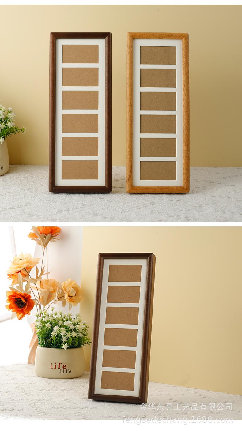 RMB mesa decorativa de madera larga marco de fotos de seis orificios color madera original color nogal decoración de marco de fotos fabricantes venta al por mayor