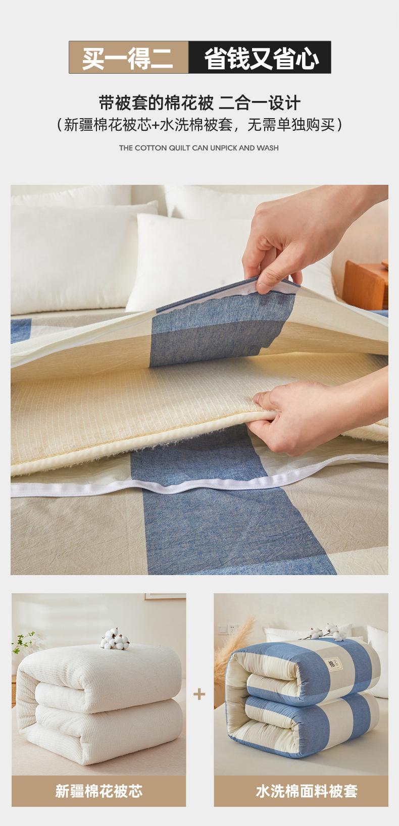 Edredón clásico de algodón Xinjiang sin estampado, extraíble, con núcleo de algodón, cálido para otoño e invierno, grueso para primavera y otoño.