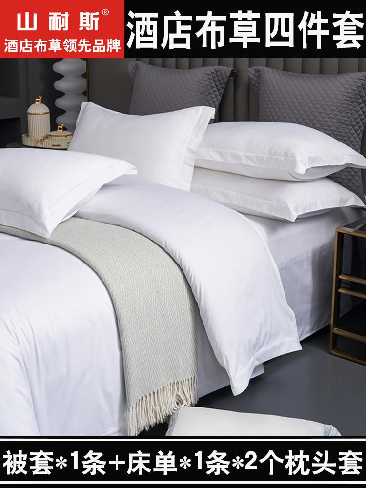 Edredón de algodón blanco de cuatro piezas para hotel, funda de edredón de algodón para casa de familia, sábanas de talla grande, ropa de cama especial para hotel, venta al por mayor