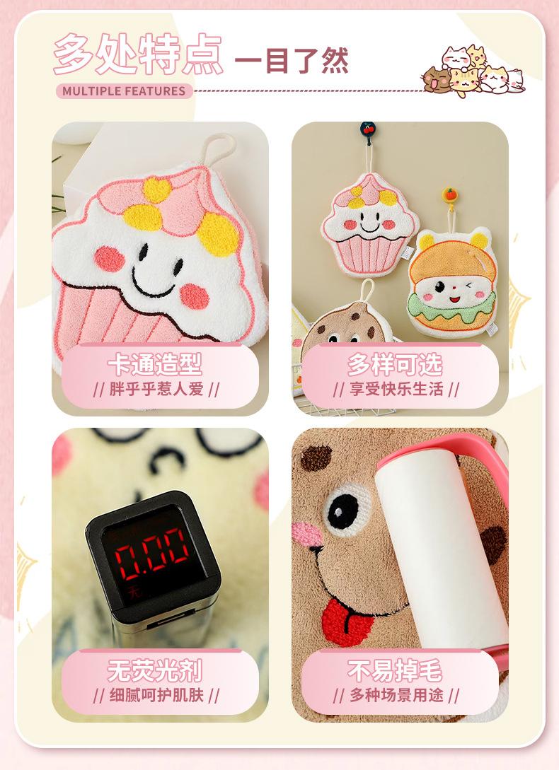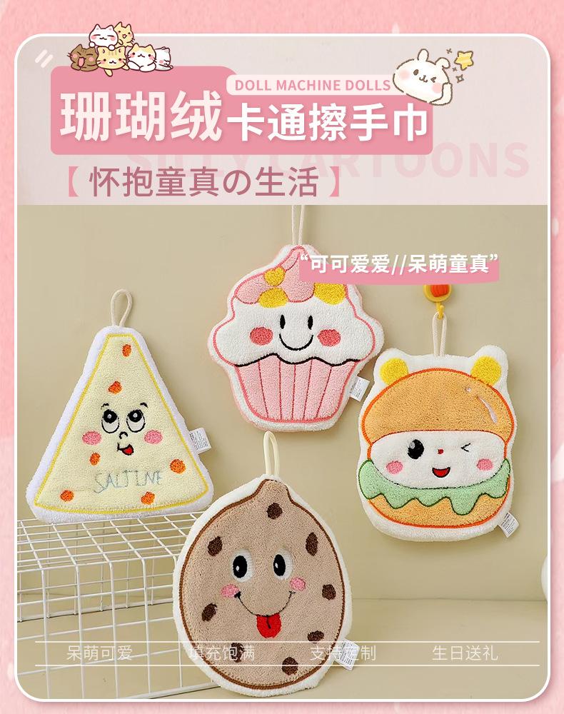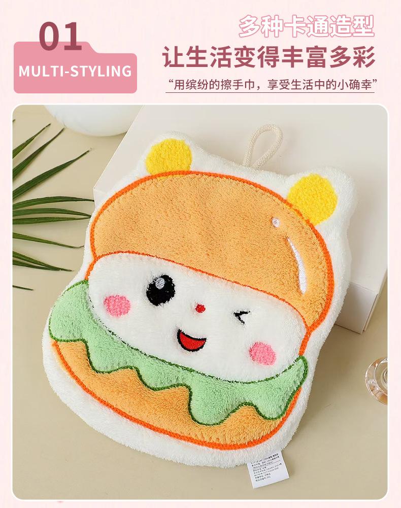 Toalla linda de vellón coral para colgar cocina baño toalla para lavarse las manos toalla gruesa absorbente de dibujos animados para niños