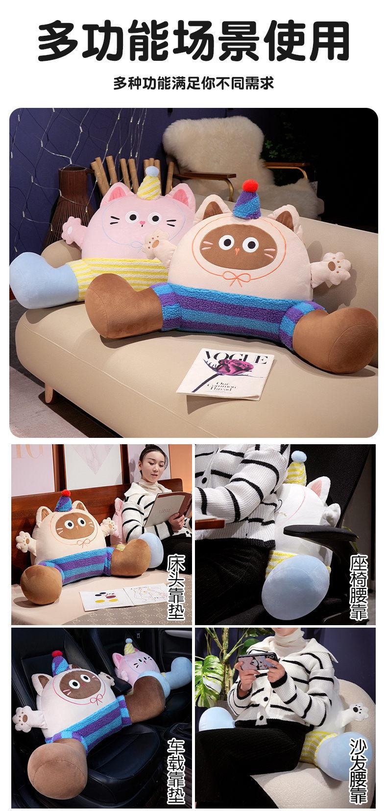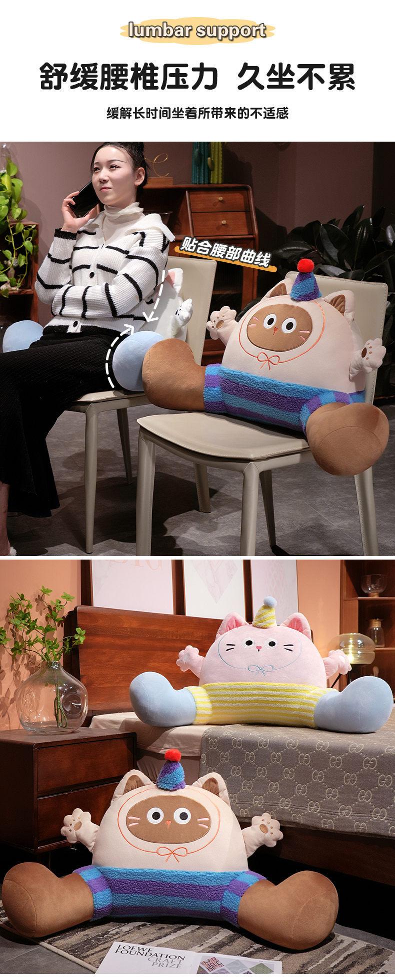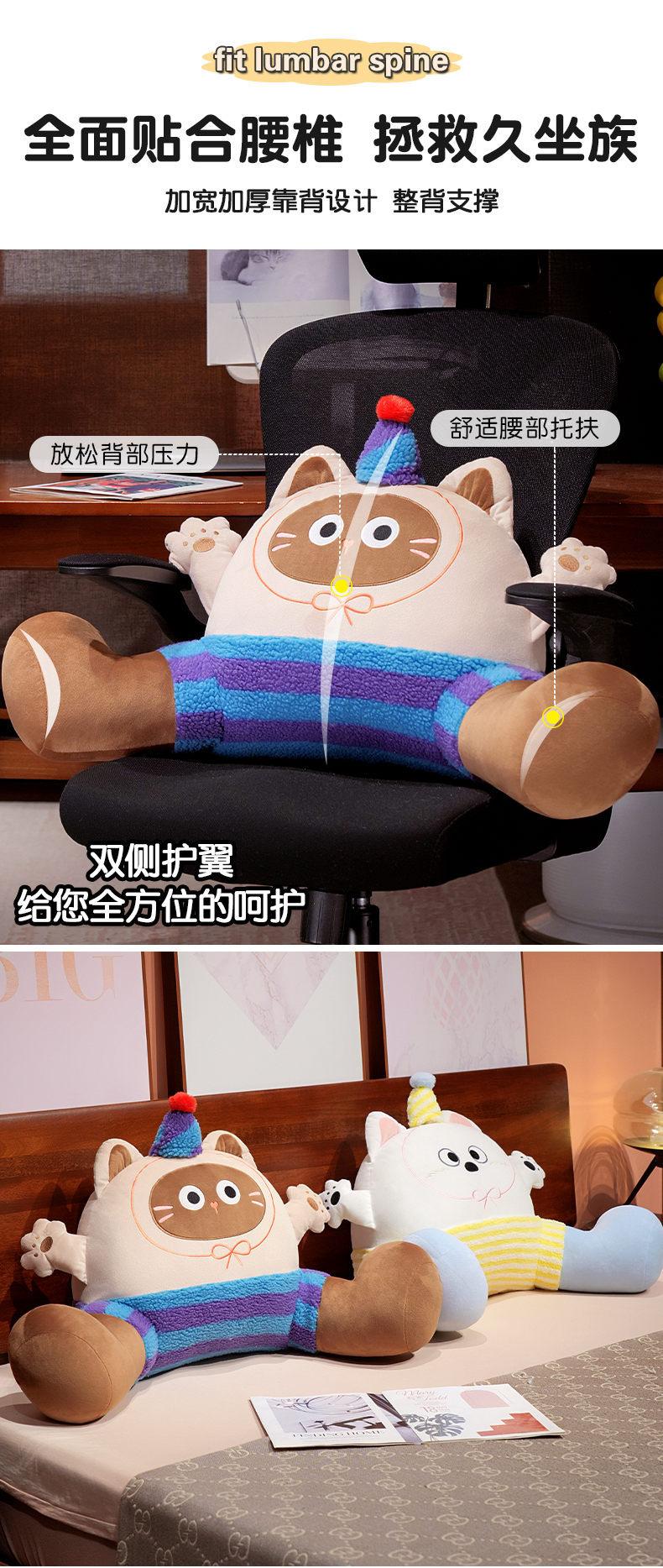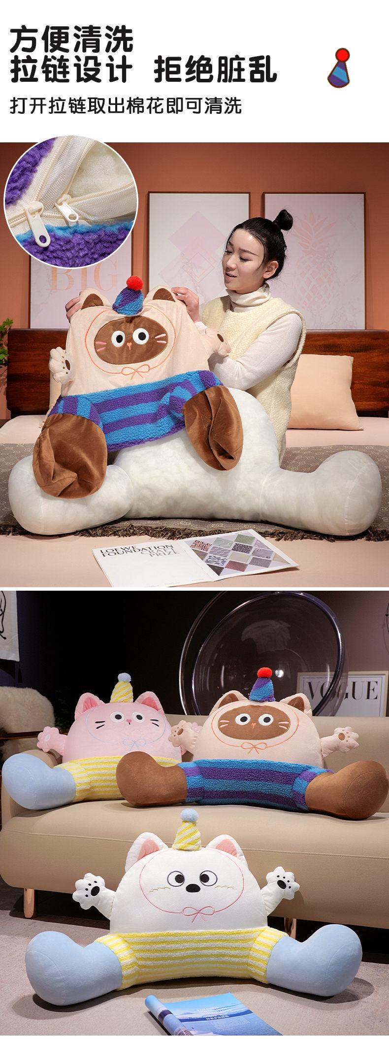 Bonita almohada de gato siamés, suave y cómoda, para la cama, con respaldo grande, para sofá, protección de cintura y almohada desmontable.