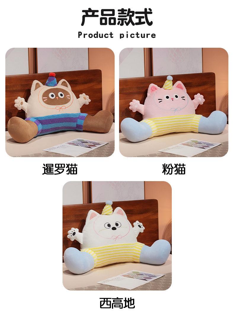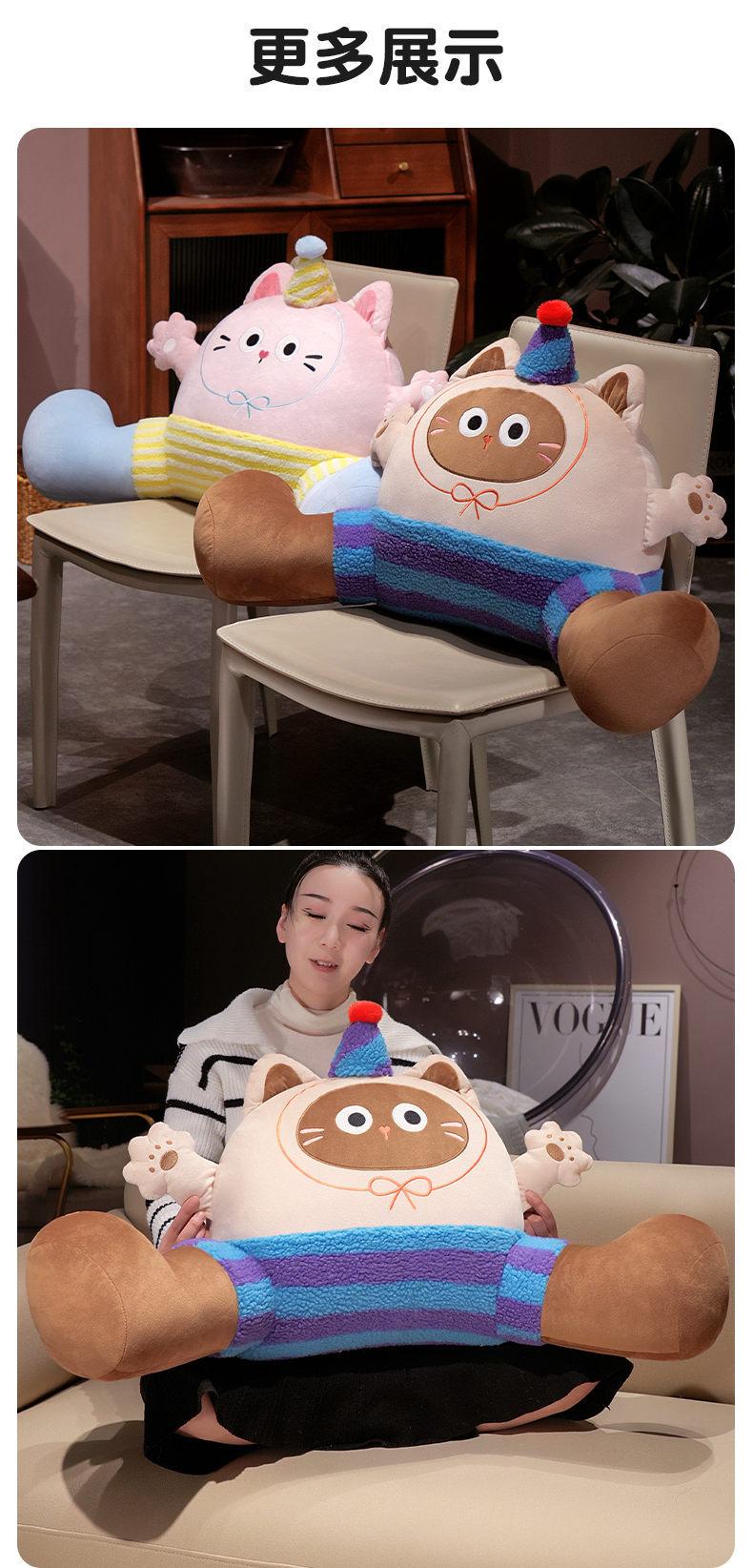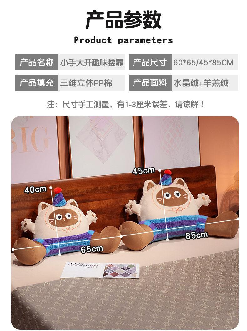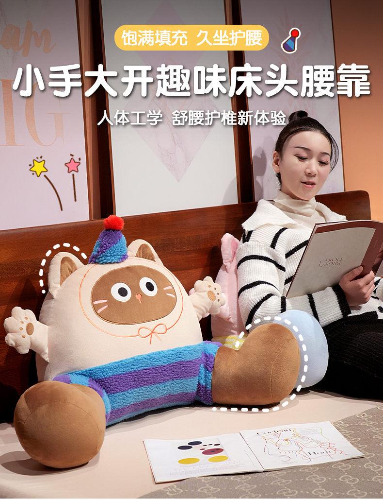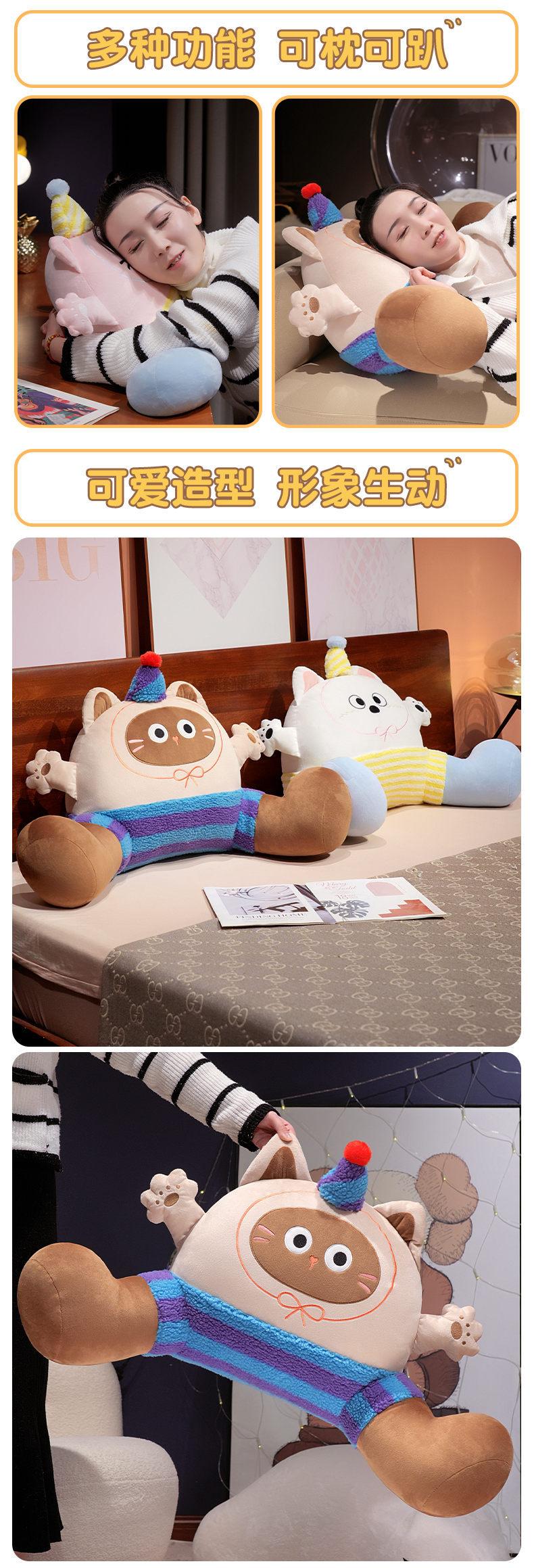 Bonita almohada de gato siamés, suave y cómoda, para la cama, con respaldo grande, para sofá, protección de cintura y almohada desmontable.