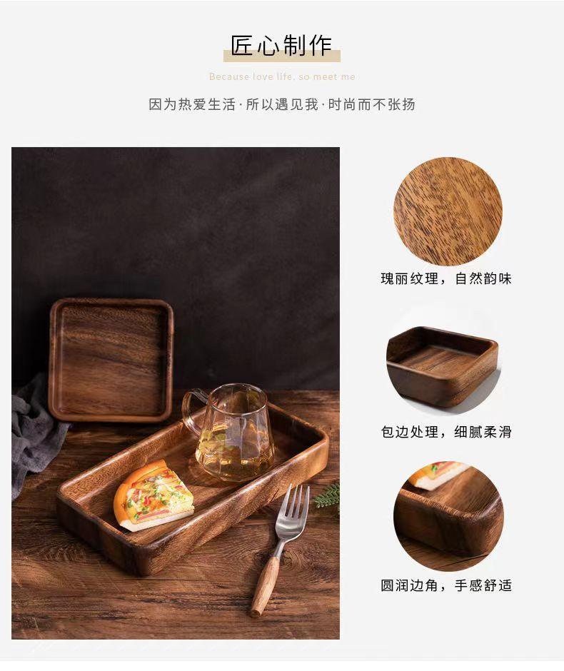 Bandeja de madera de nogal, plato de postre de madera maciza para el hogar, plato de madera entera, plato de fruta, plato de taza de té rectangular japonés