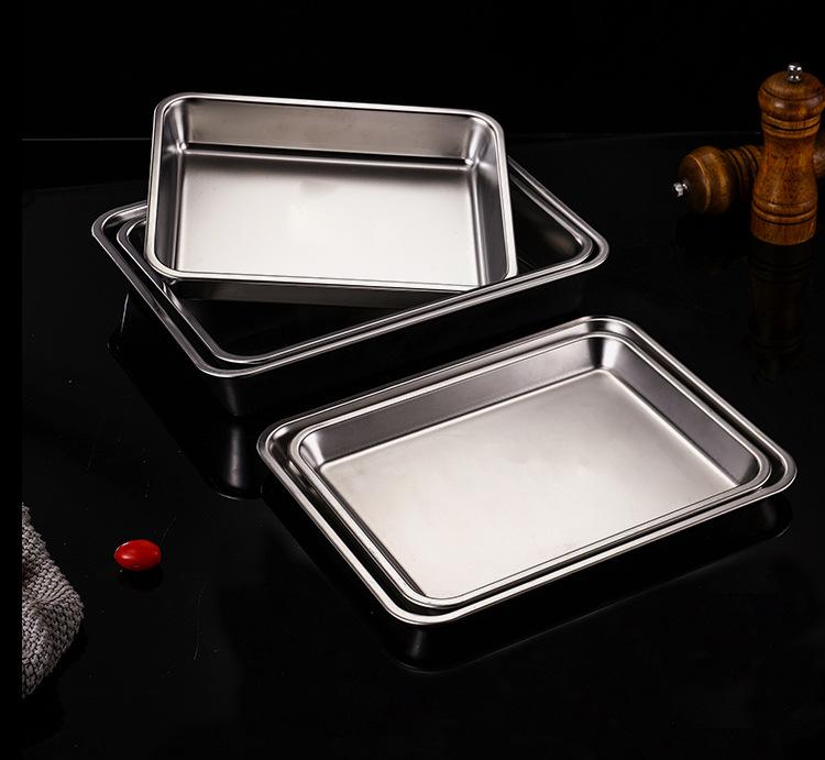 Bandeja comercial rectangular de acero inoxidable 304, plato de arroz humeante para el hogar, plato poco profundo, plato hondo, plato de cena, plato de pescado a la parrilla, plato a la parrilla