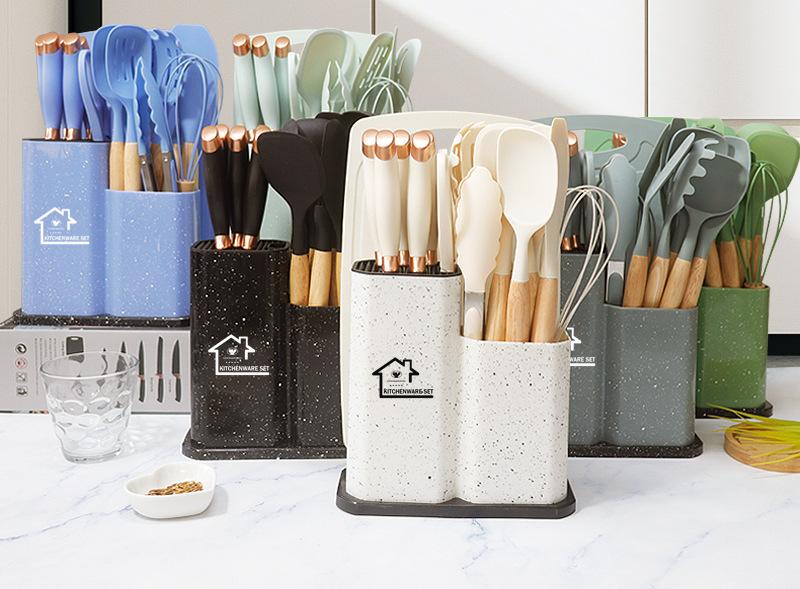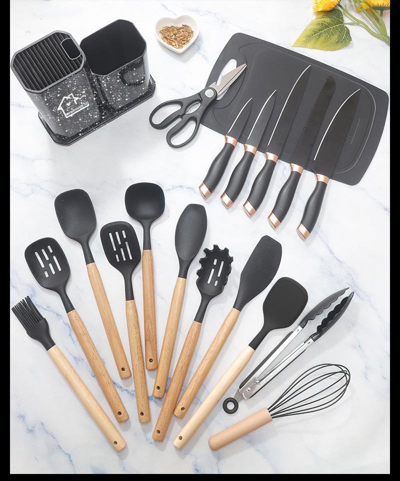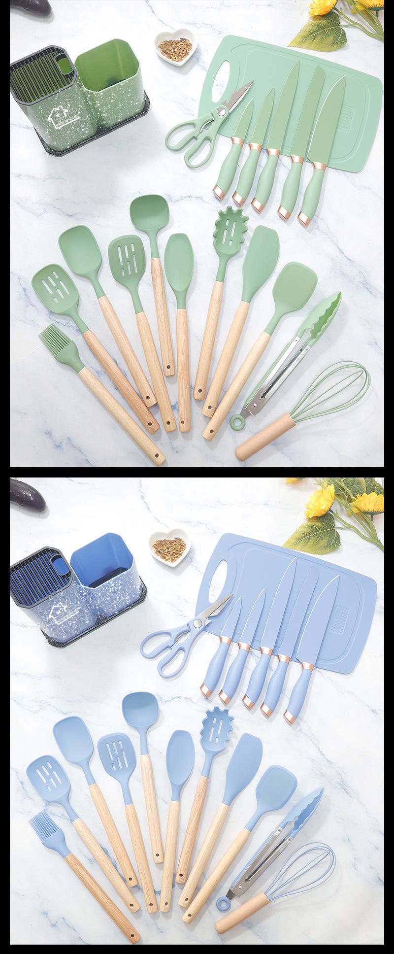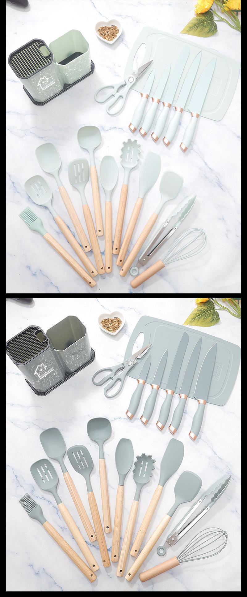 Juego de 19 piezas de espátula y cuchara de silicona transfronteriza, espátula de silicona antiadherente, utensilios de cocina de silicona de grado alimenticio para el hogar y juego de cuchillos
