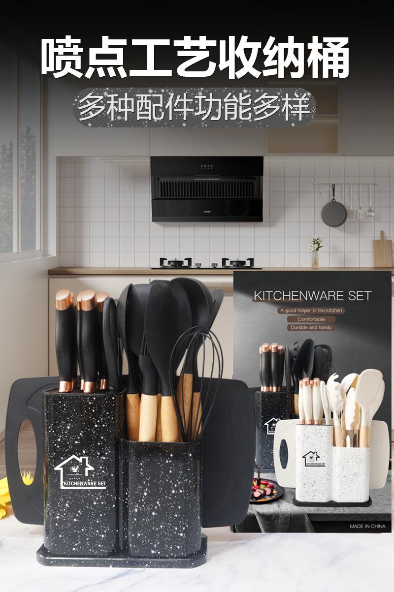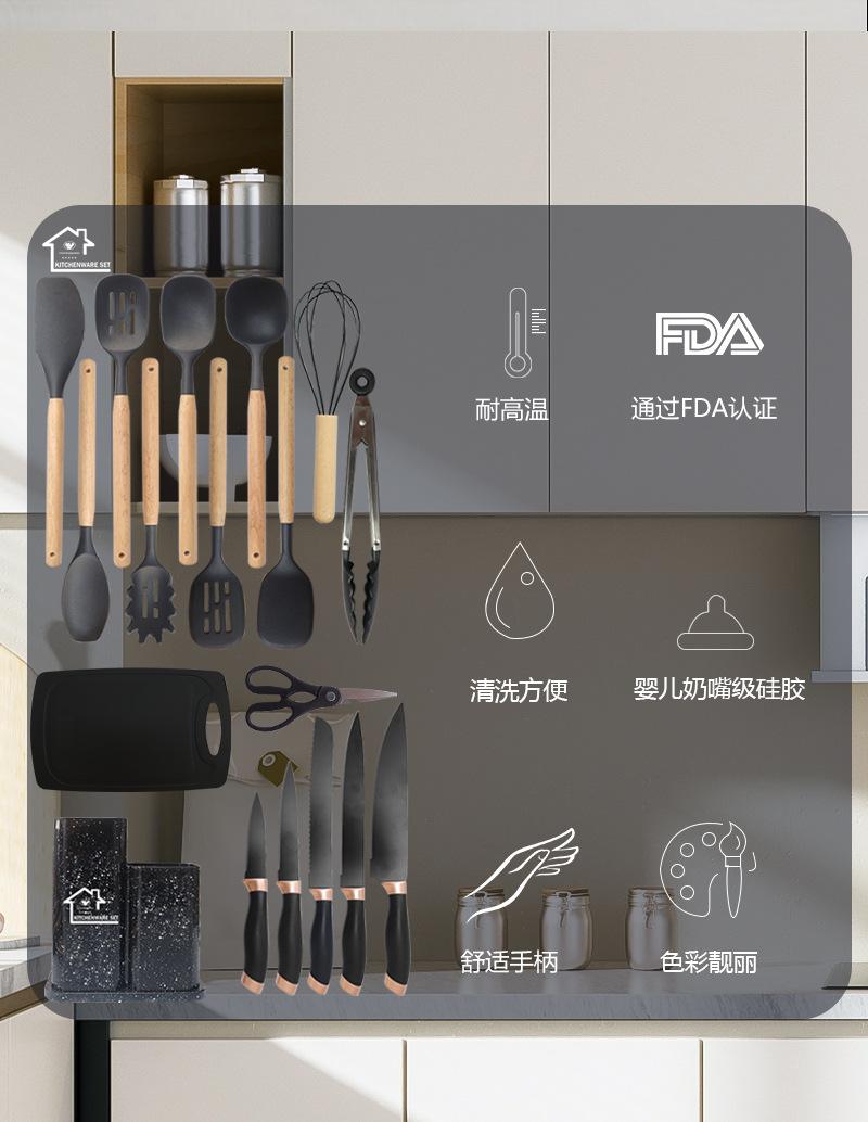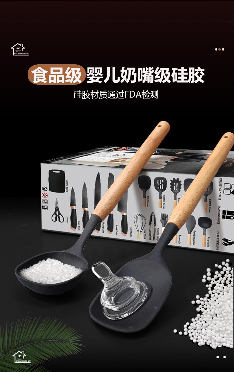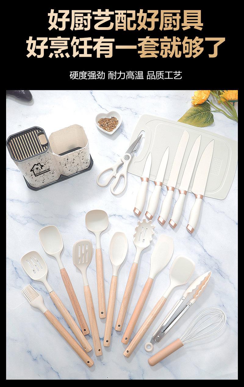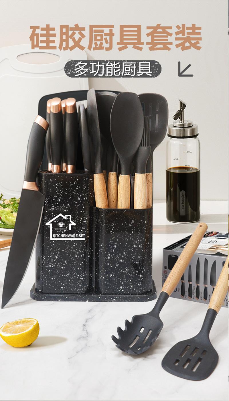 Juego de 19 piezas de espátula y cuchara de silicona transfronteriza, espátula de silicona antiadherente, utensilios de cocina de silicona de grado alimenticio para el hogar y juego de cuchillos