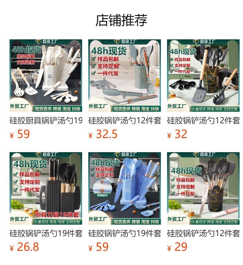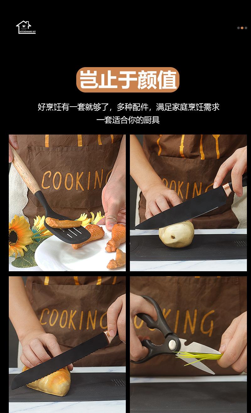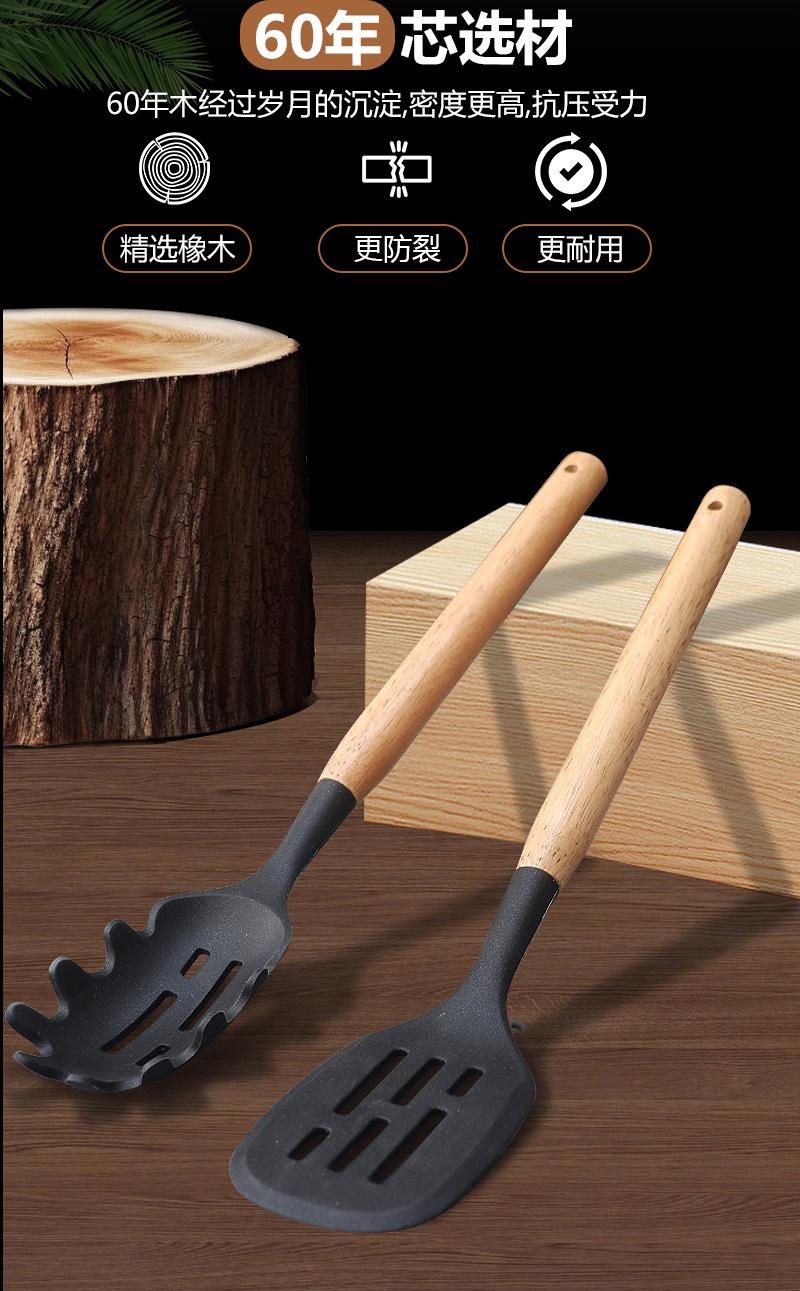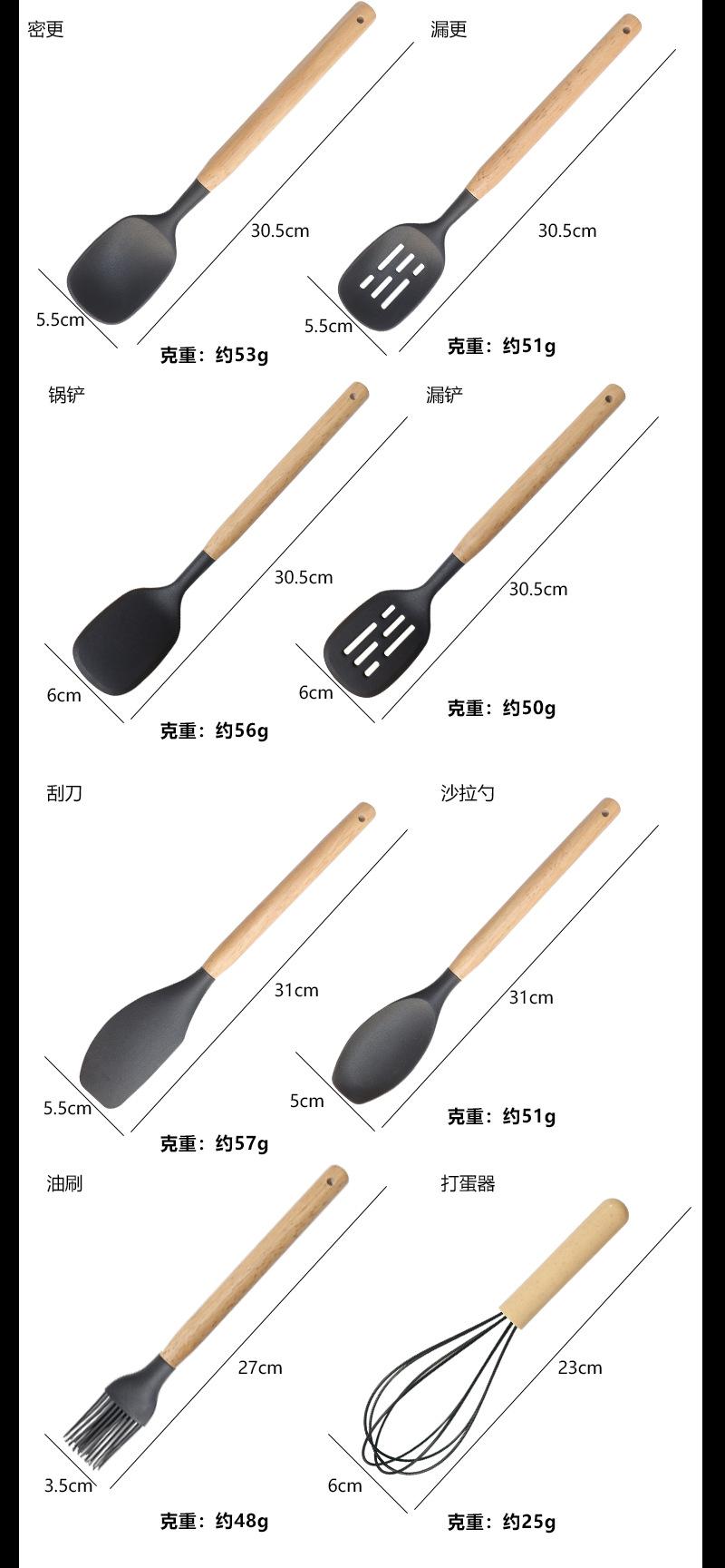 Juego de 19 piezas de espátula y cuchara de silicona transfronteriza, espátula de silicona antiadherente, utensilios de cocina de silicona de grado alimenticio para el hogar y juego de cuchillos
