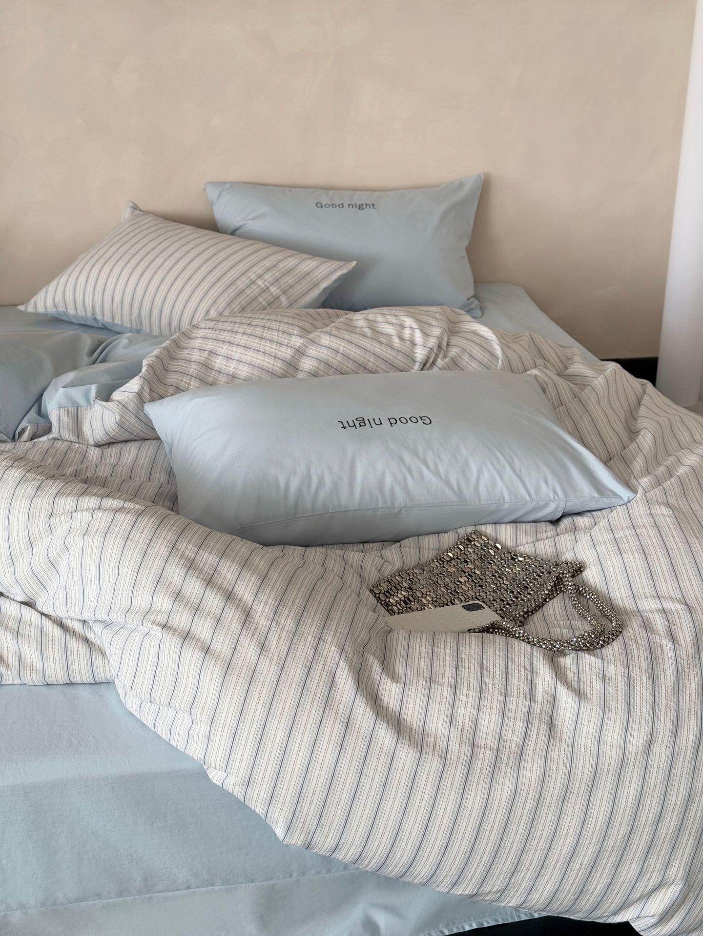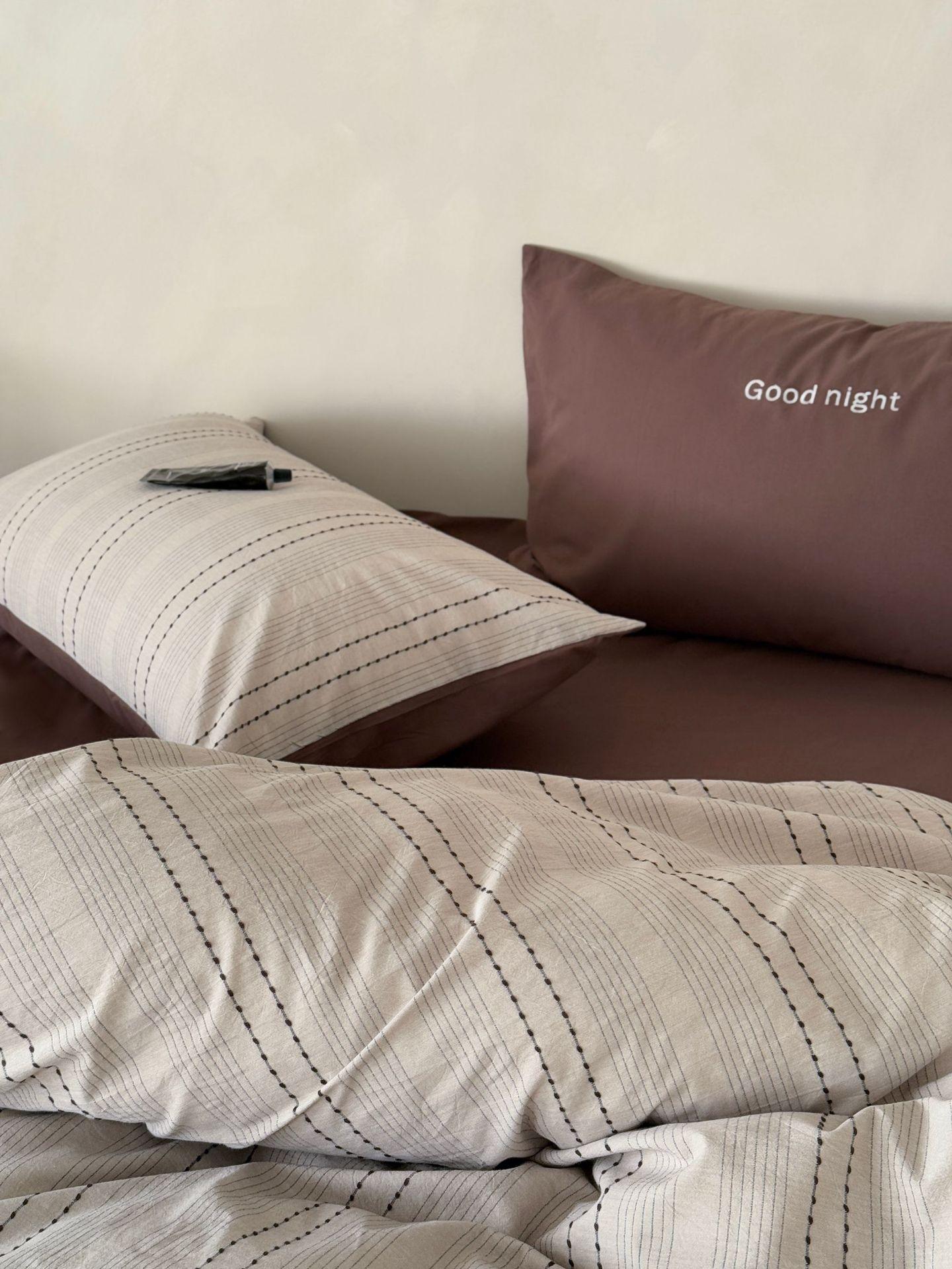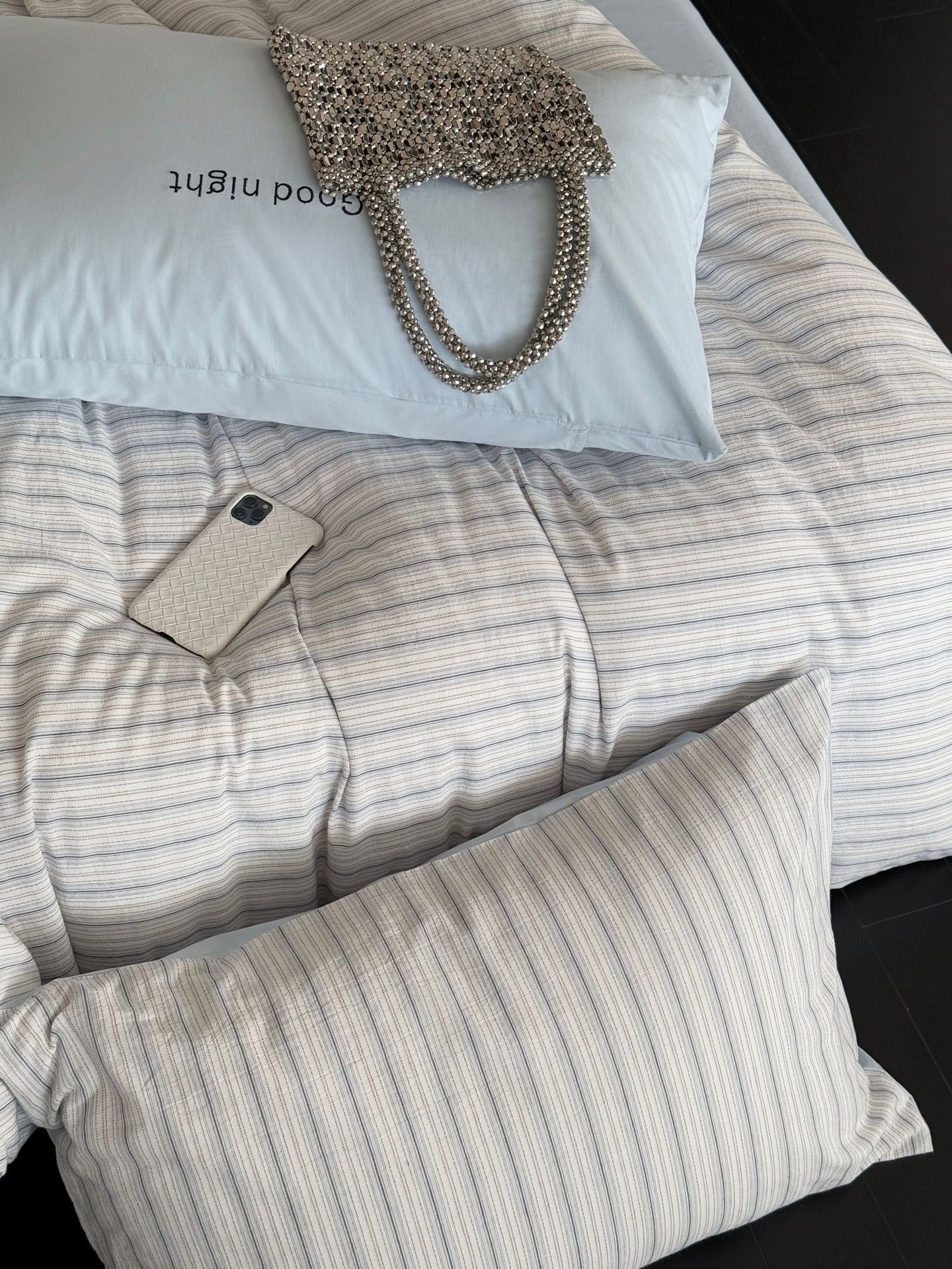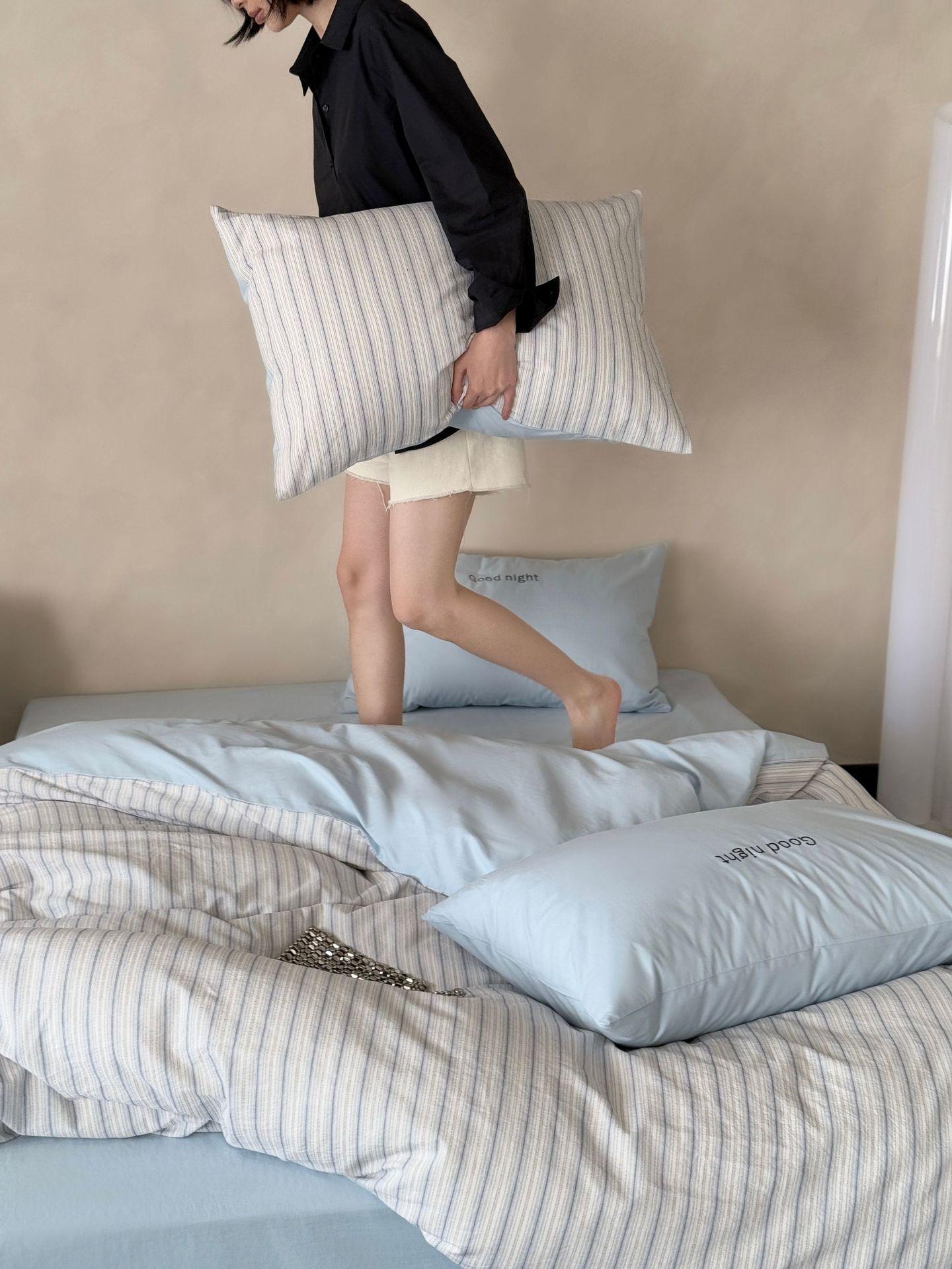 El algodón de fibra larga se utiliza a menudo para tejer hilo de alta densidad. El producto final es transpirable, suave, delicado, liso y con cierto brillo. Por lo tanto, la tela es más suave, delicada y lisa. Por lo tanto, no será demasiado gruesa y puede ser transmisora de luz. Se recomienda usar un núcleo de edredón blanco o liso del mismo color.
