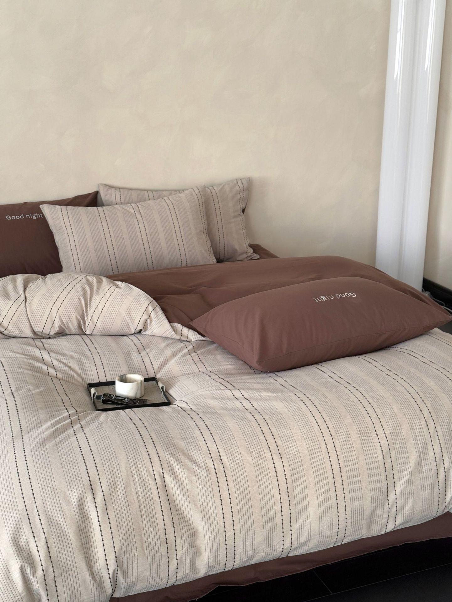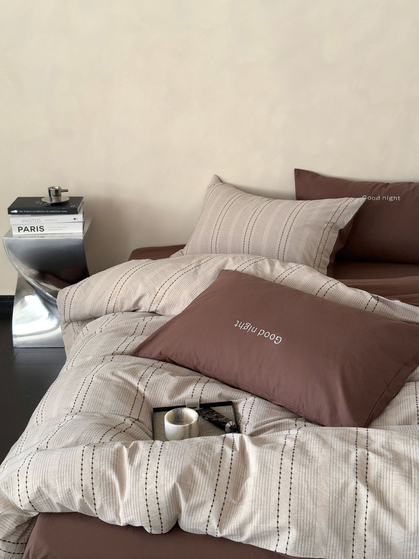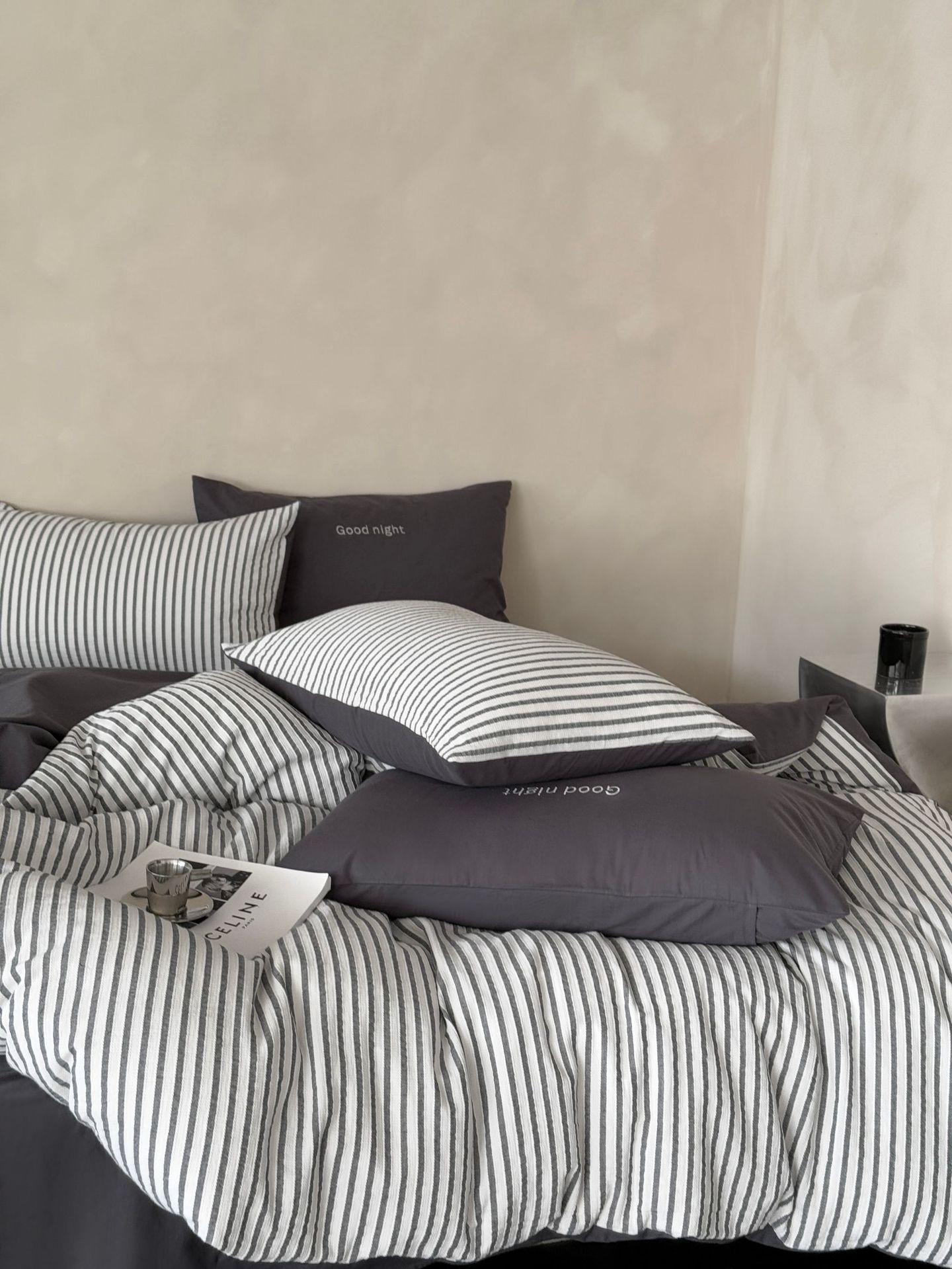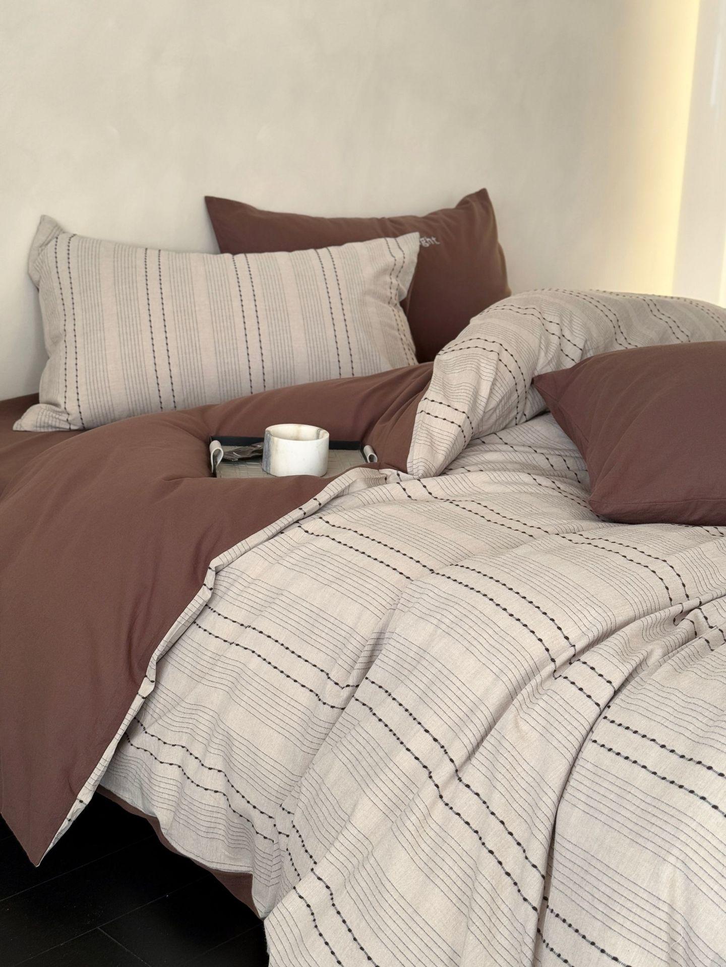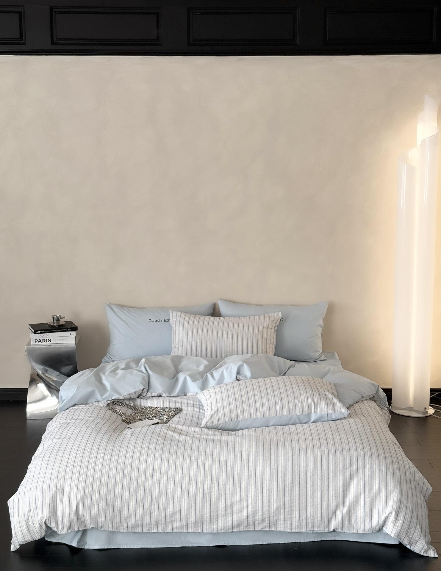 El algodón de fibra larga se utiliza a menudo para tejer hilo de alta densidad. El producto final es transpirable, suave, delicado, liso y con cierto brillo. Por lo tanto, la tela es más suave, delicada y lisa. Por lo tanto, no será demasiado gruesa y puede ser transmisora de luz. Se recomienda usar un núcleo de edredón blanco o liso del mismo color.