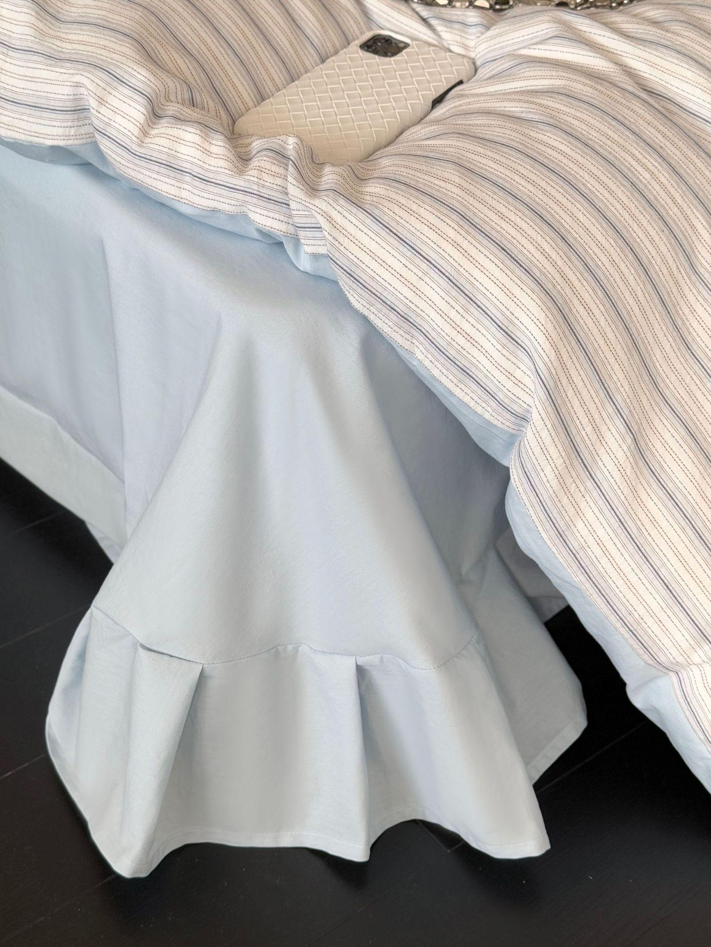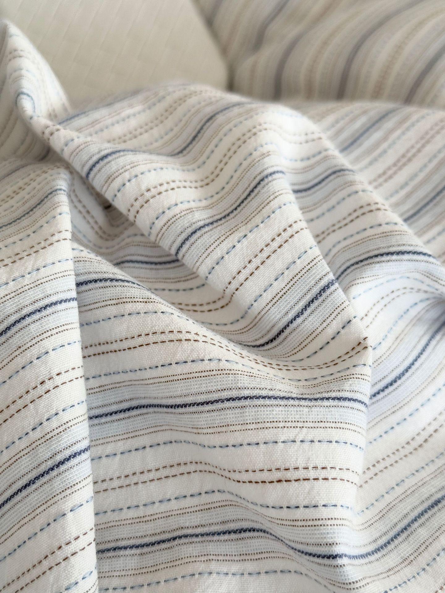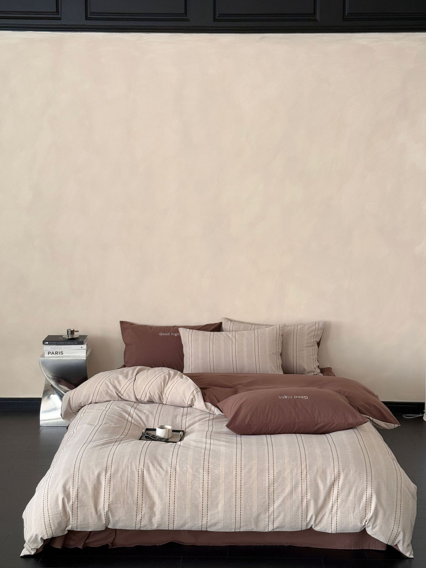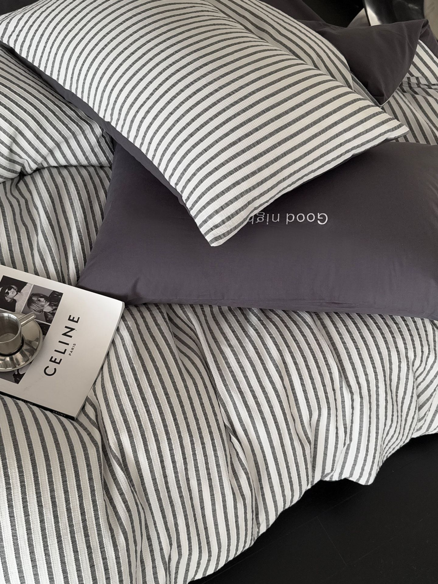 El algodón de fibra larga se utiliza a menudo para tejer hilo de alta densidad. El producto final es transpirable, suave, delicado, liso y con cierto brillo. Por lo tanto, la tela es más suave, delicada y lisa. Por lo tanto, no será demasiado gruesa y puede ser transmisora de luz. Se recomienda usar un núcleo de edredón blanco o liso del mismo color.
