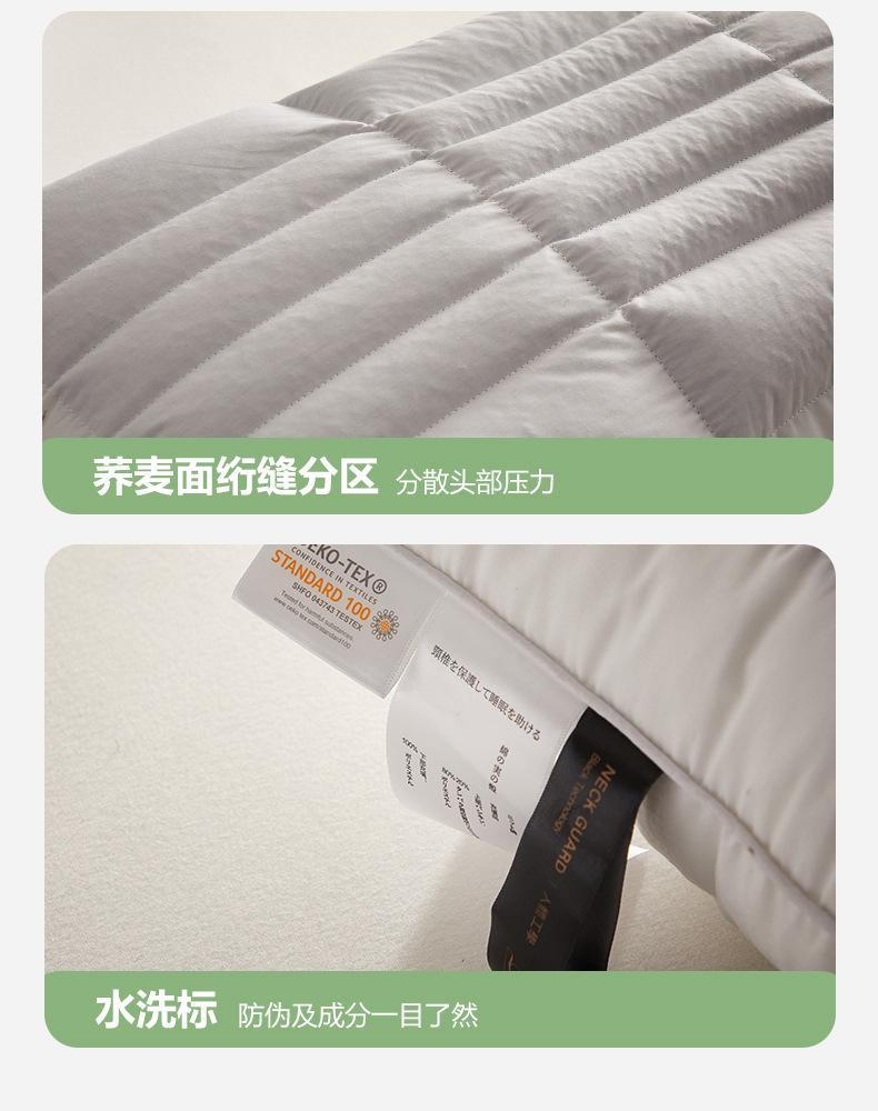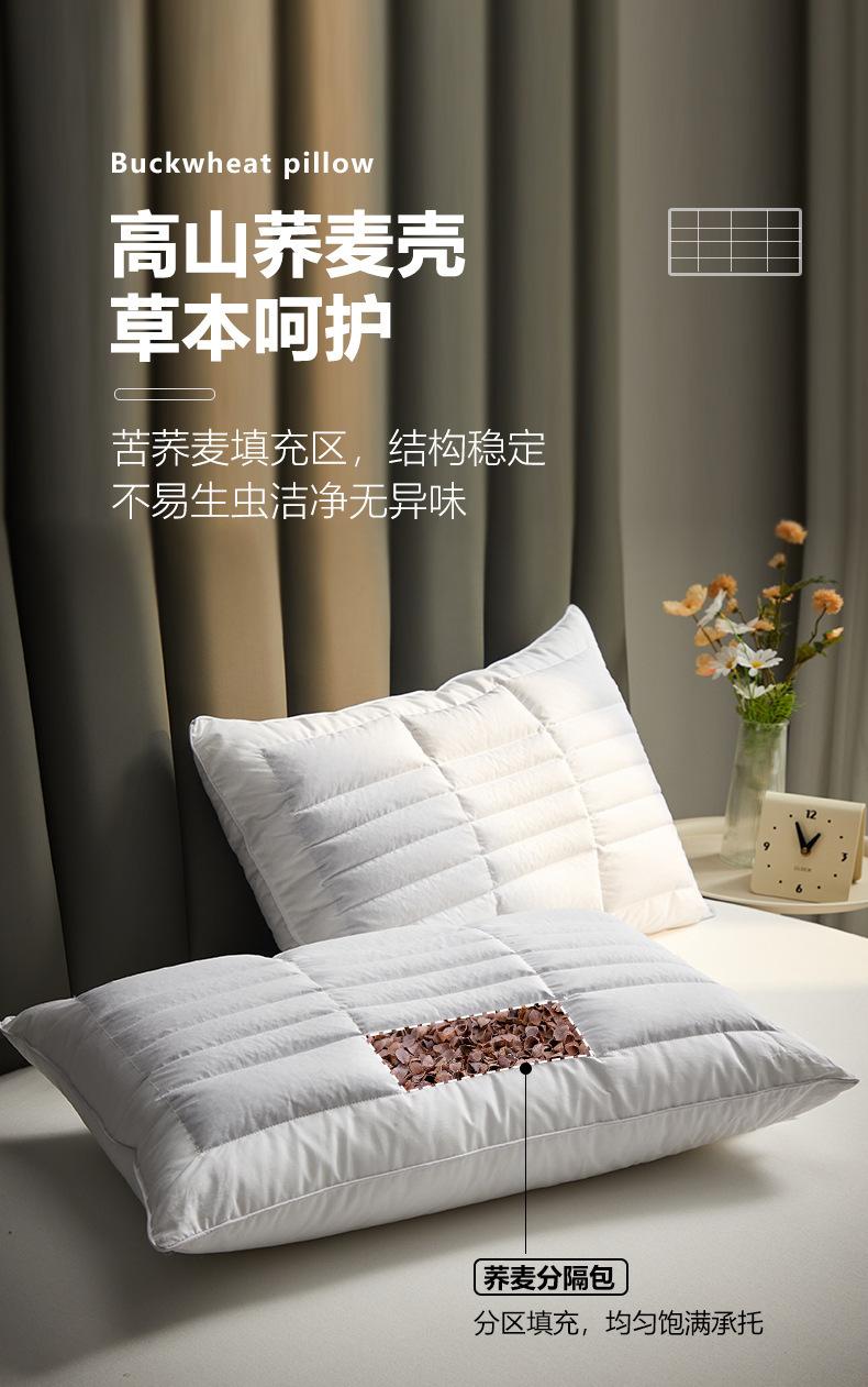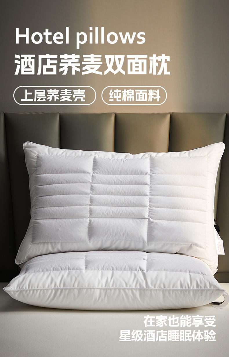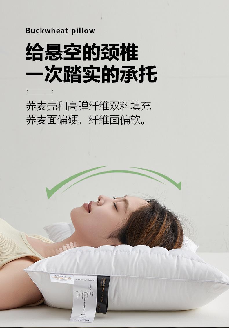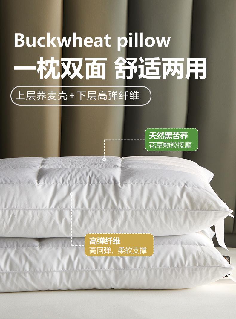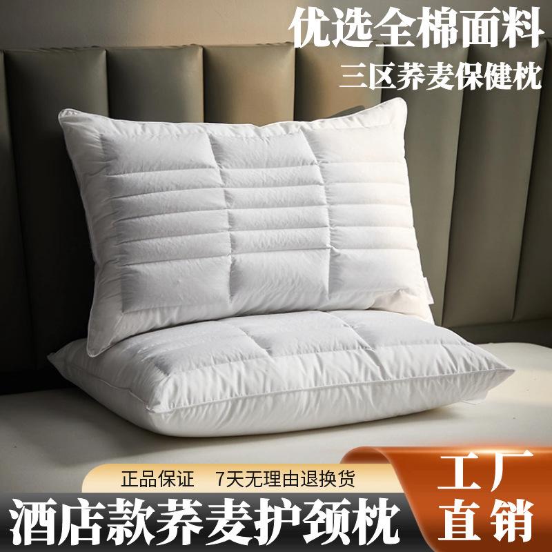 Hotel high pillow model [cotton fabric + soothing neck + cooked buckwheat + support fiber + partition design] ...